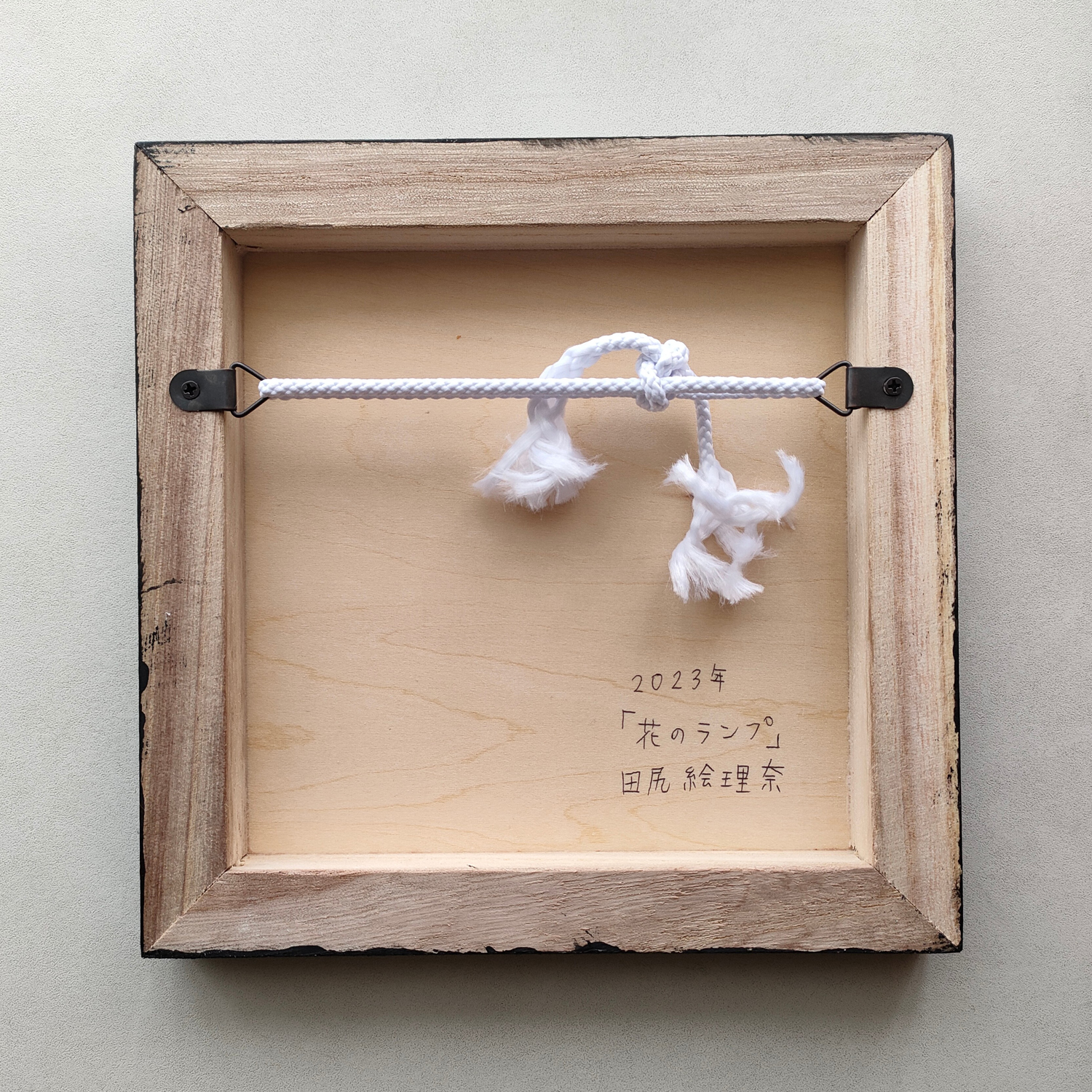 キャンバスや木製パネルの作品は裏面に吊り紐をお付けしております。