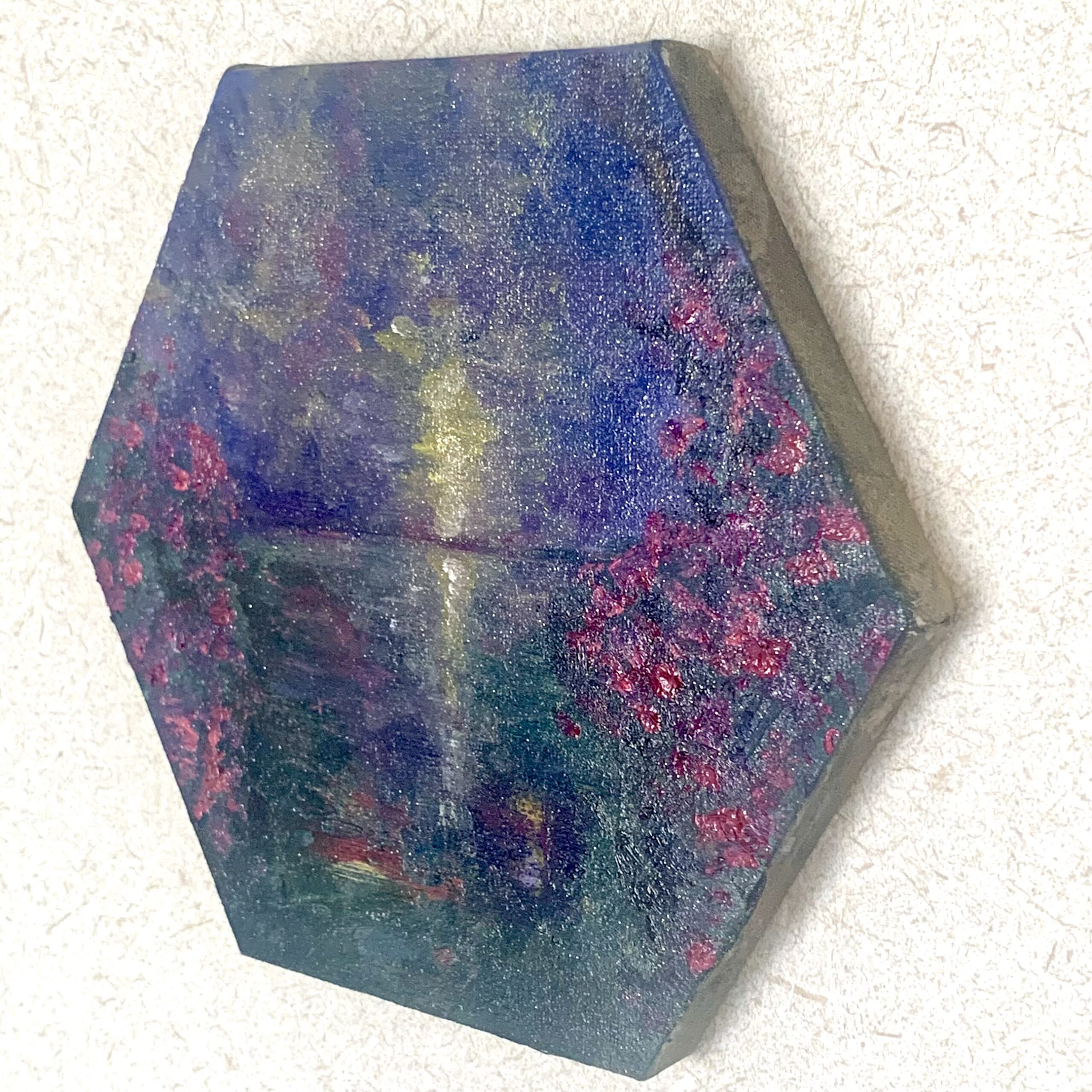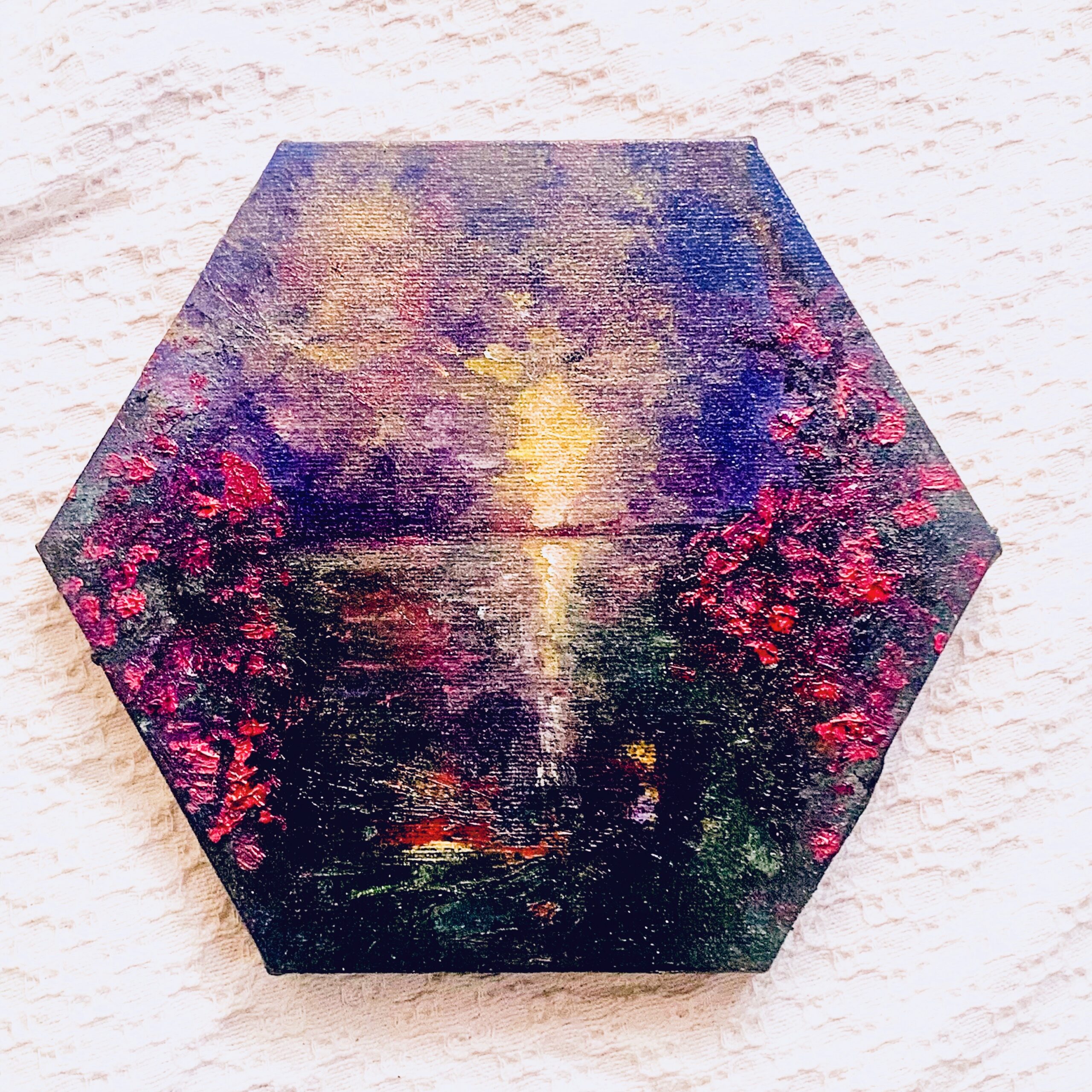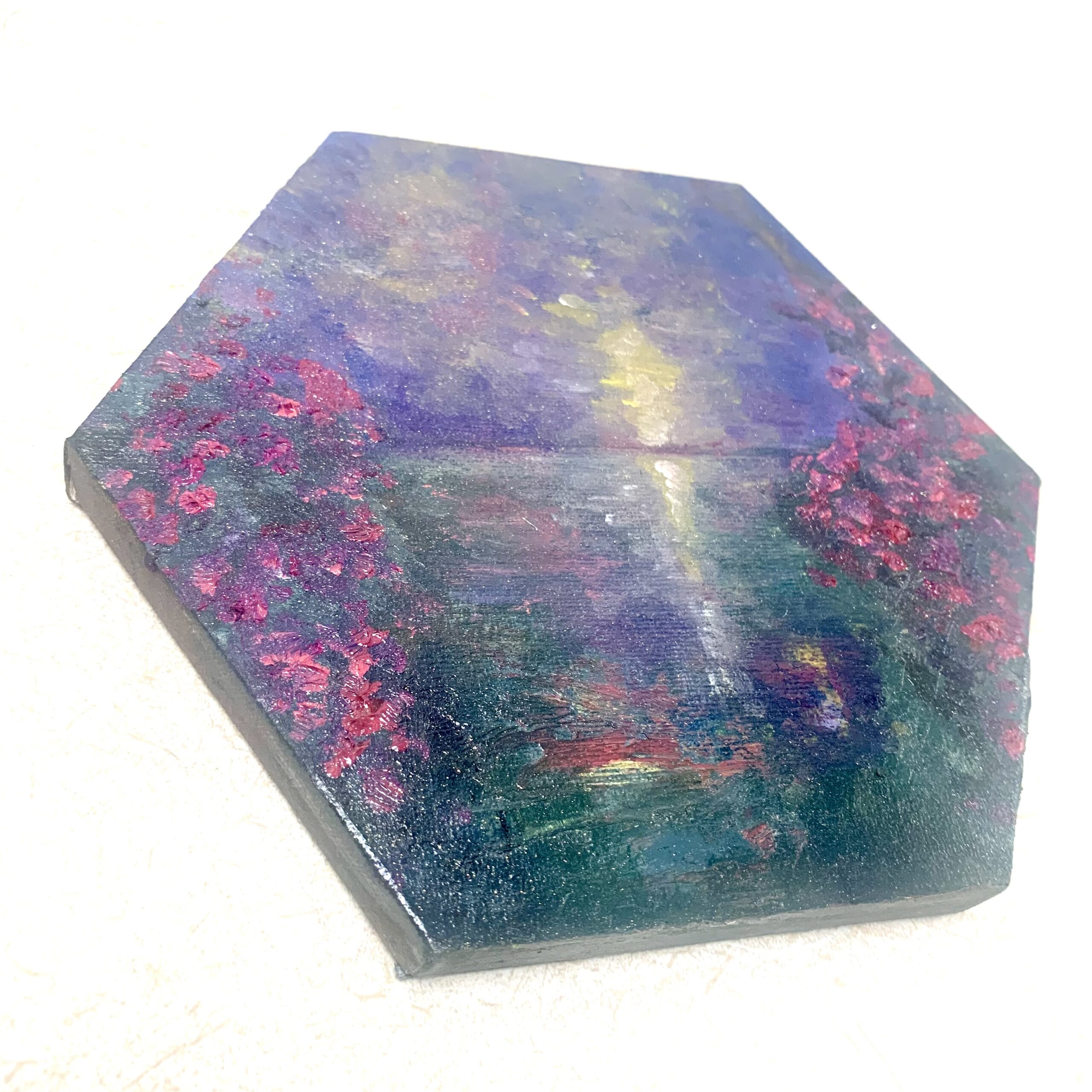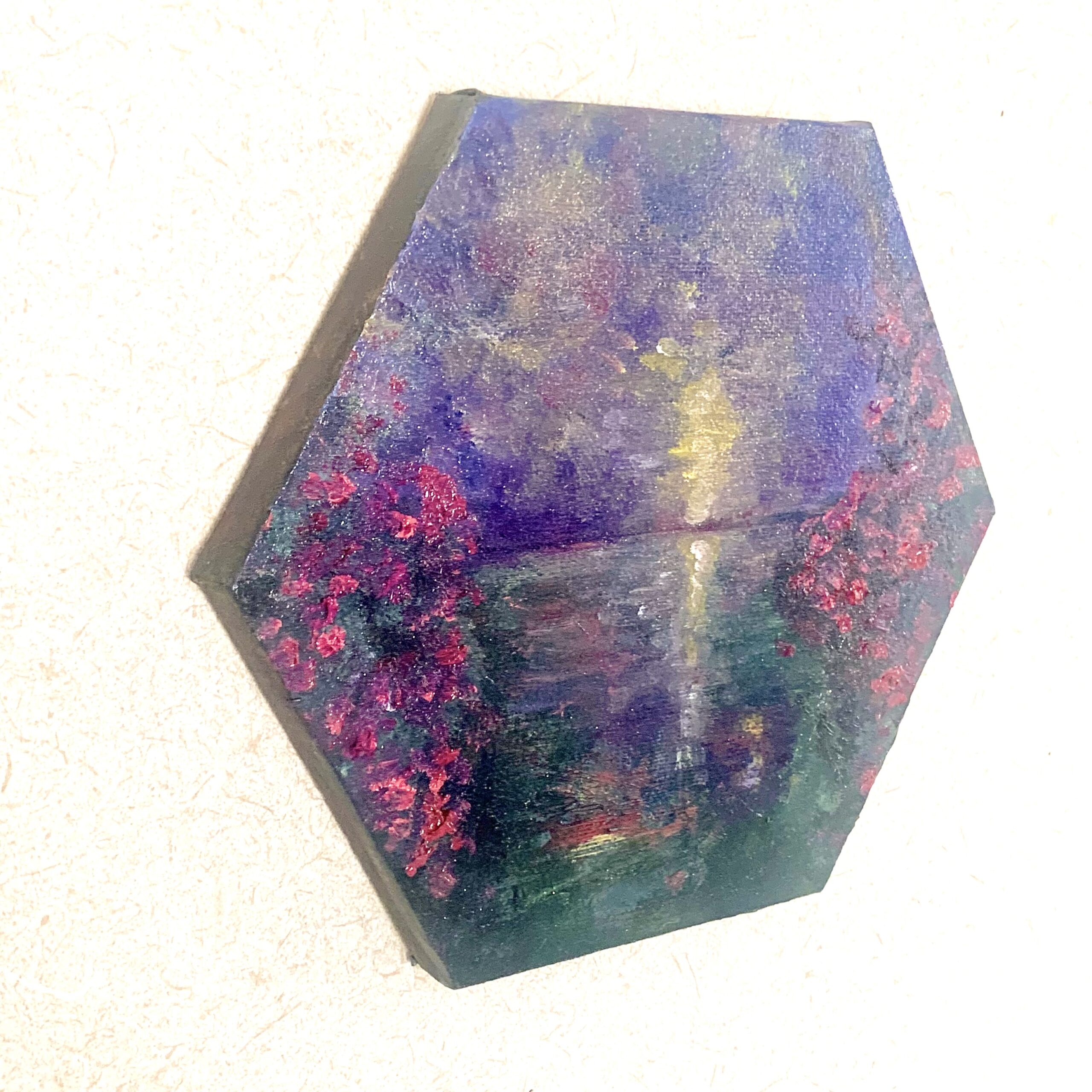一日の終わり、太陽が静かに海へと沈みゆく「17時」の情景を、六角形のキャンバスに凝縮しました