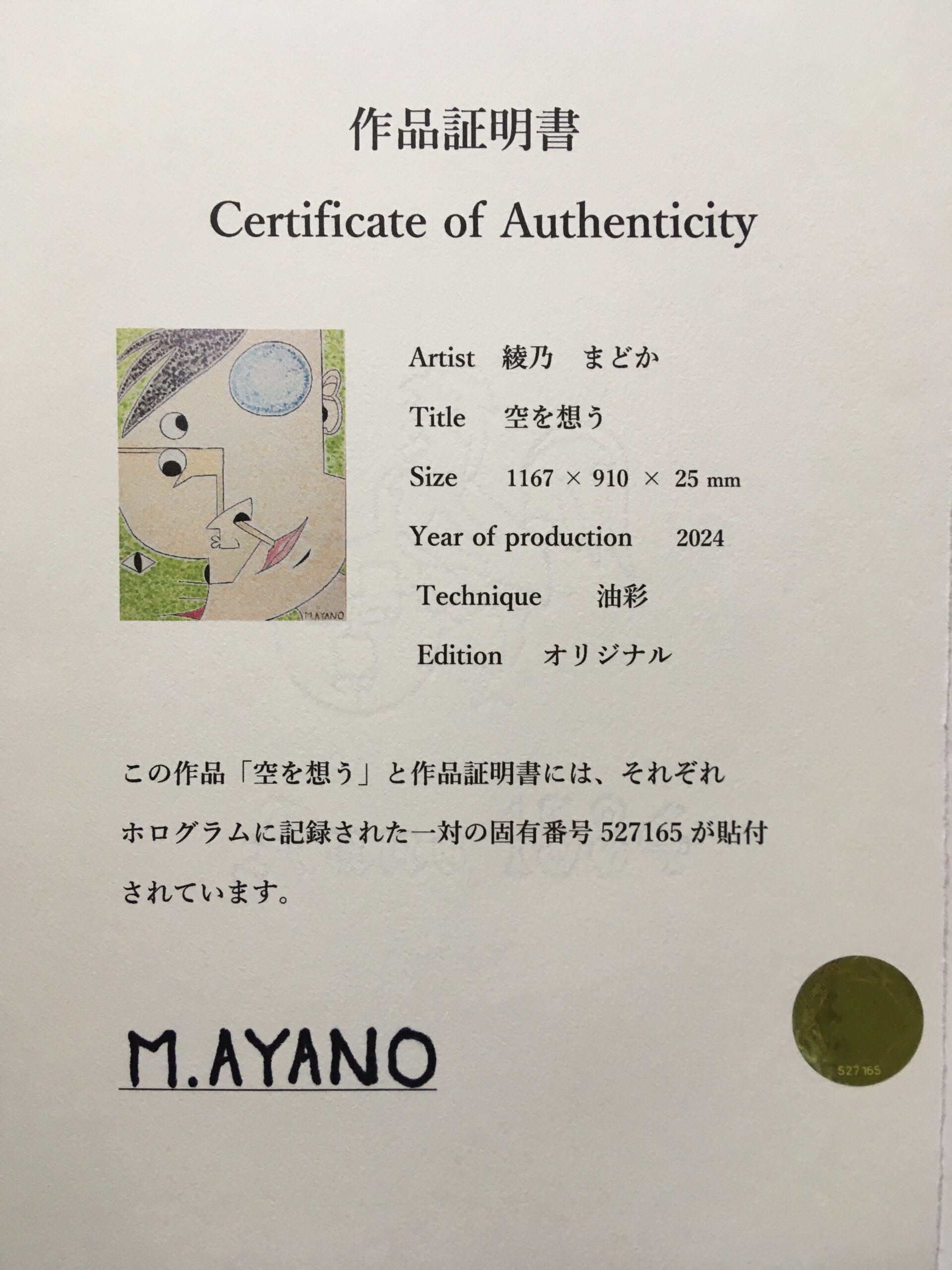 作品証明書が付属致します