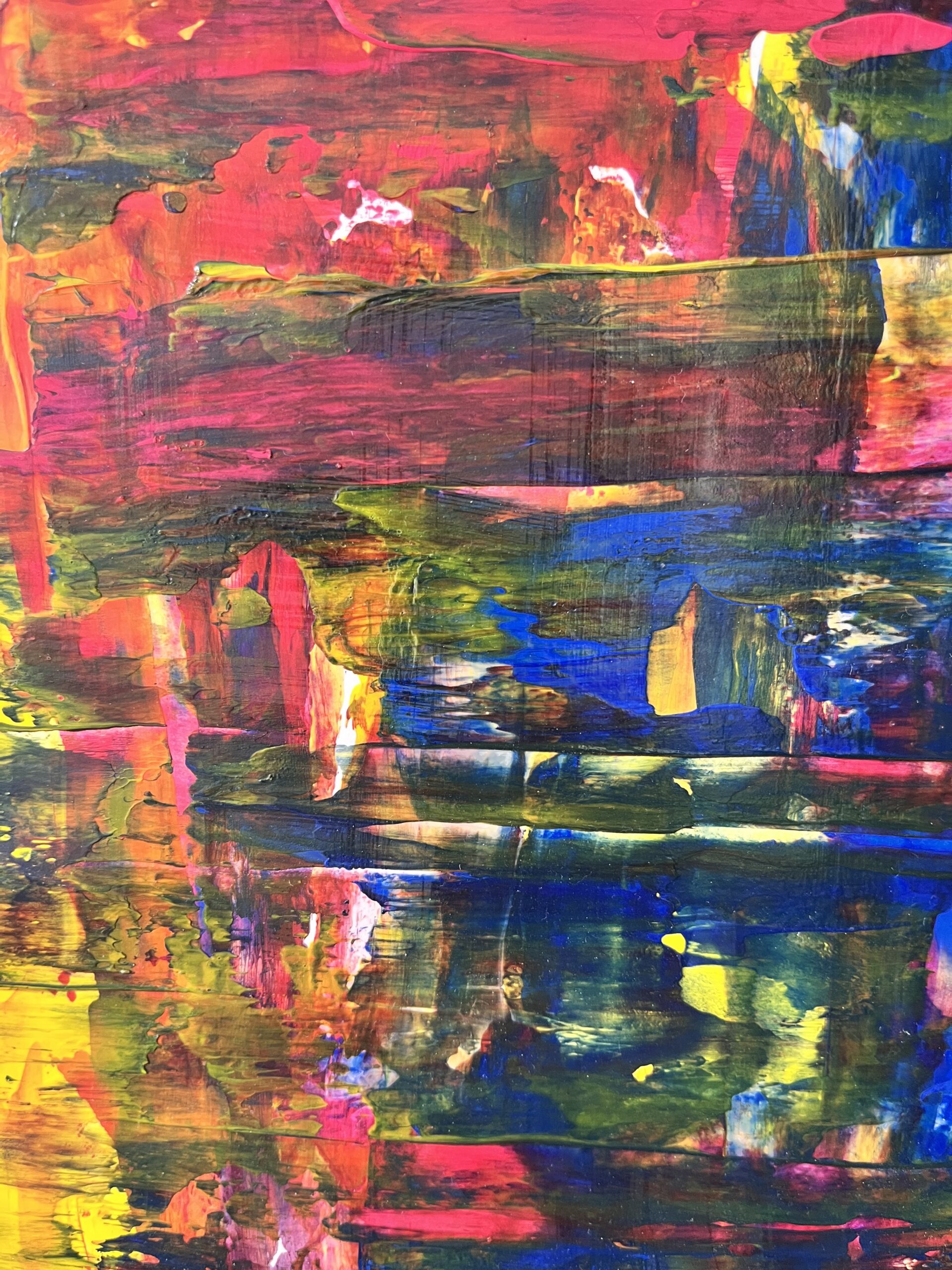 絵の具を重ねてスライドさせることで、どんな色彩に仕上がるかを楽しむアートです。