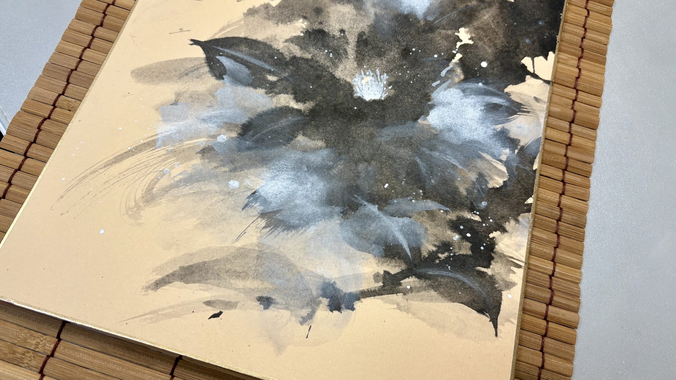 溌墨法で椿を描きました。