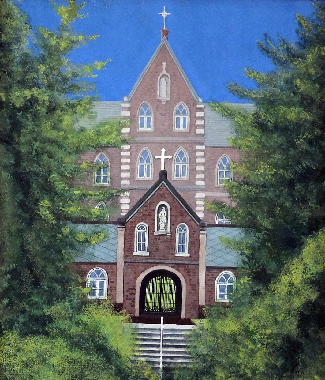 トラピスト修道院の遠景です。さわやかなイメージに創作意欲を感じて描きました。