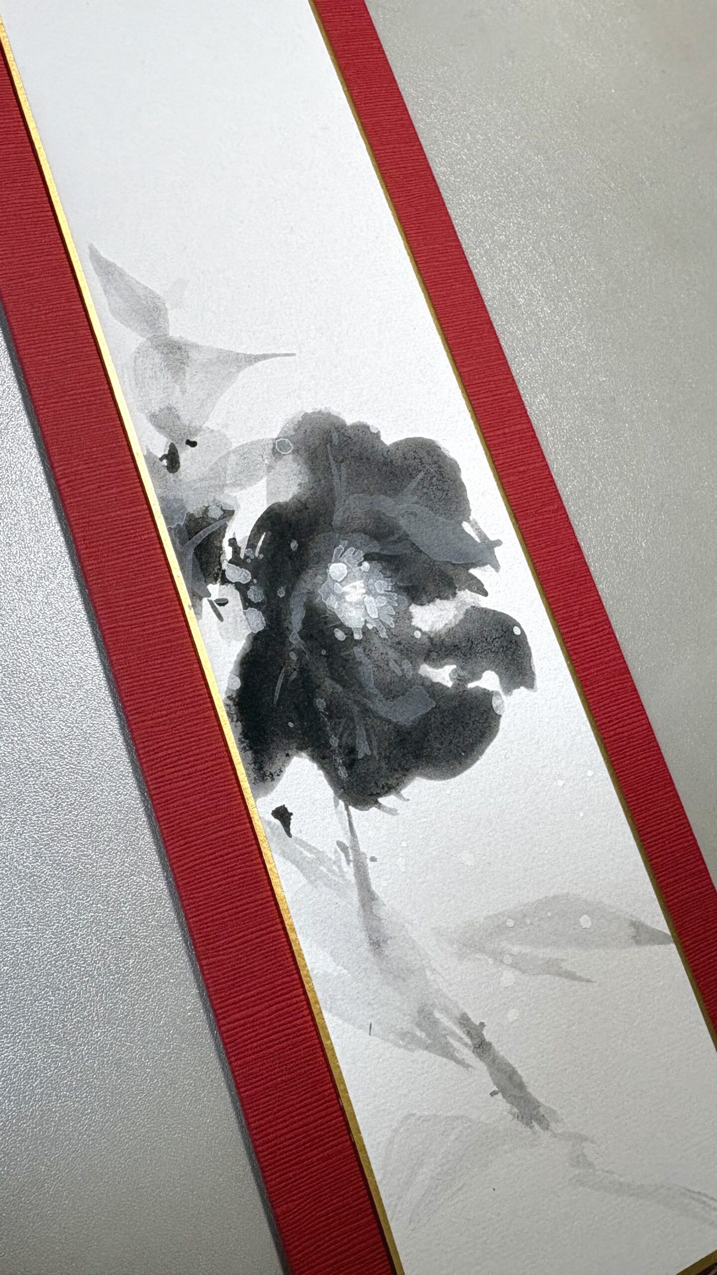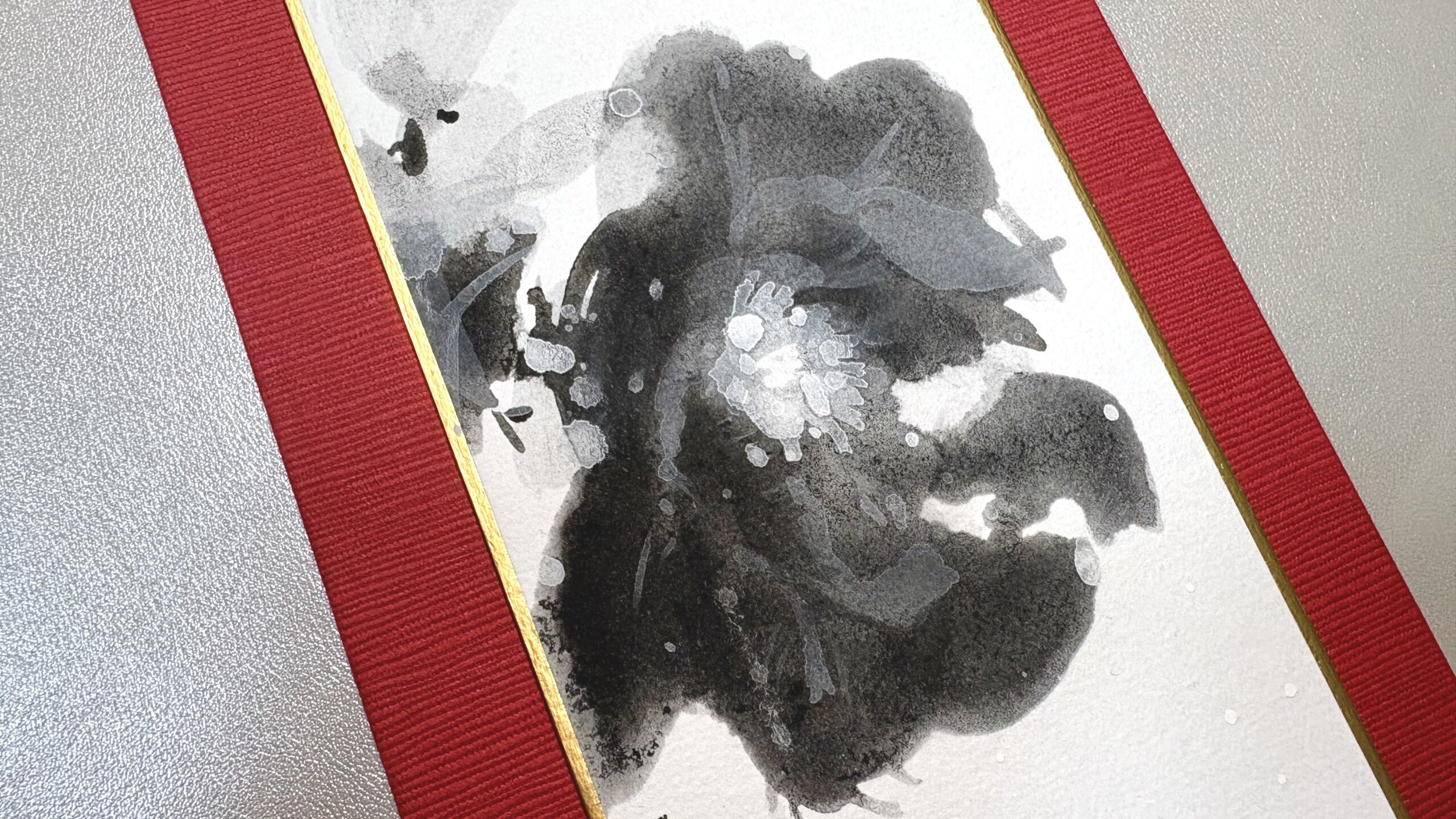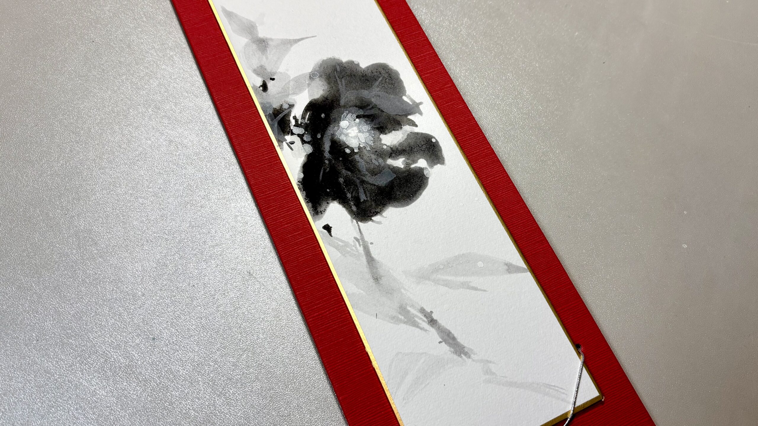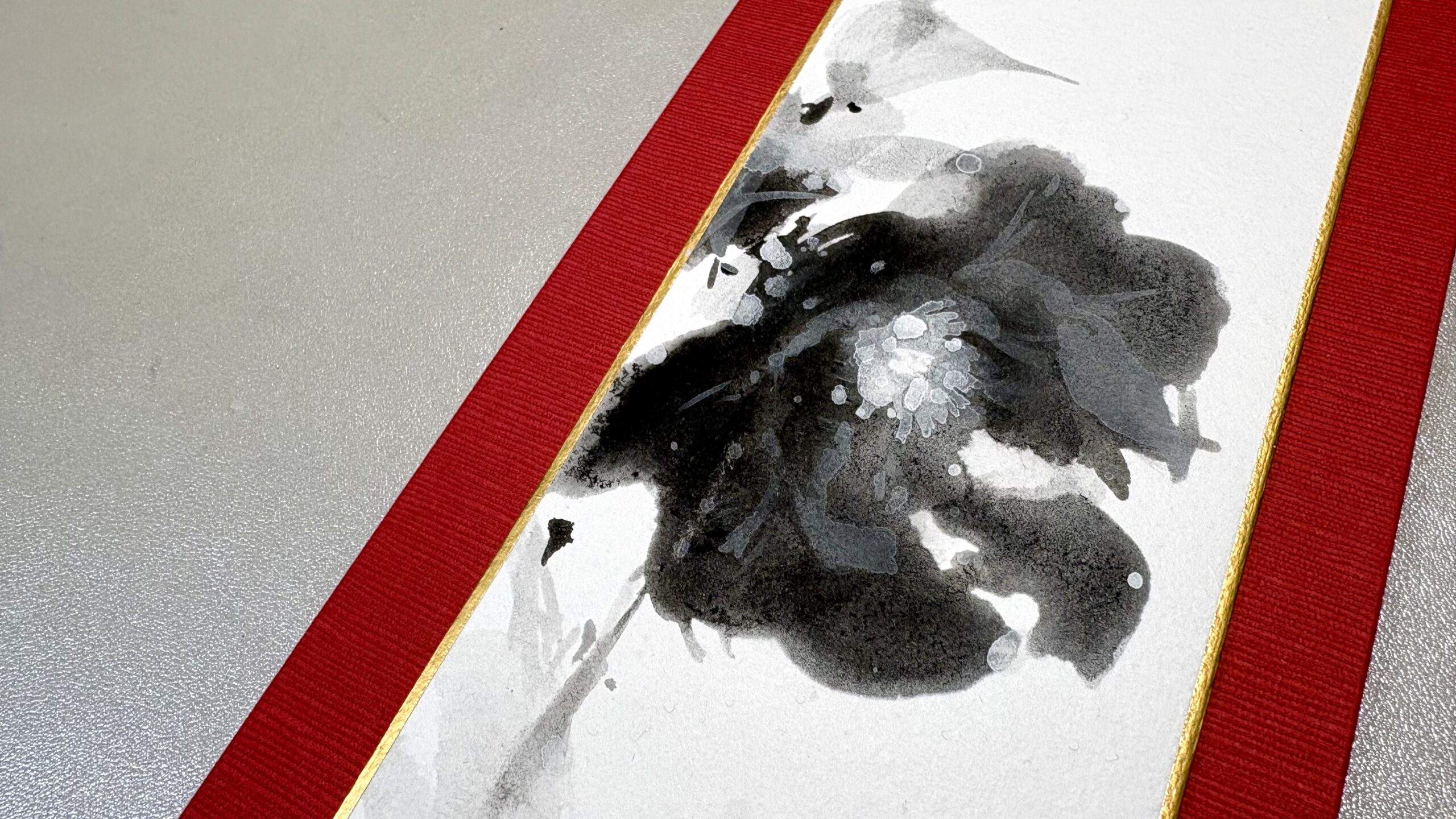 葉や枝の墨の濃淡を楽しんで欲しいです。