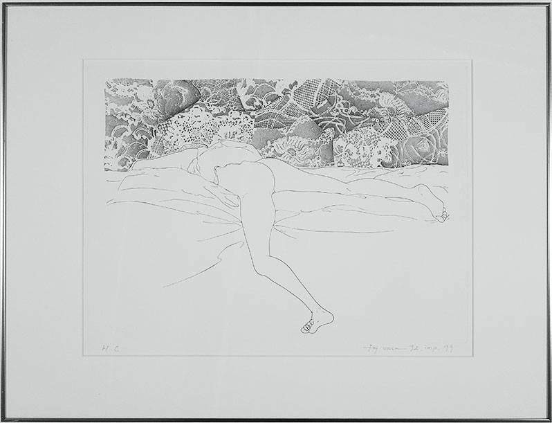 この頃は、レース模様を銅版に転写して腐蝕しています。私の場合は、少し銅版画で使用するグランド液とは異なるものを用いています。ですので、繊細なレース模様を写しとっています。