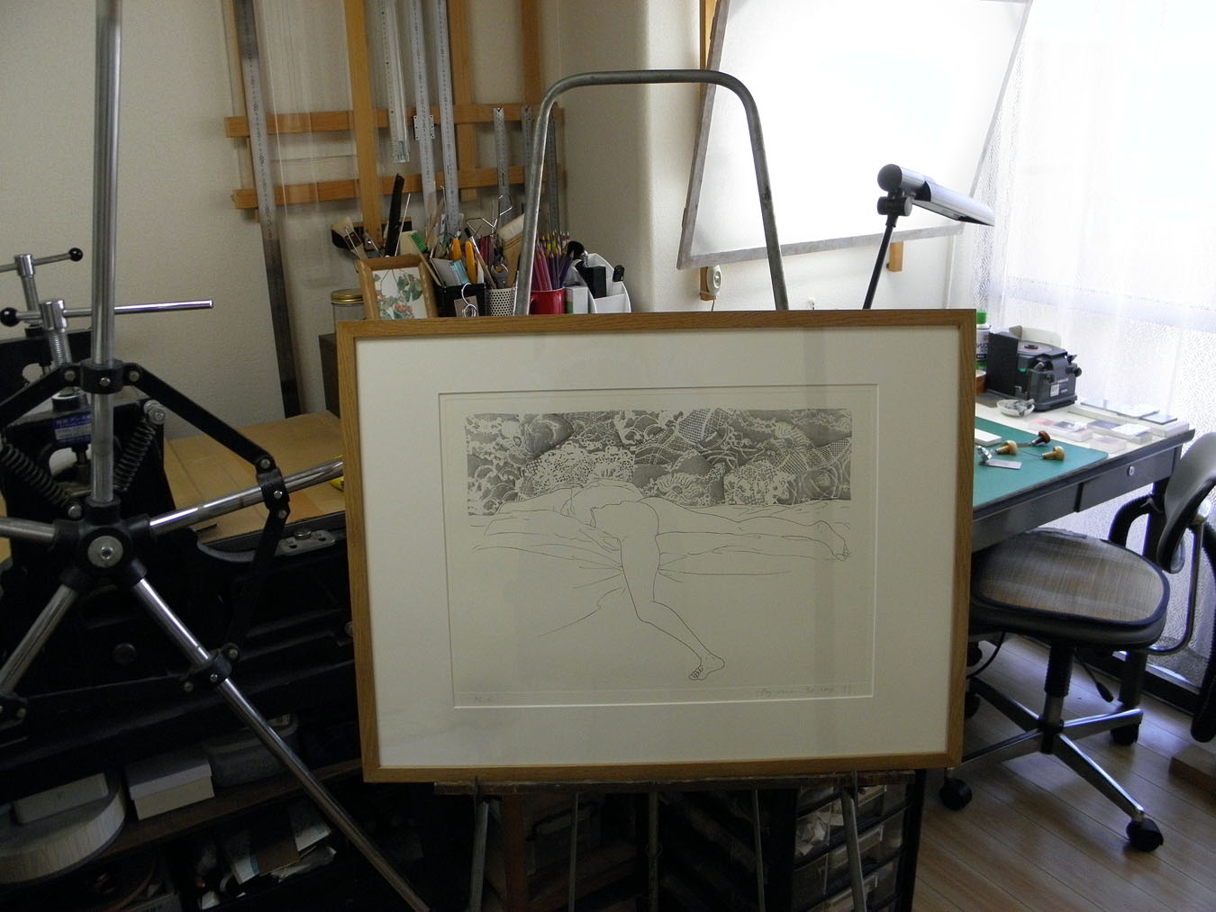 その頃「デッサン大賞展」に応募して、展示を観た人からの要望で作品を50点ほど送ったところ、すべて欲しいとのことで売りました。私のスケッチを見た人からよく版画家かと云われたこともあり、売った金でプレス機を購入しました。それまで、2台プレス機を貰ったのですが、気が進まず処分しています。そのころ、ちょうど買ったばかりのプレス機を手放したい人が居ることを知り、買った次第です。それが今のプレス機です。ですので、銅版画も我流です。しかし、今はその作品を手放したことを後悔しています。作品を手放すときは良いものからと云われます。私もそのようにしました。