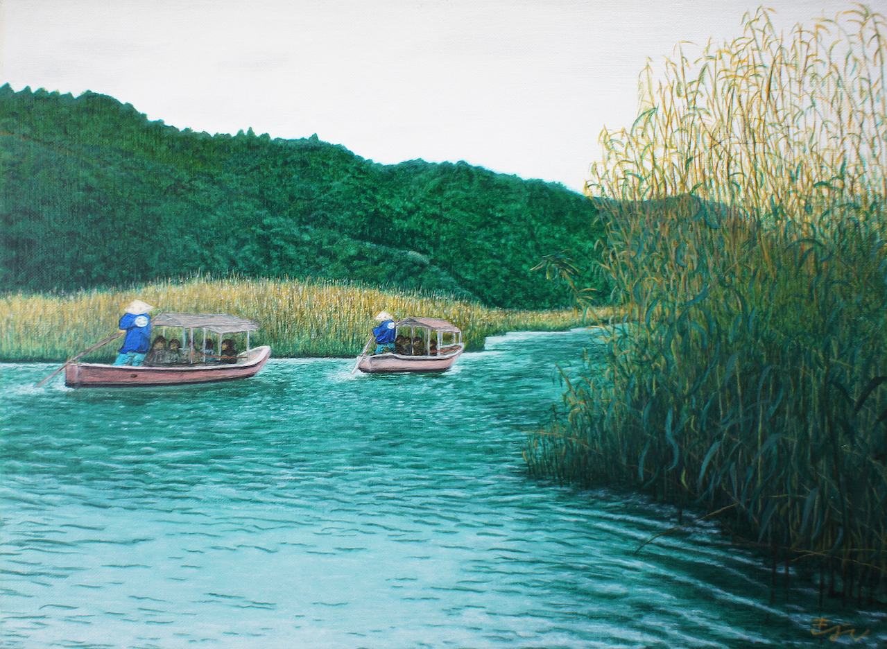 近江八幡水郷めぐりは、舟を船頭が櫓と竿で巧みに操りながら、自然の作り出す別世界である「よしの群生地帯を見て」「櫓の音、鳥の鳴き声を聞き」「水やよしの葉のにおいを感じ」「手こぎ舟の揺れを肌で感じ」残された自然が味わえる貴重な体験です。