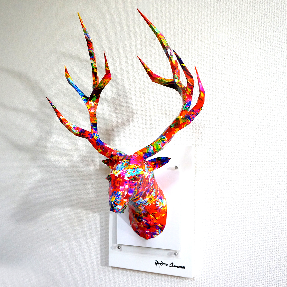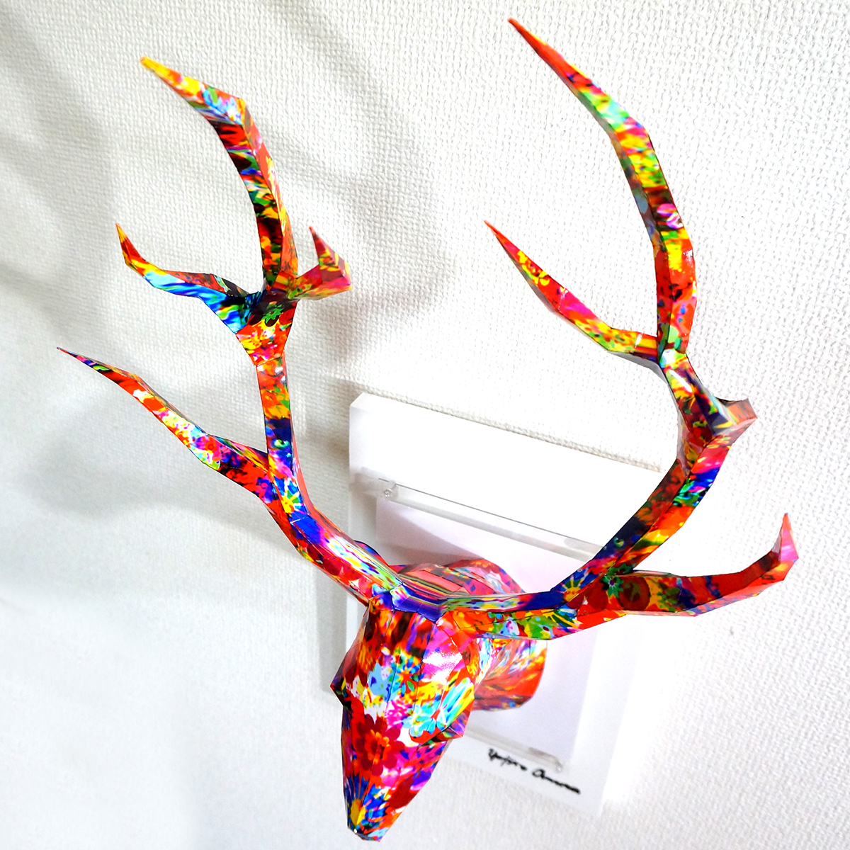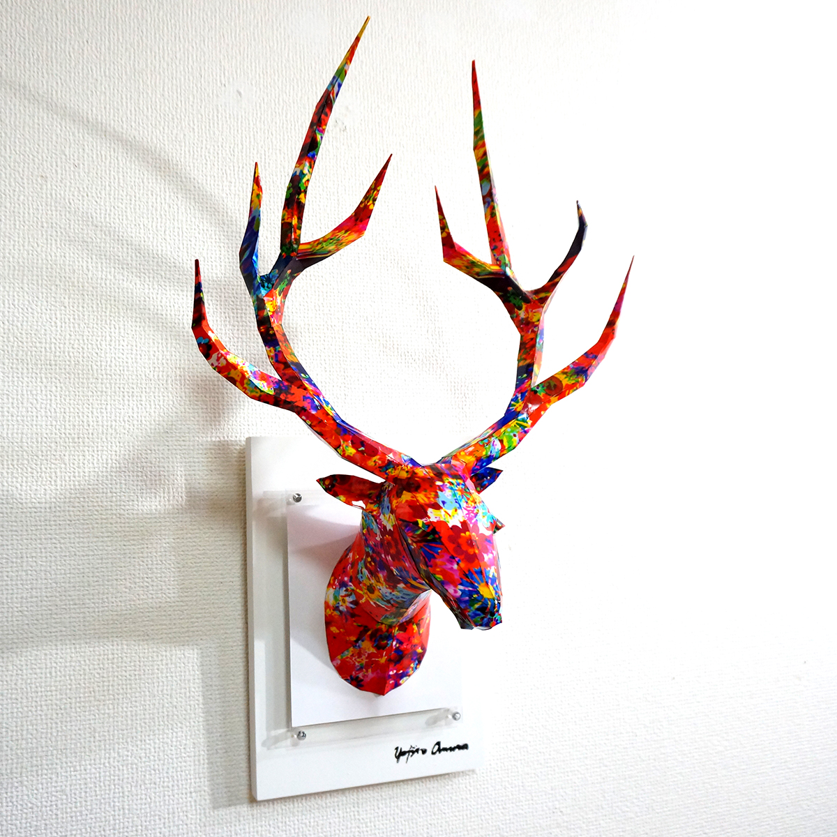 ペーパークラフト技術を用いて制作した鹿のハンティングトロフィーの作品です。