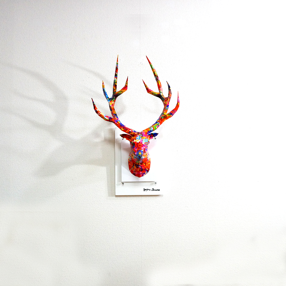 カラフルな色合いが目を引くとてもポップな印象のハンティングトロフィーです。