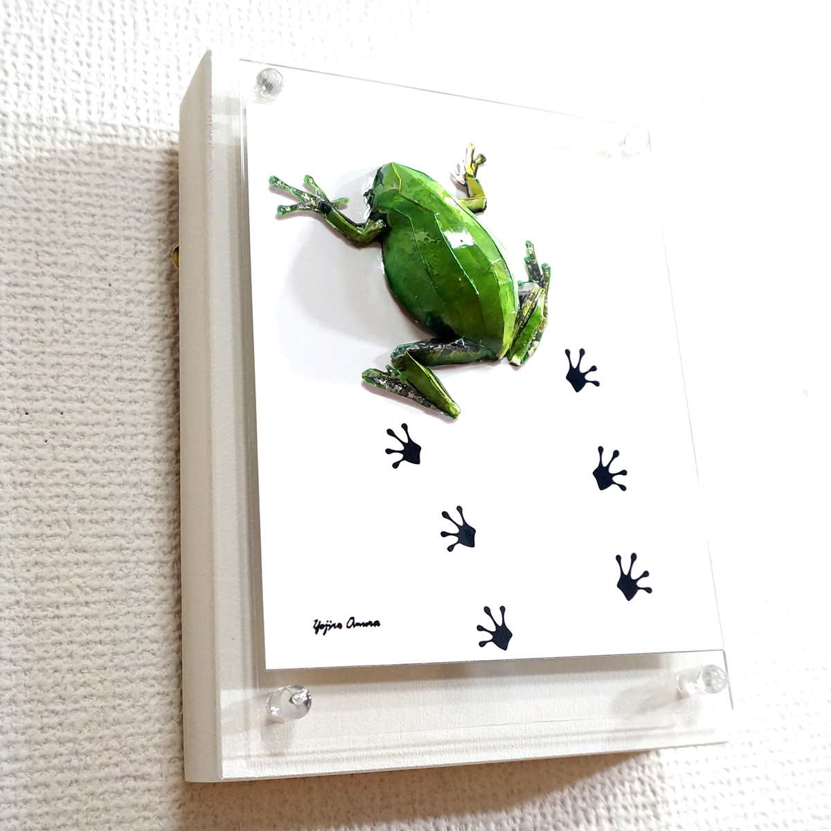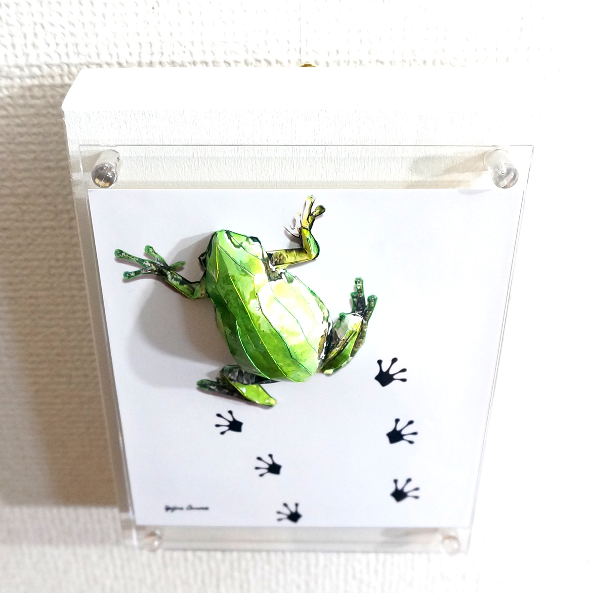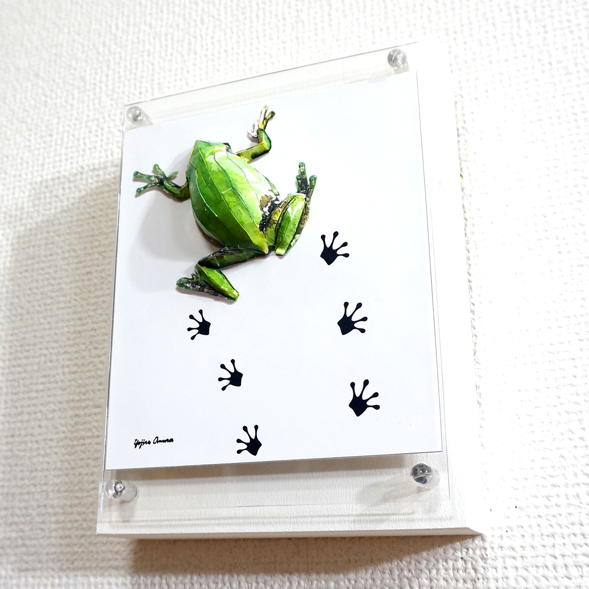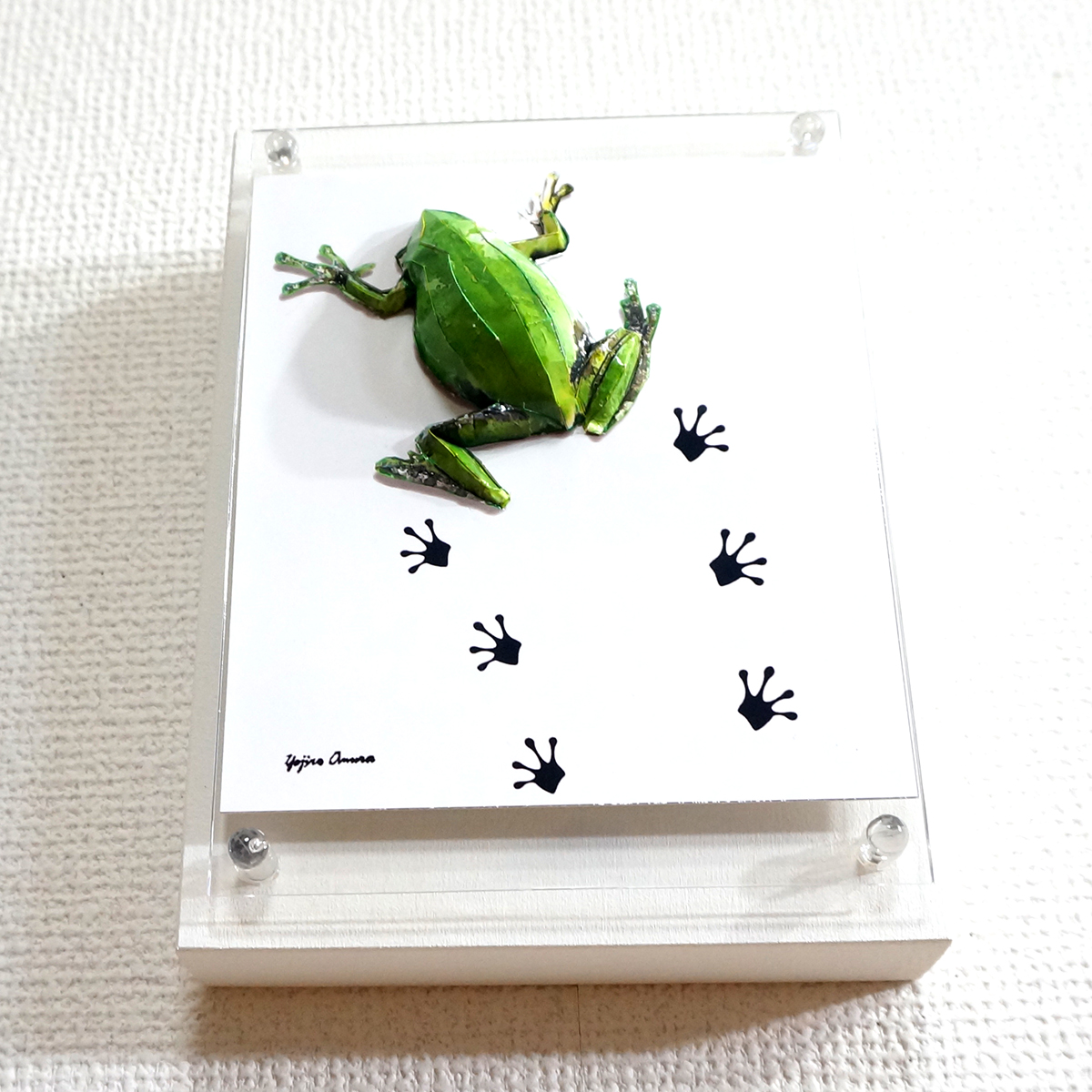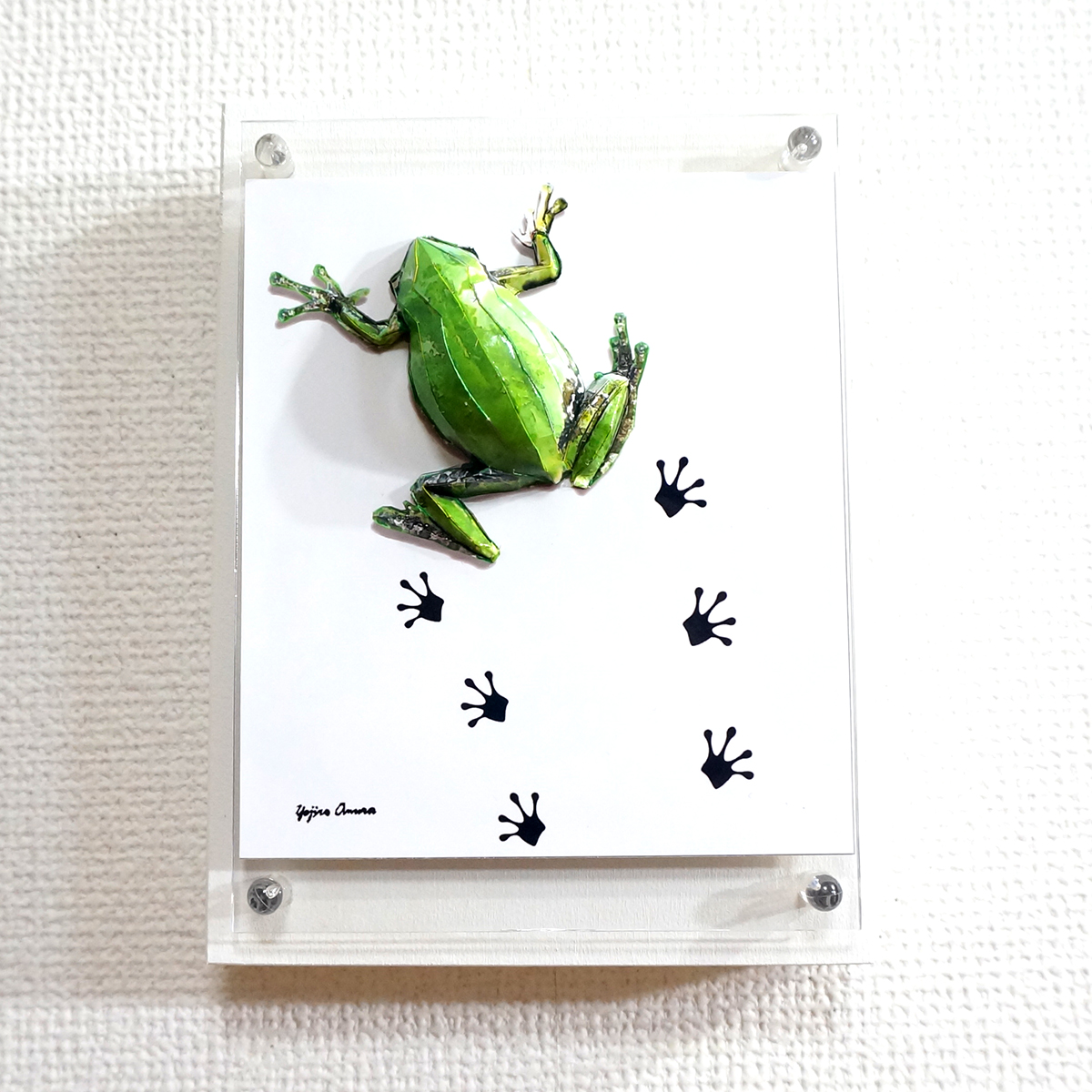 パネルの上を小さなアマガエルがペタペタと足跡を残しながら歩いている様子を表現いたしました。