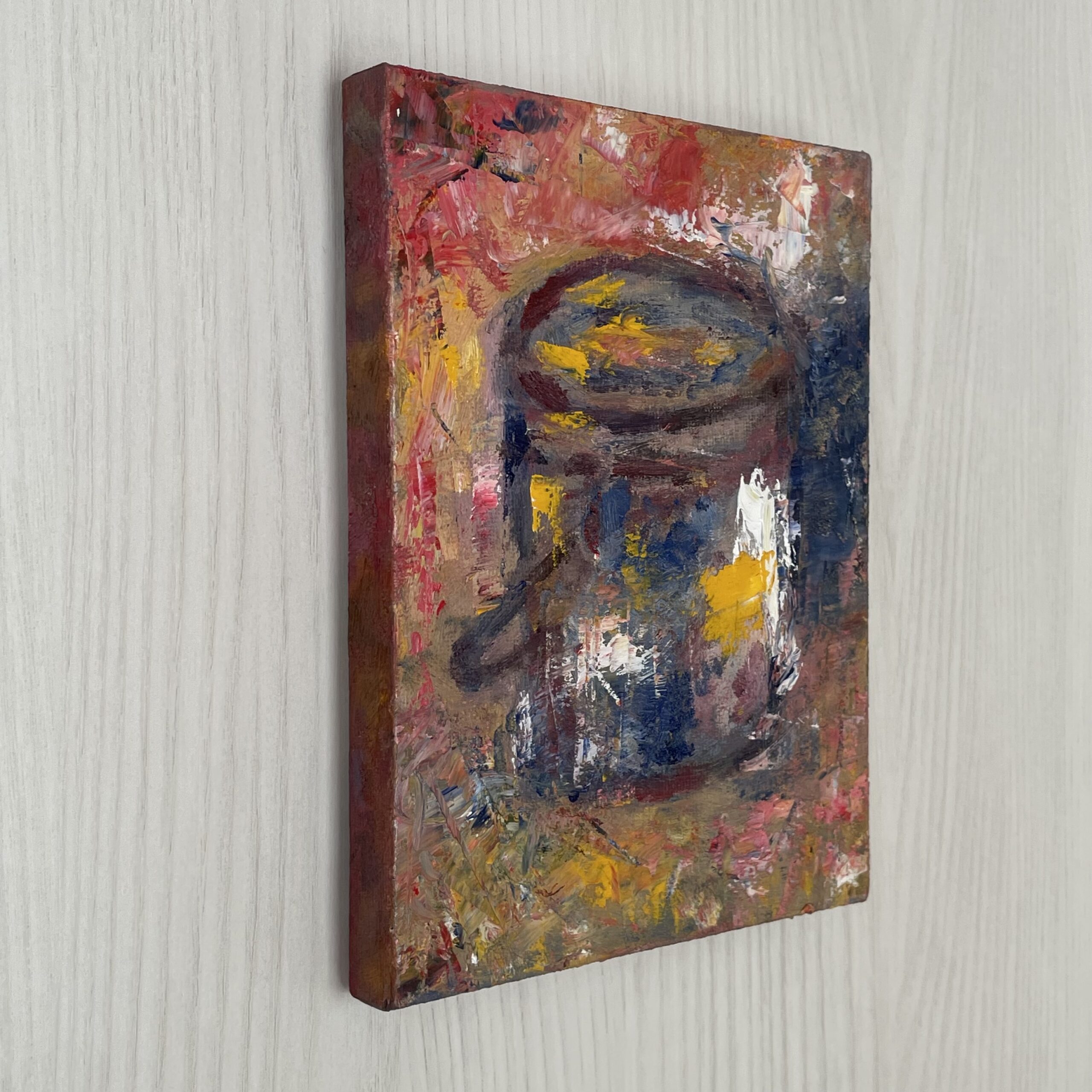 筆洗器を描くというよりも、油彩特有の絵具の重なりと、時を経たような色の深みを追求しました。