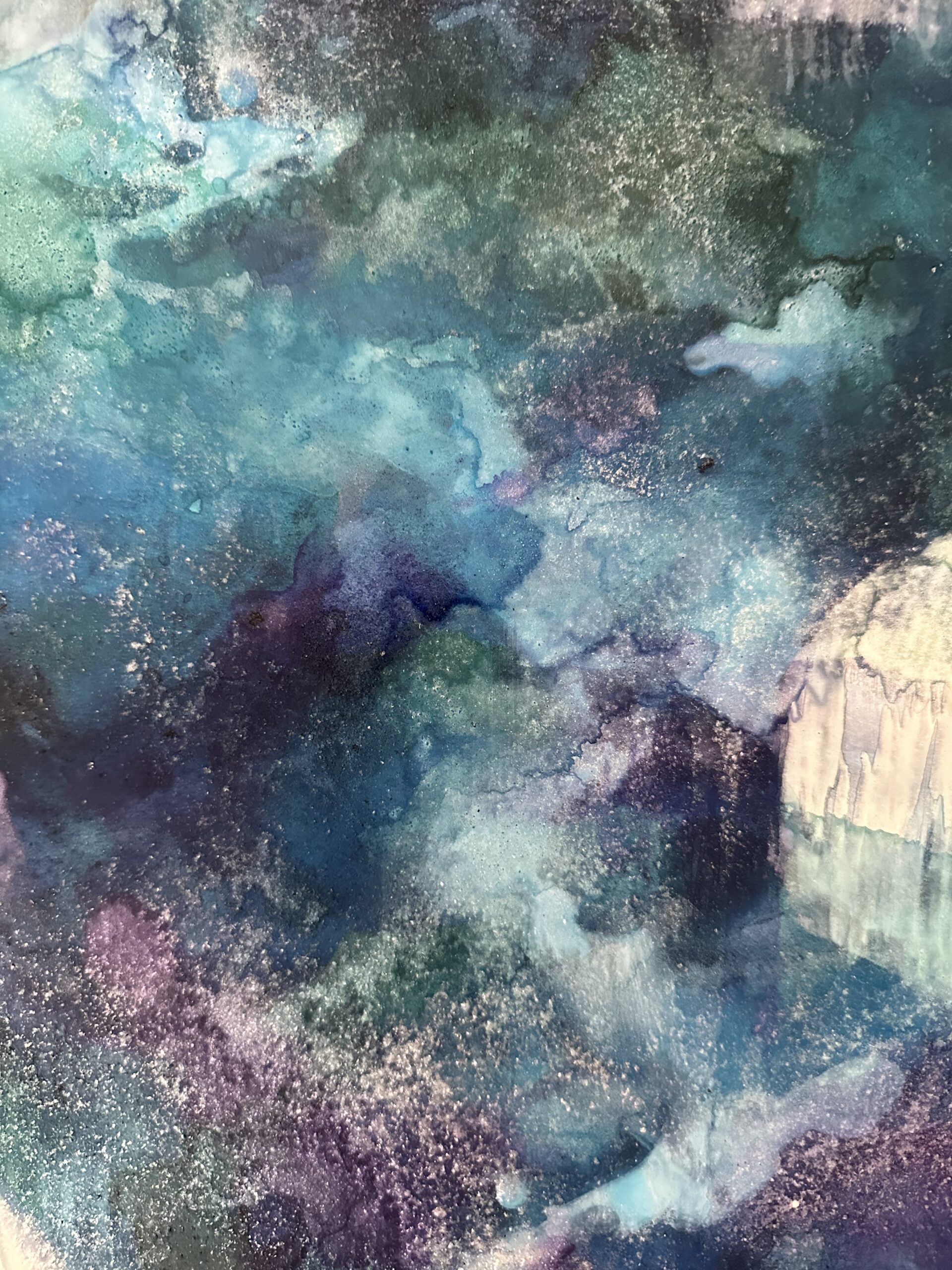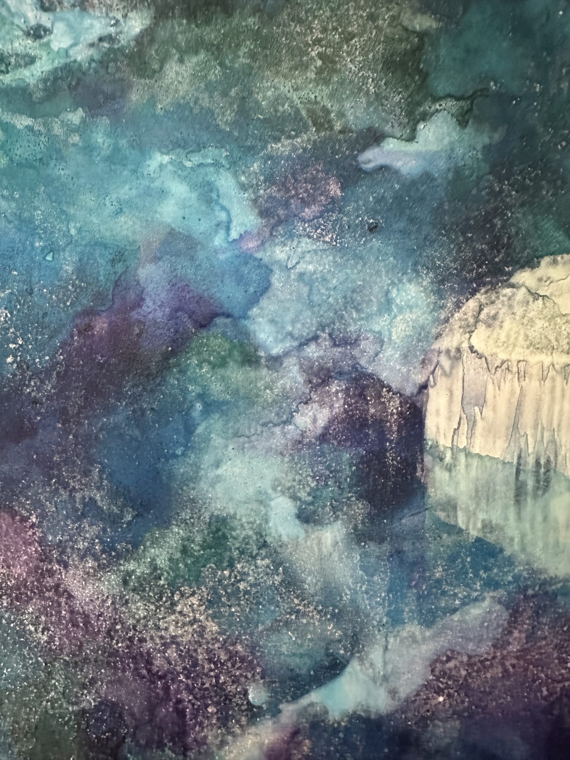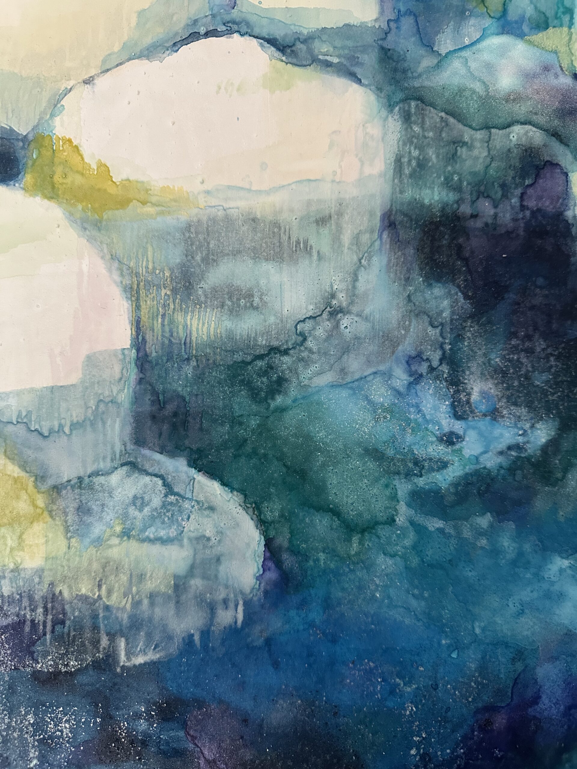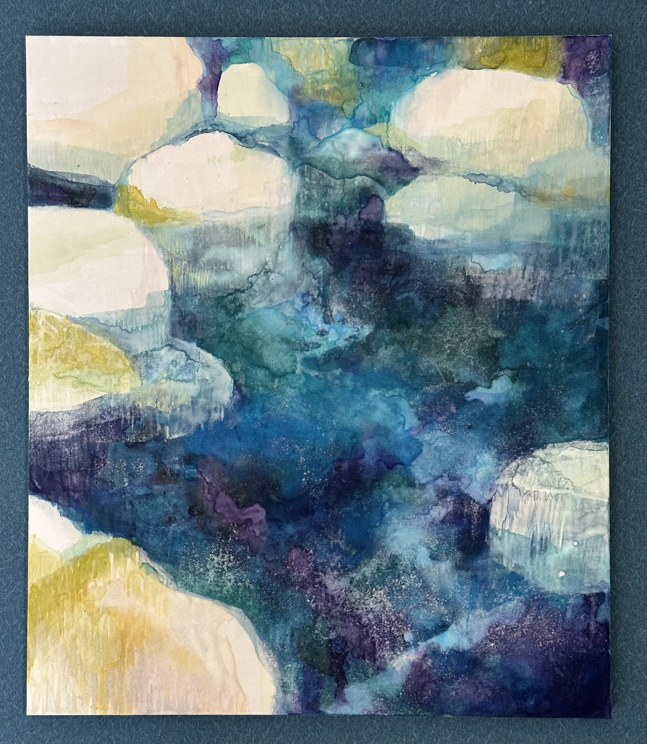 子どもの頃に畦道で摘んだ草花の色、鏡のような静かな海の色、名残惜しい夕日の色…。岩絵具の美しい色の粒子を使うことで、いろいろな色を表現できそうな気がして、日本画制作を始めました。