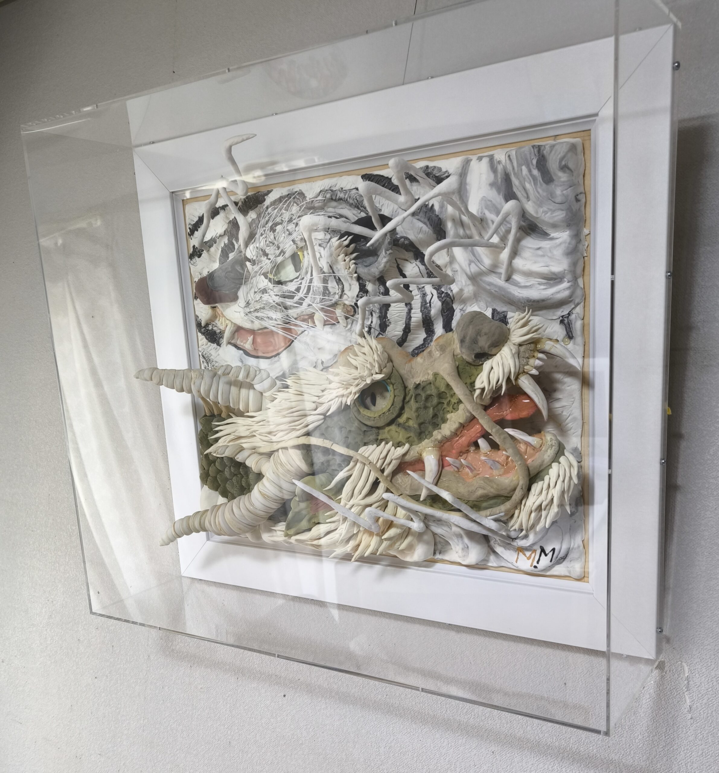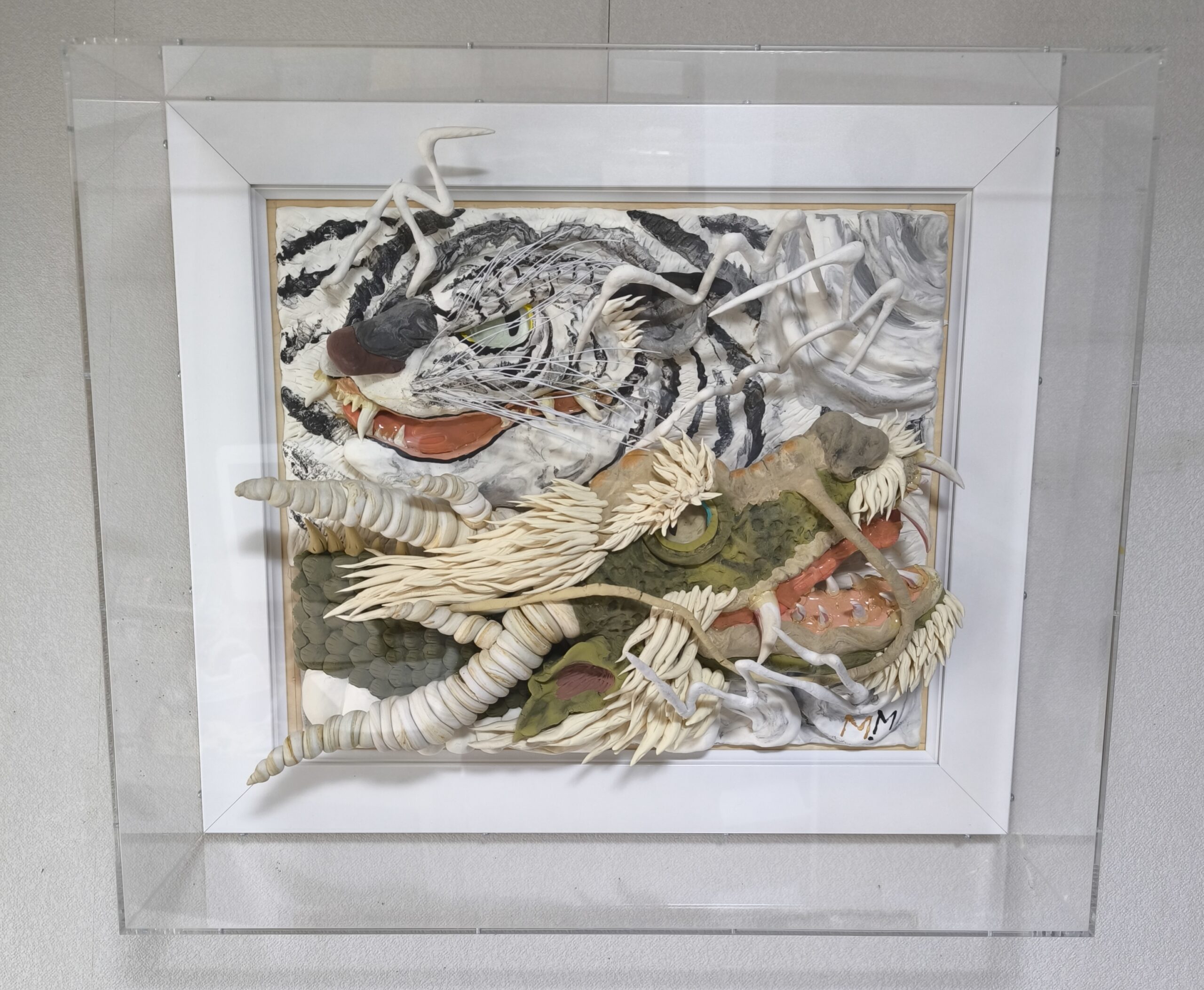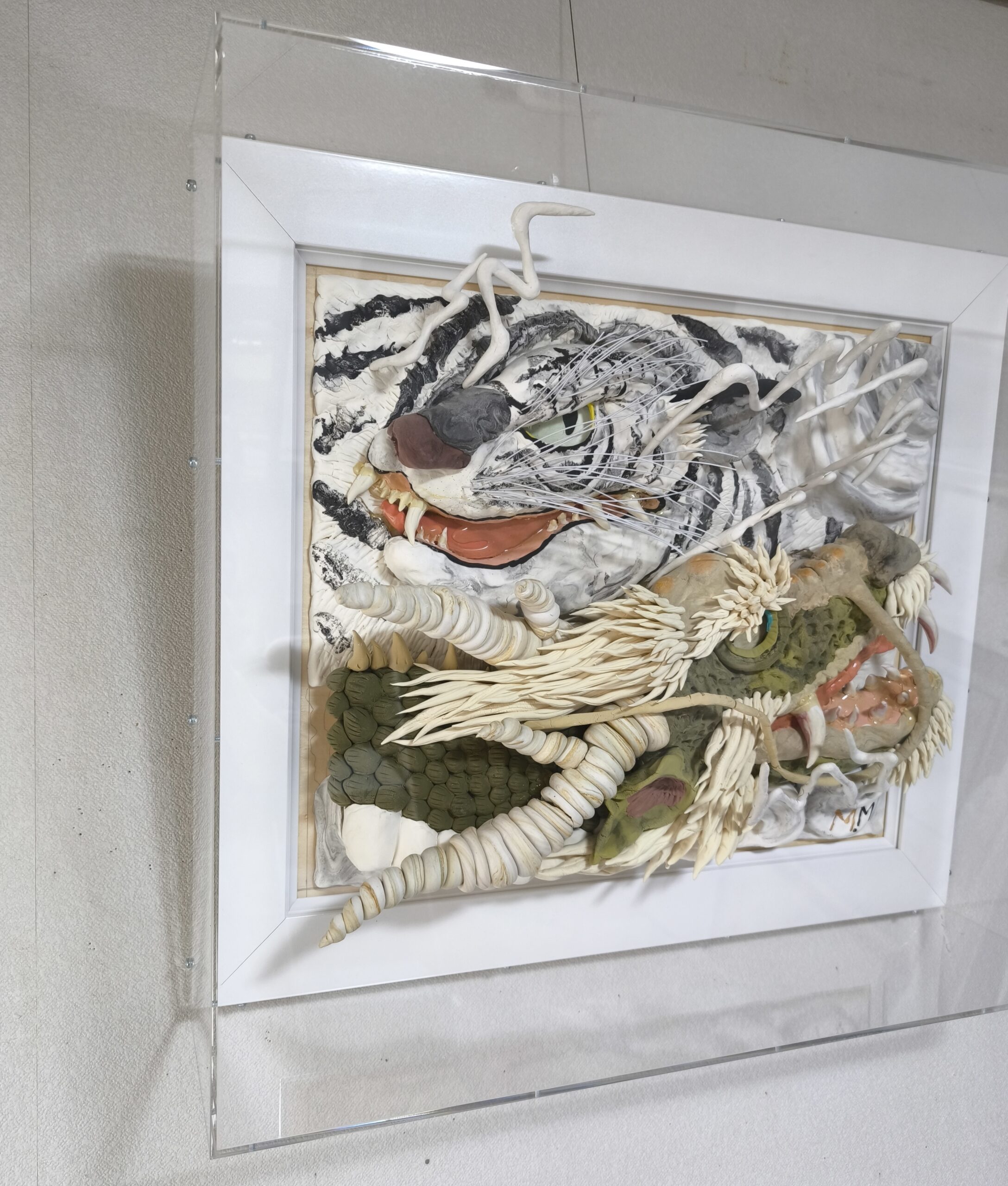 古代アジアでは龍は守護神として崇められ、とりわけ江戸後期に於いては神秘に満ちたモチーフとして、また白虎も、よく描かれており先人の偉業を私なりに解釈して描きました。