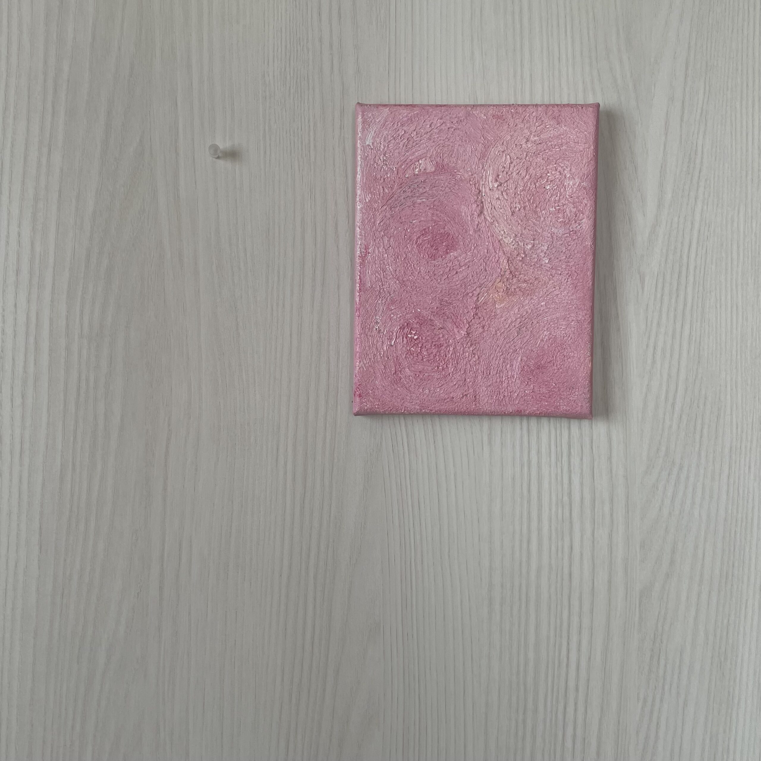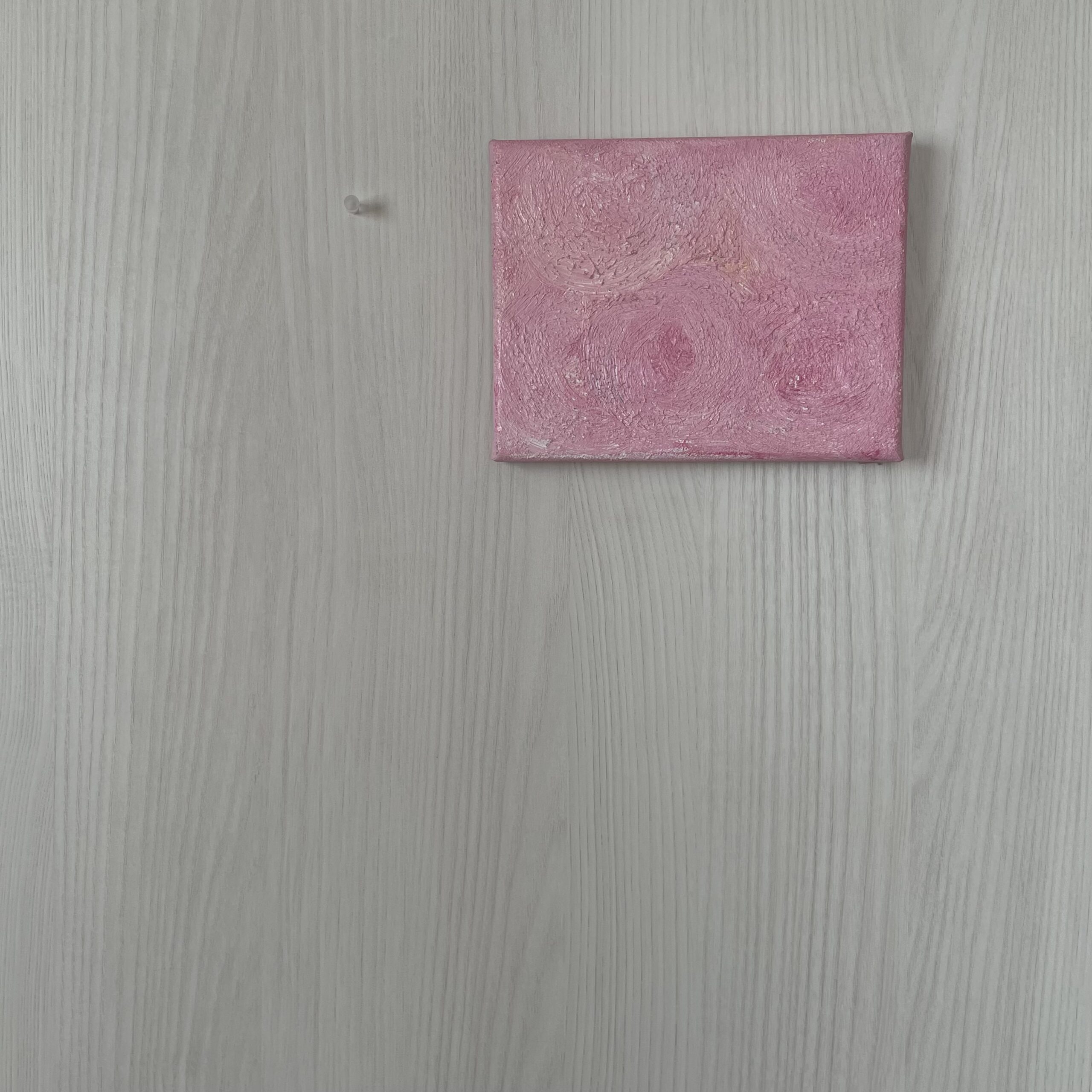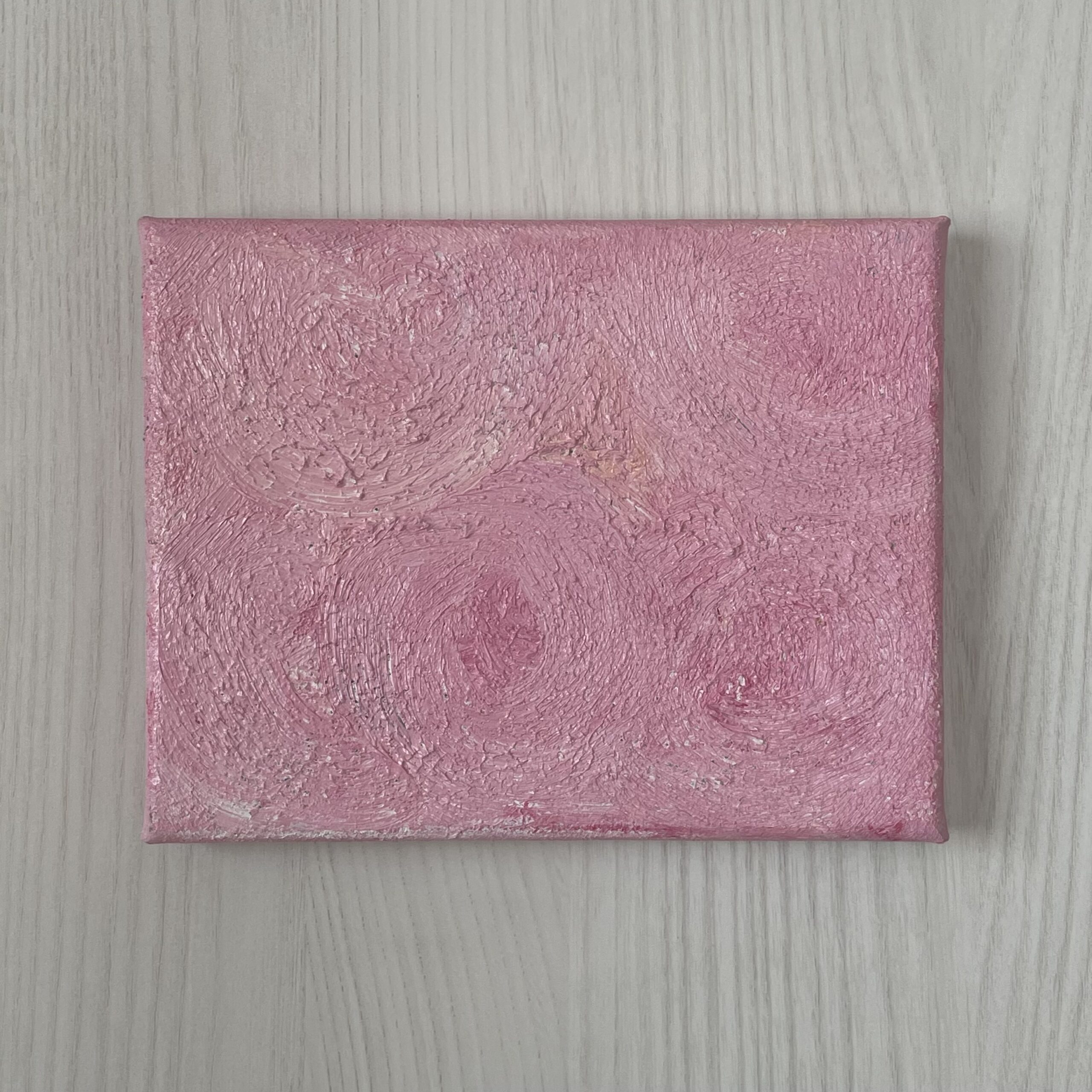 暖かさを感じ始めた頃、春を思い浮かべながらピンクの絵具を作っているうちに、思いがけず完成した作品です。