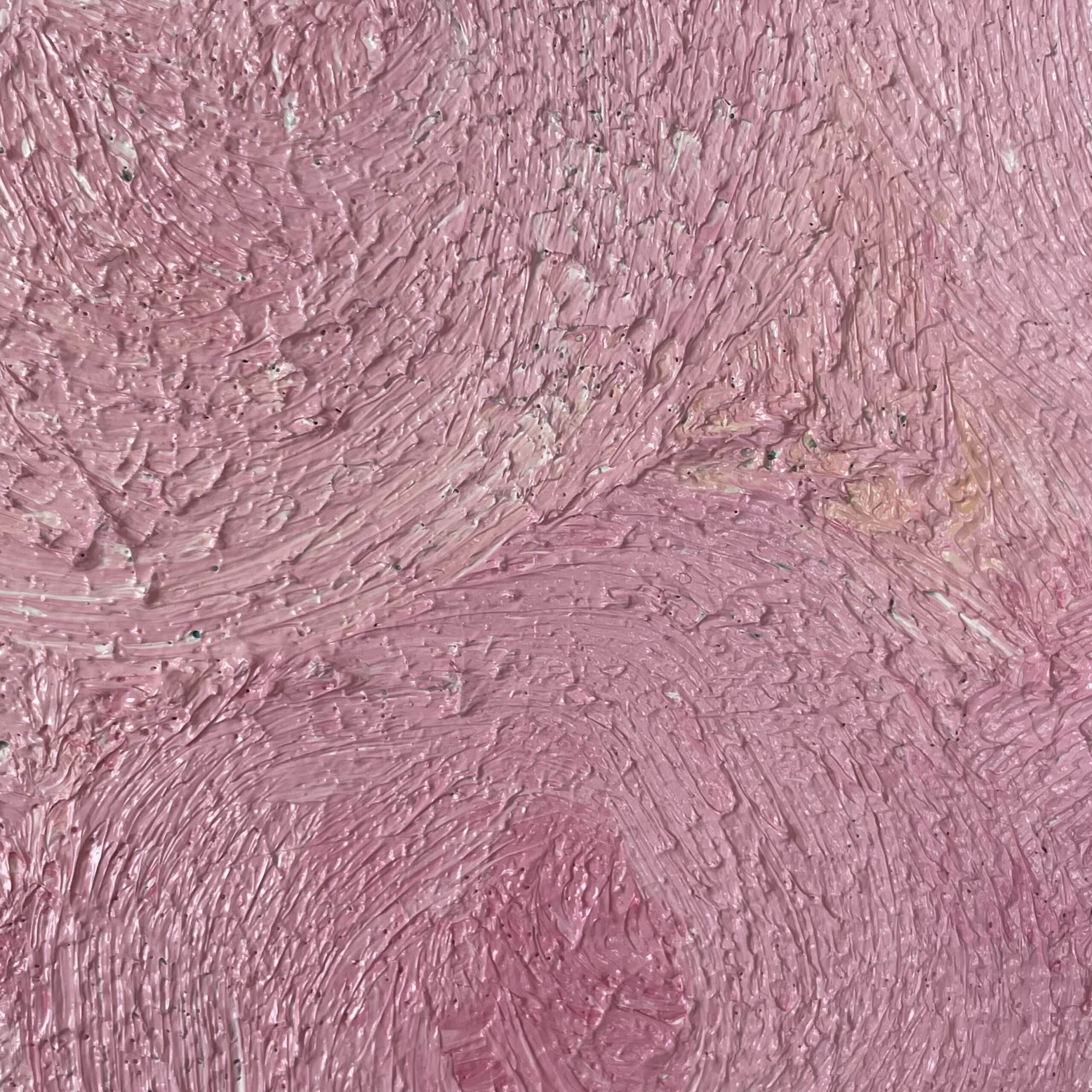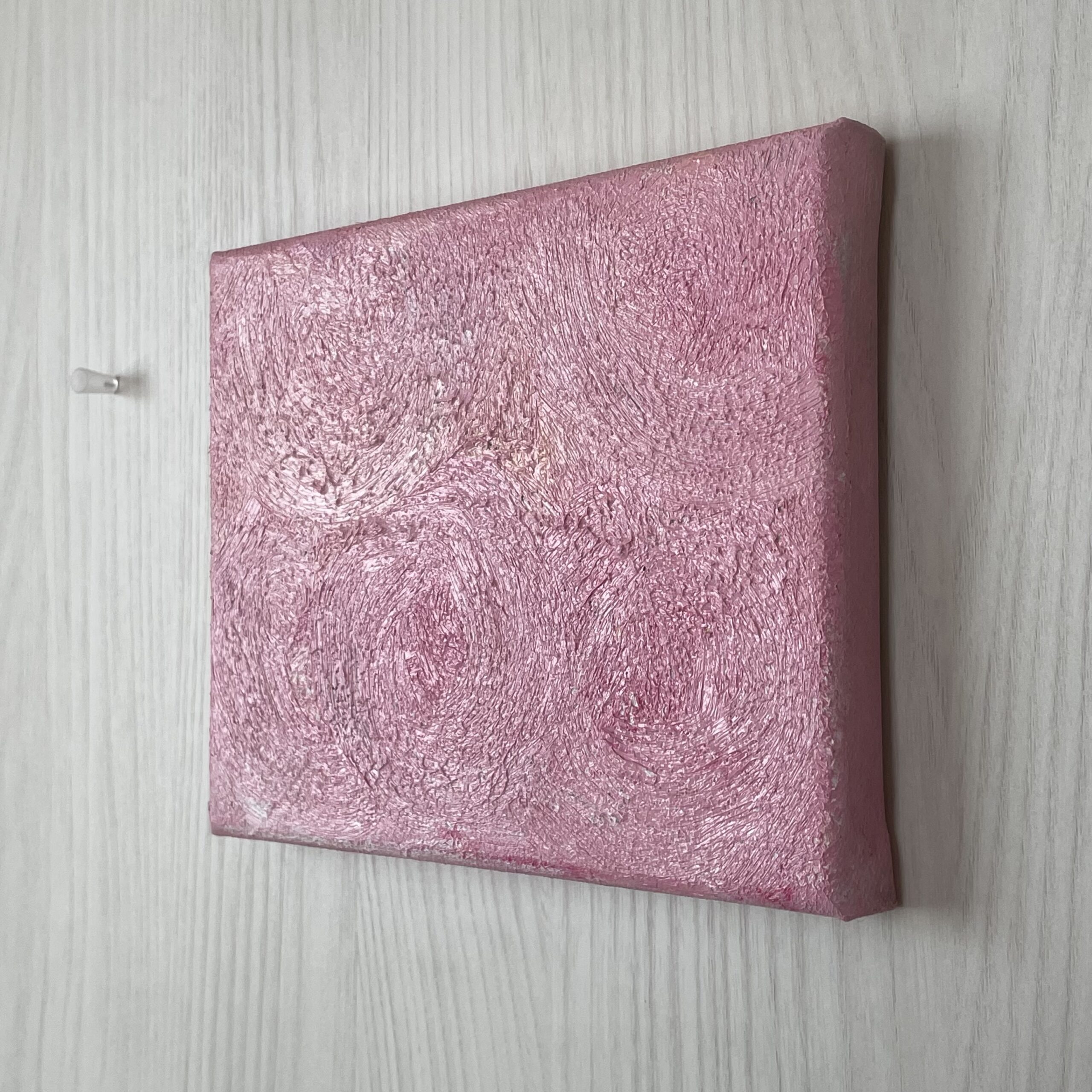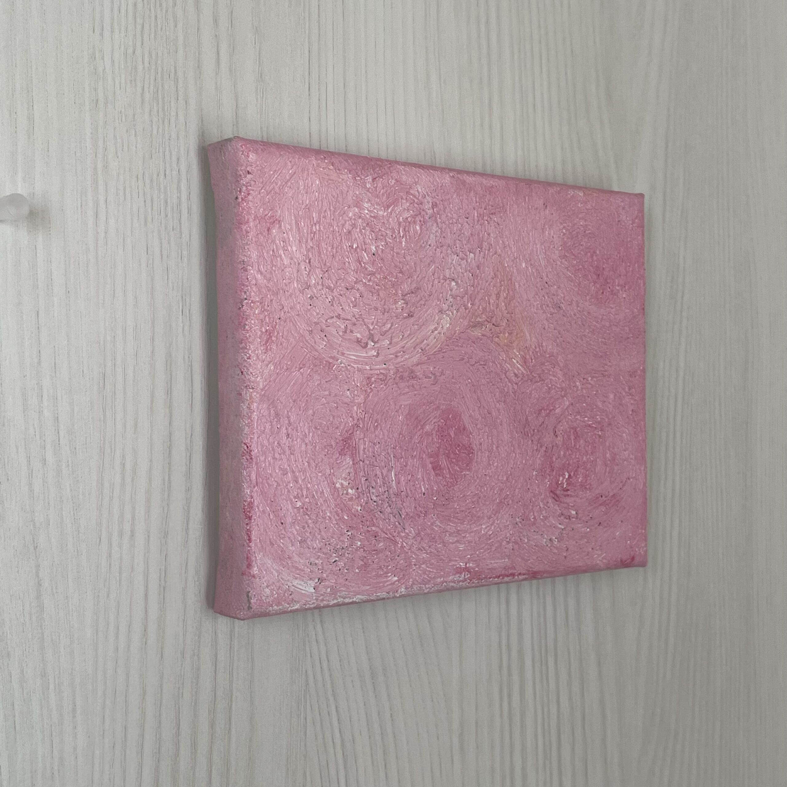 暖かさを感じ始めた頃、春を思い浮かべながらピンクの絵具を作っているうちに、思いがけず完成した作品です。