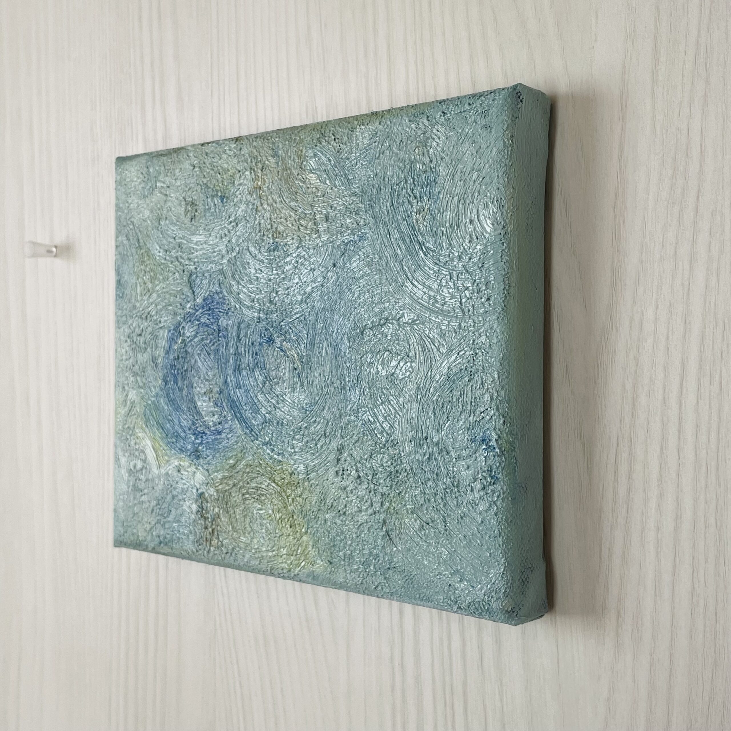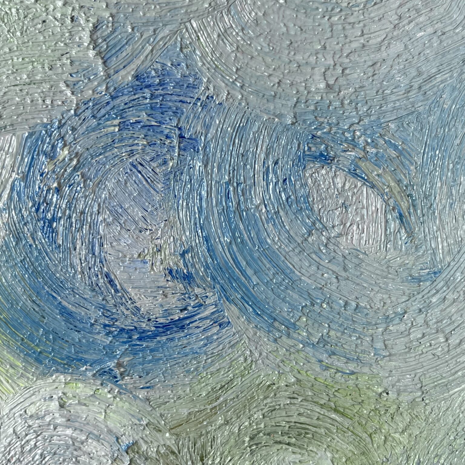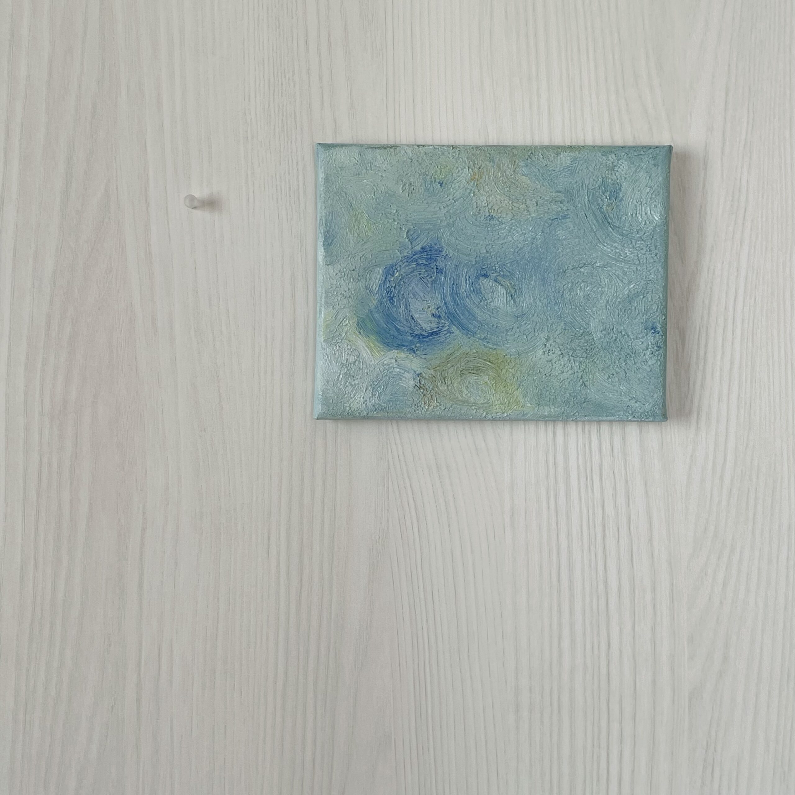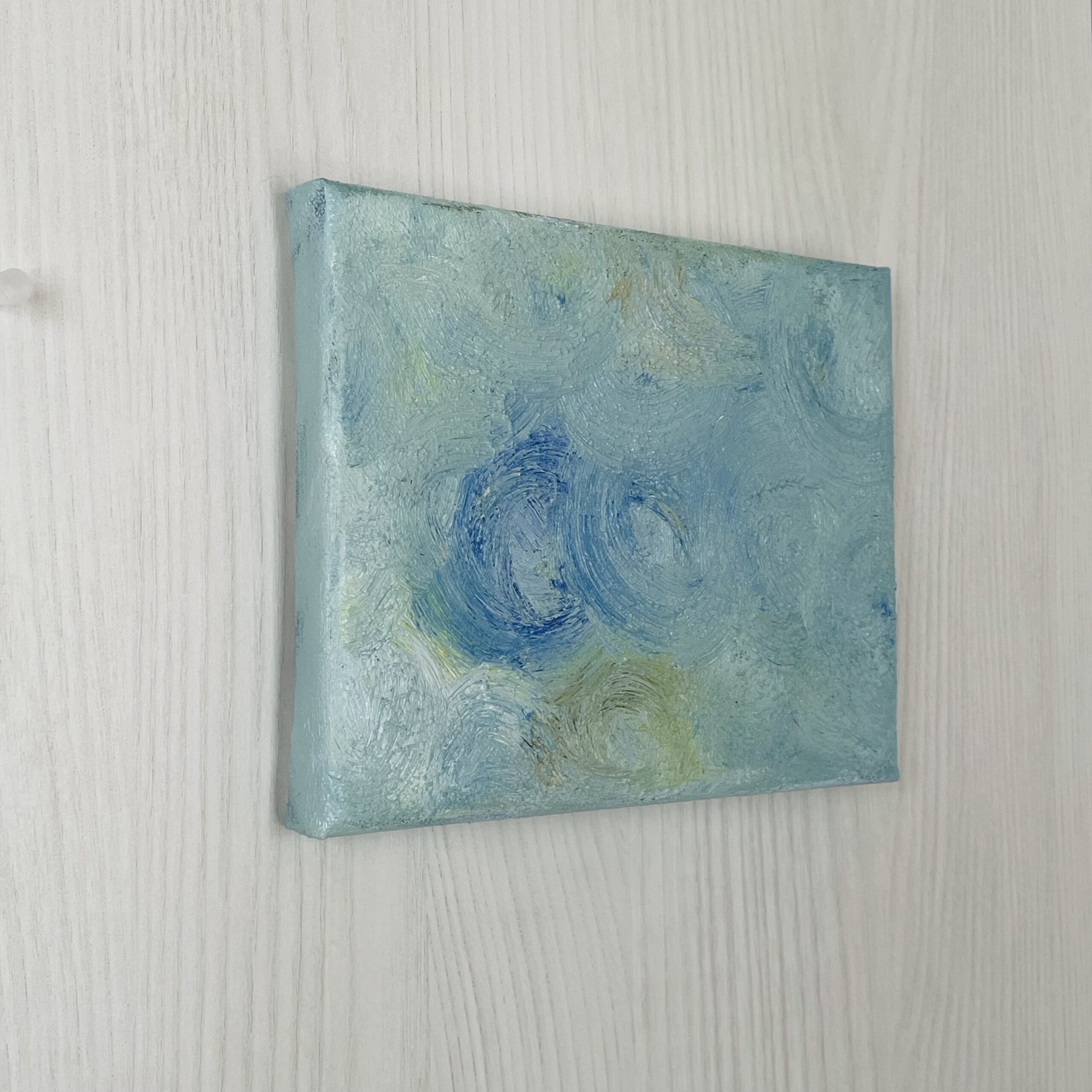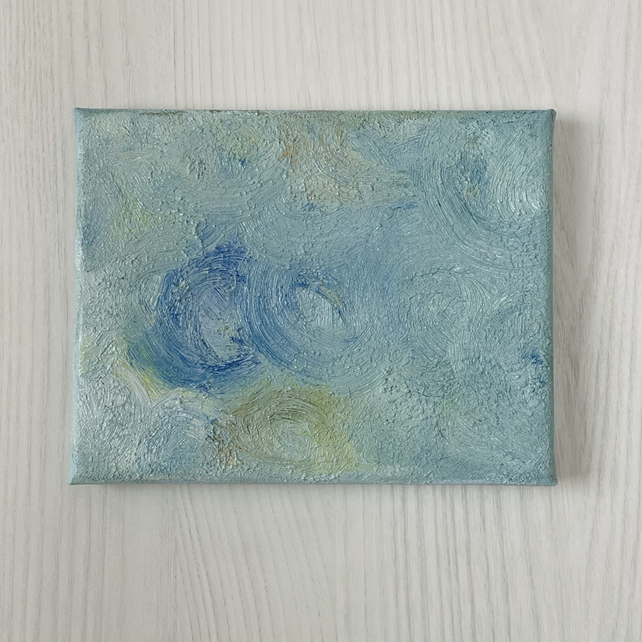 少し湿り気を帯びた空気を感じながら、青や黄色の絵具を重ねていった作品です。
