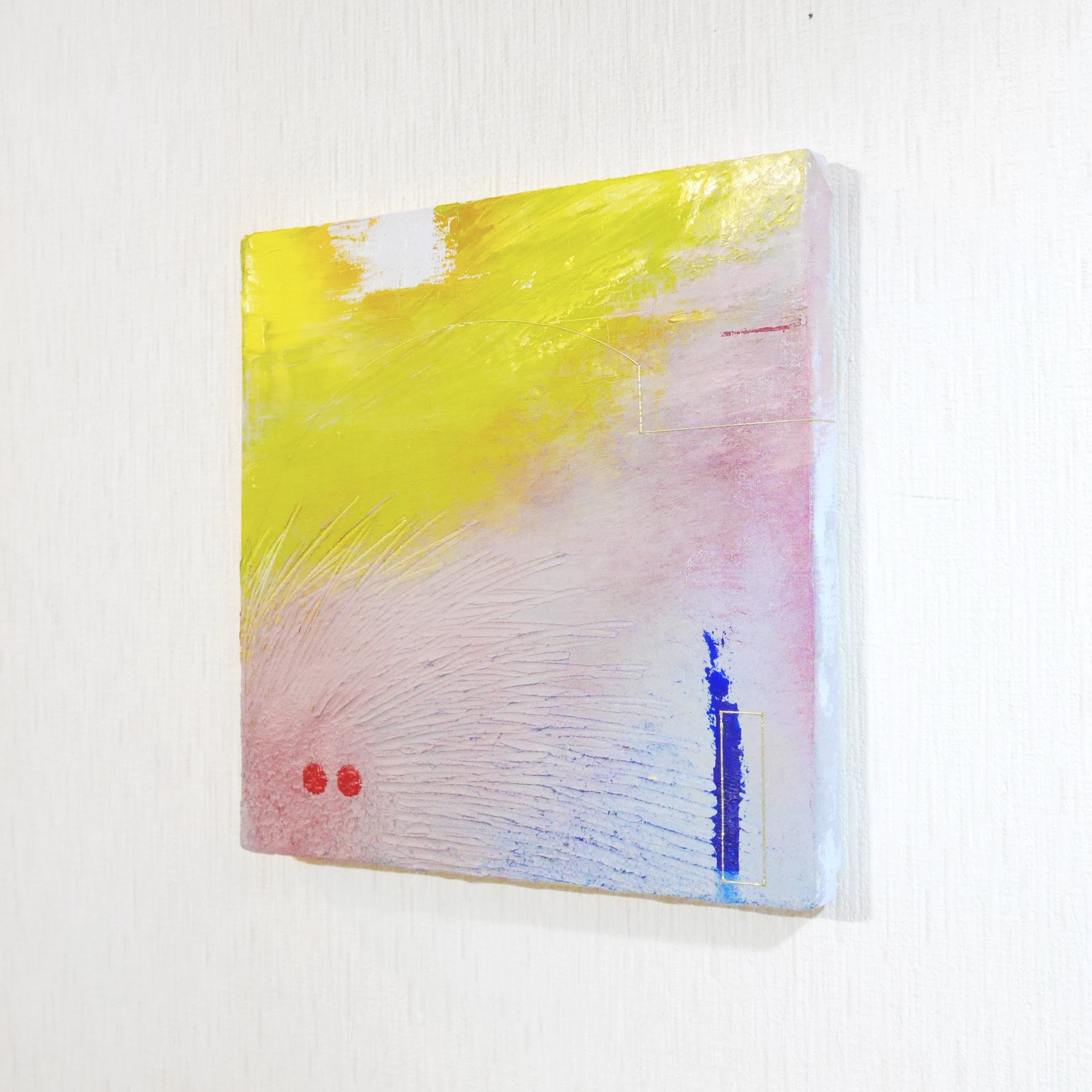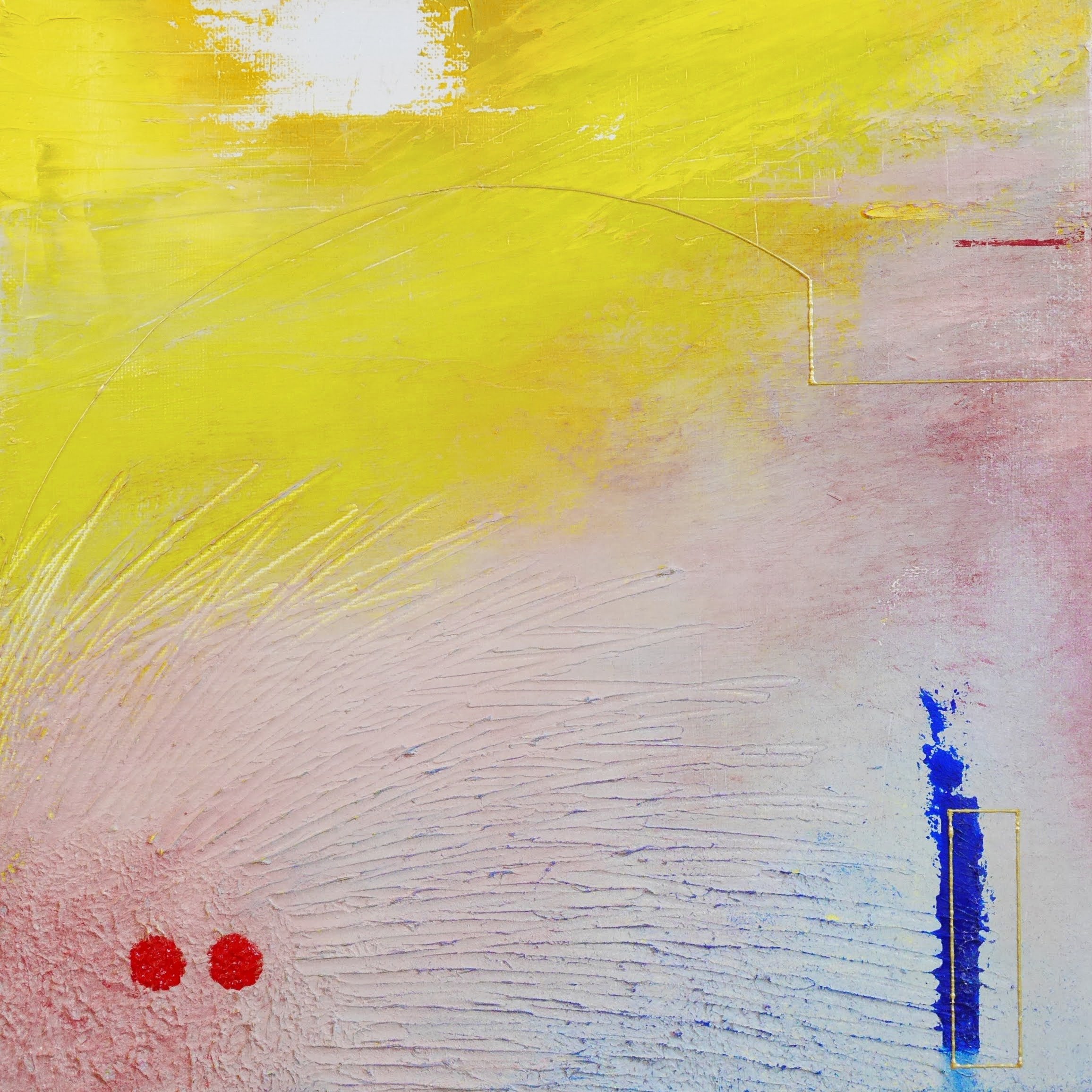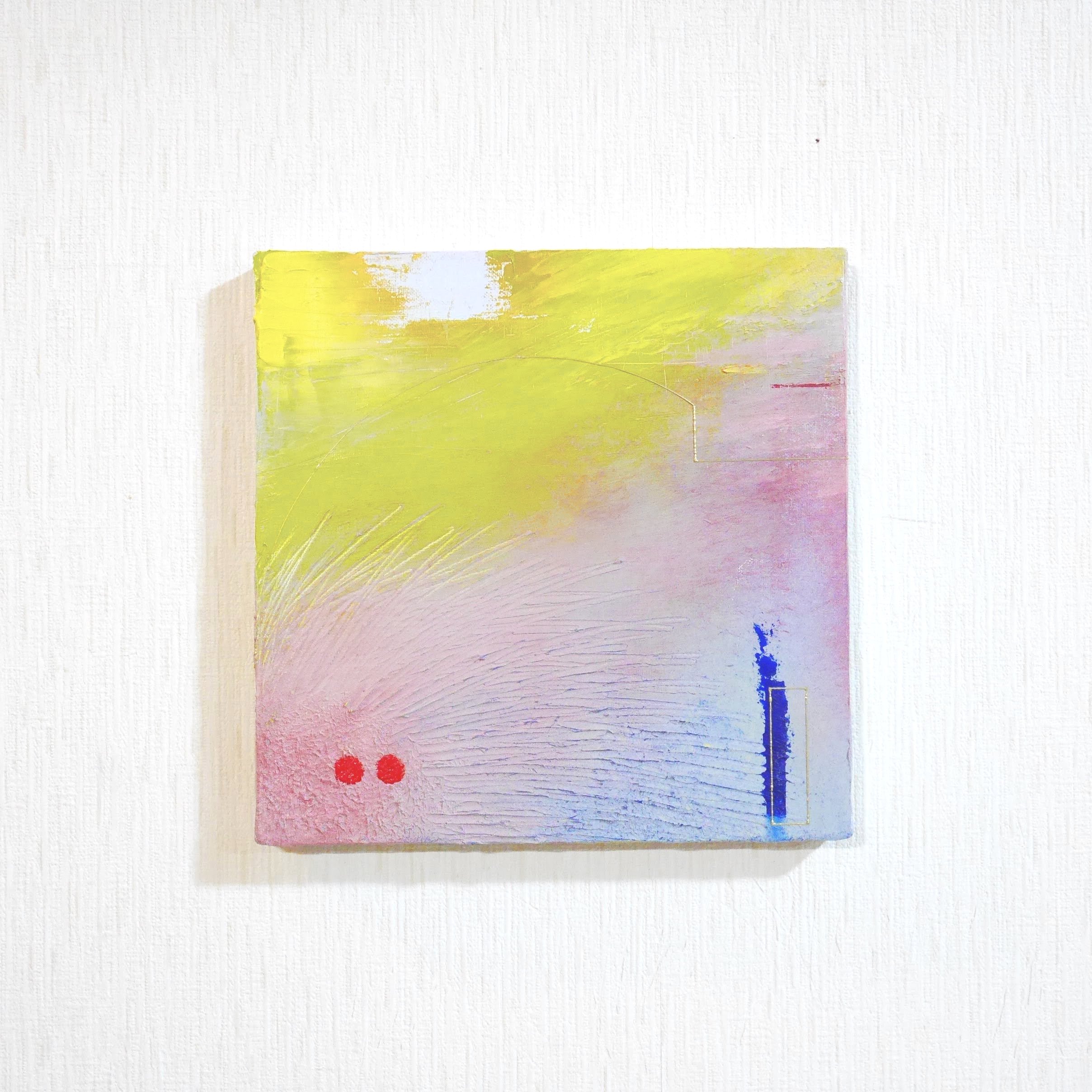 S3サイズのキャンバスに油彩 油彩画ならではの色彩の混ざり合い・タッチの質感で、人の内面を抽象的に描いてみました。 移ろいゆく感情、同時に沸き起こる相反する感情、すべてを覆いつくすような深い感情、絶やさずに灯し続けてきた気持ち、揺らいでしま心情 そこに、金色の線描にて「僅かに差し込む理性」を加えて、 コンポジション画のように1枚にしたためました。 自分の気持ちがわからなくなるような、そんなときに眺めてもらえる一作となれば幸いです。