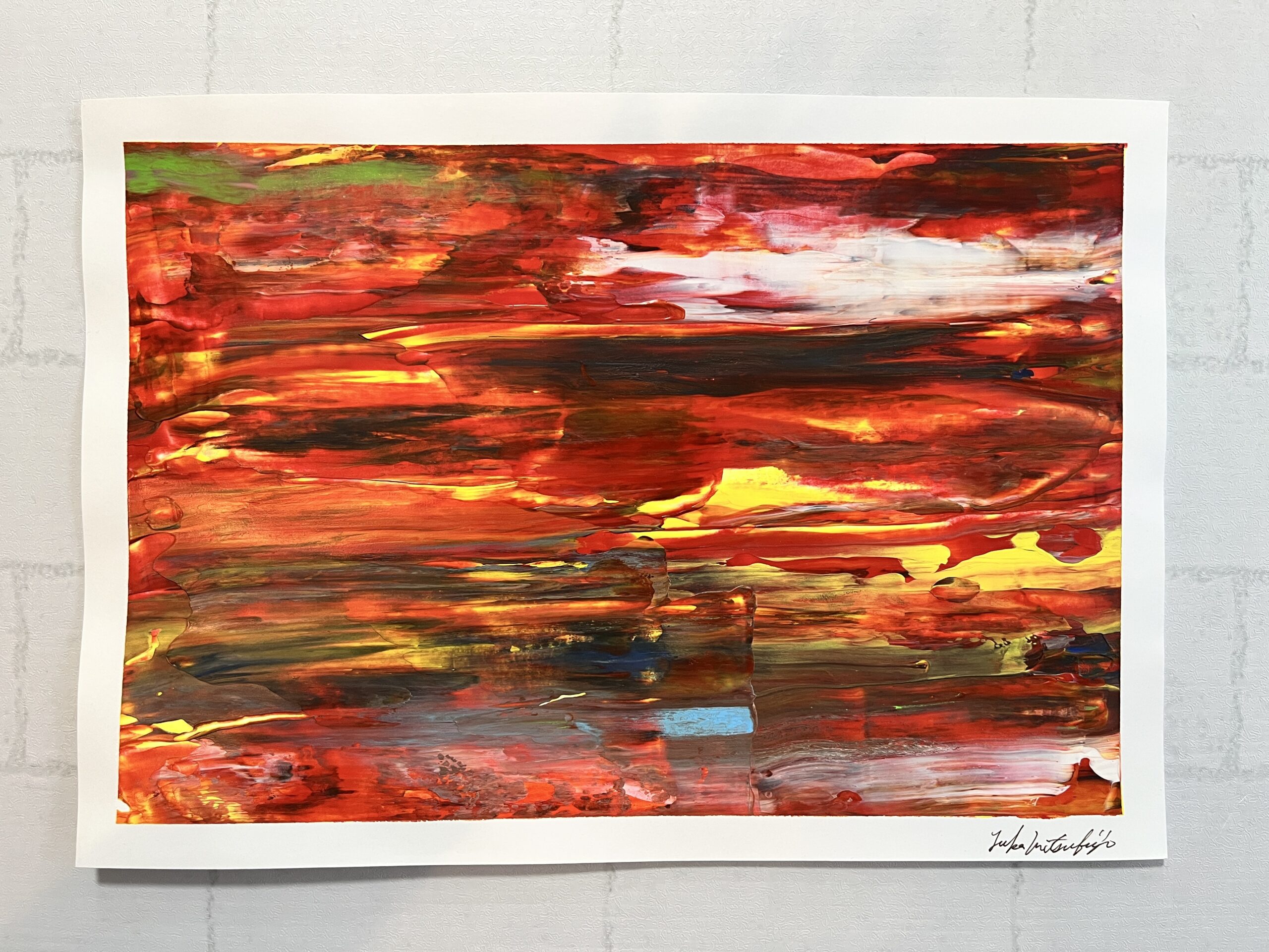 スライドの跡も存在感があり、インテリアに最適の抽象画です。