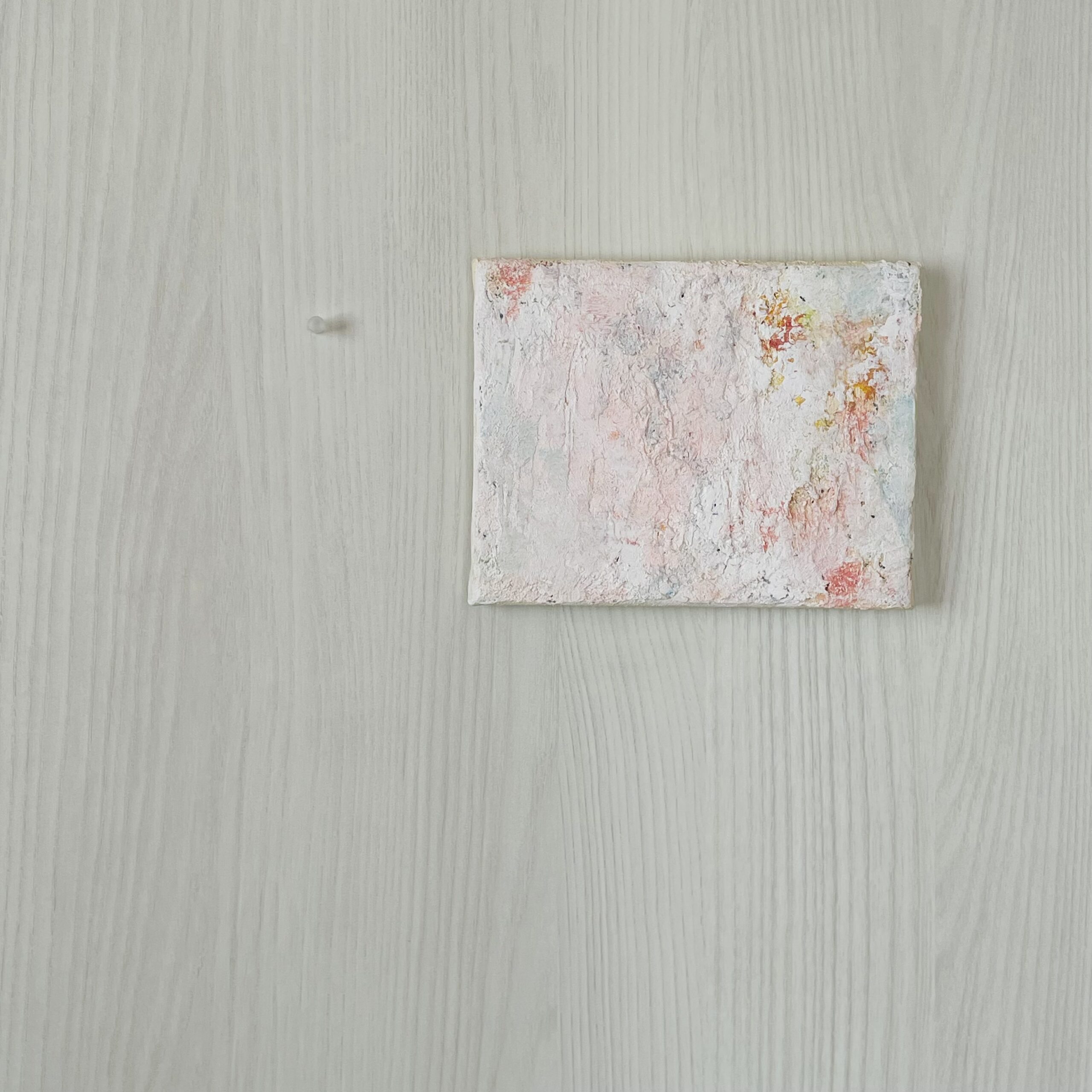 一度現れた色彩は完全に消えることなく、かすかに内側に残り、表面の凹凸とともに静かににじんでいます。