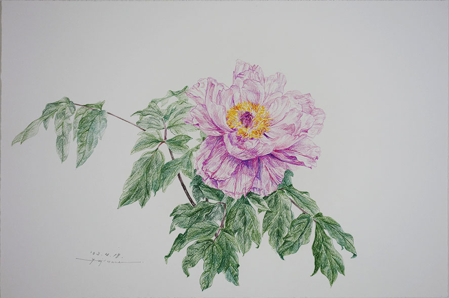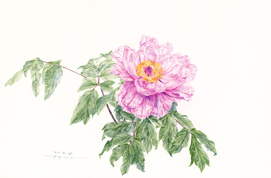 頂いたものを描画しました。牡丹が咲くころは何故か風が強いように思います。ですので、外で描かれる植物画家は大変だと思います。これは花瓶に生けたものを描いています。画像二枚目はスキャナーで取り込んだものです。