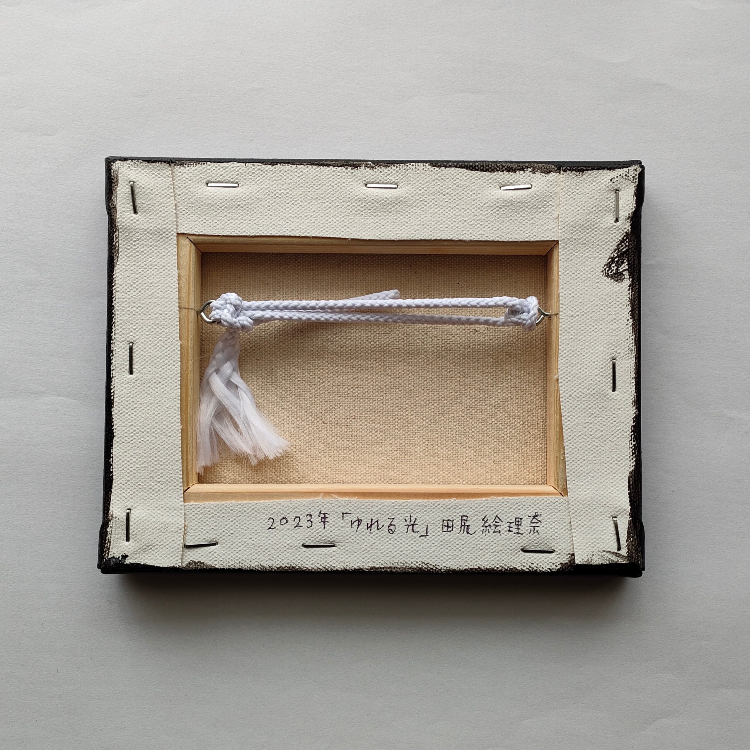 キャンバスや木製パネルの作品は裏面に吊り紐をお付けしております。