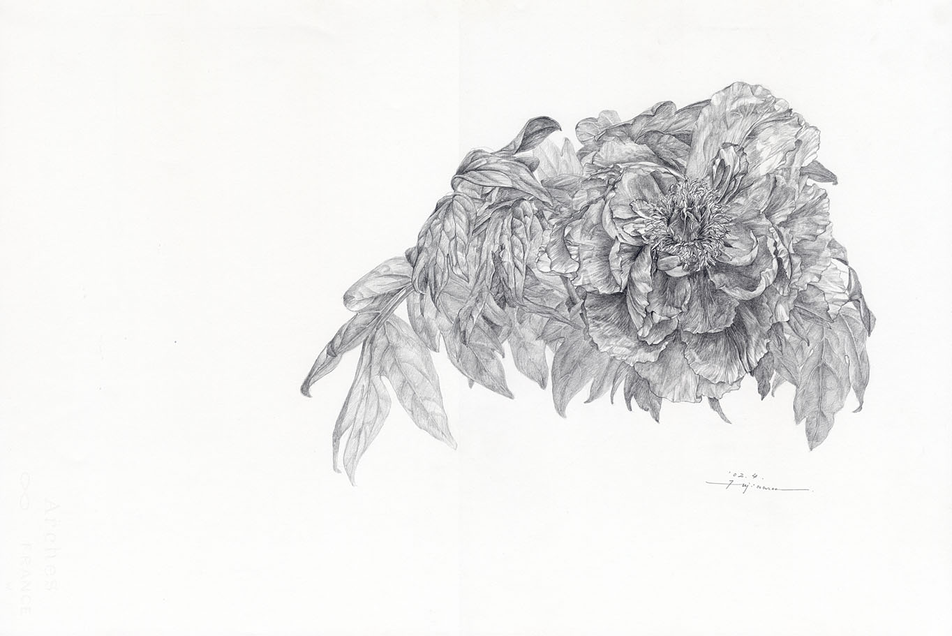 その後は、知人宅の玄関先で見たオダマキの花が美しく感じ、譲り受けて描いたことで花のスケッチにも惹かれました。