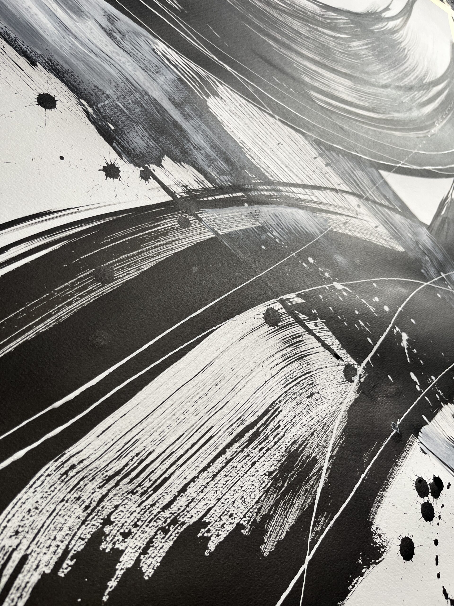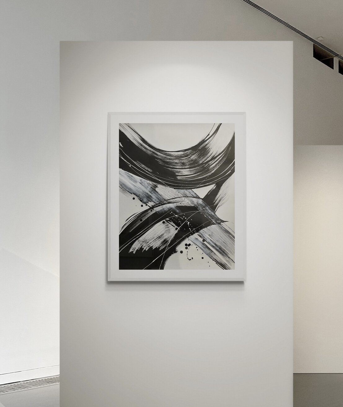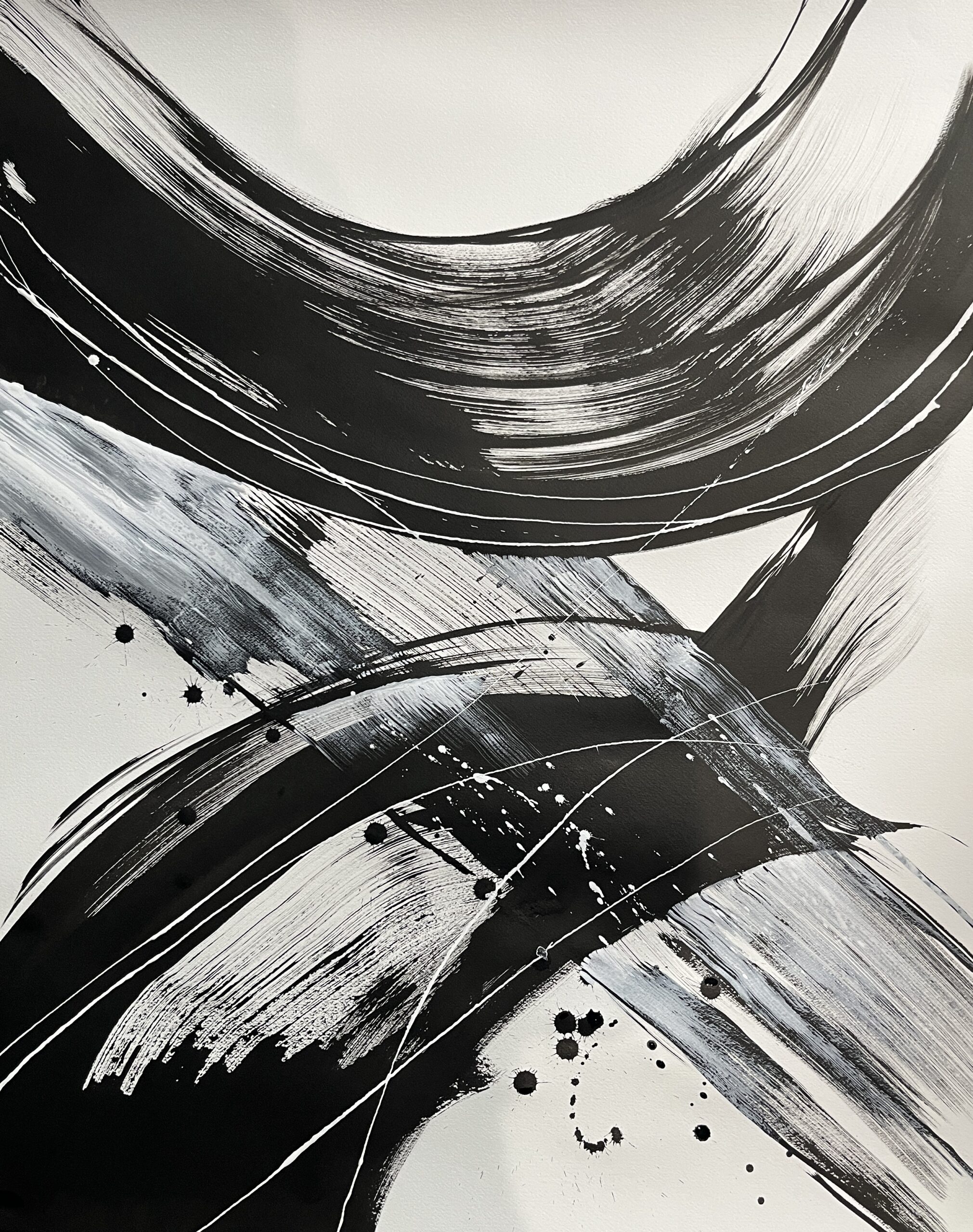 太く荒々しいストロークは「衝動」や「意志」、細い線や飛沫は「偶然」や「感情」を象徴。