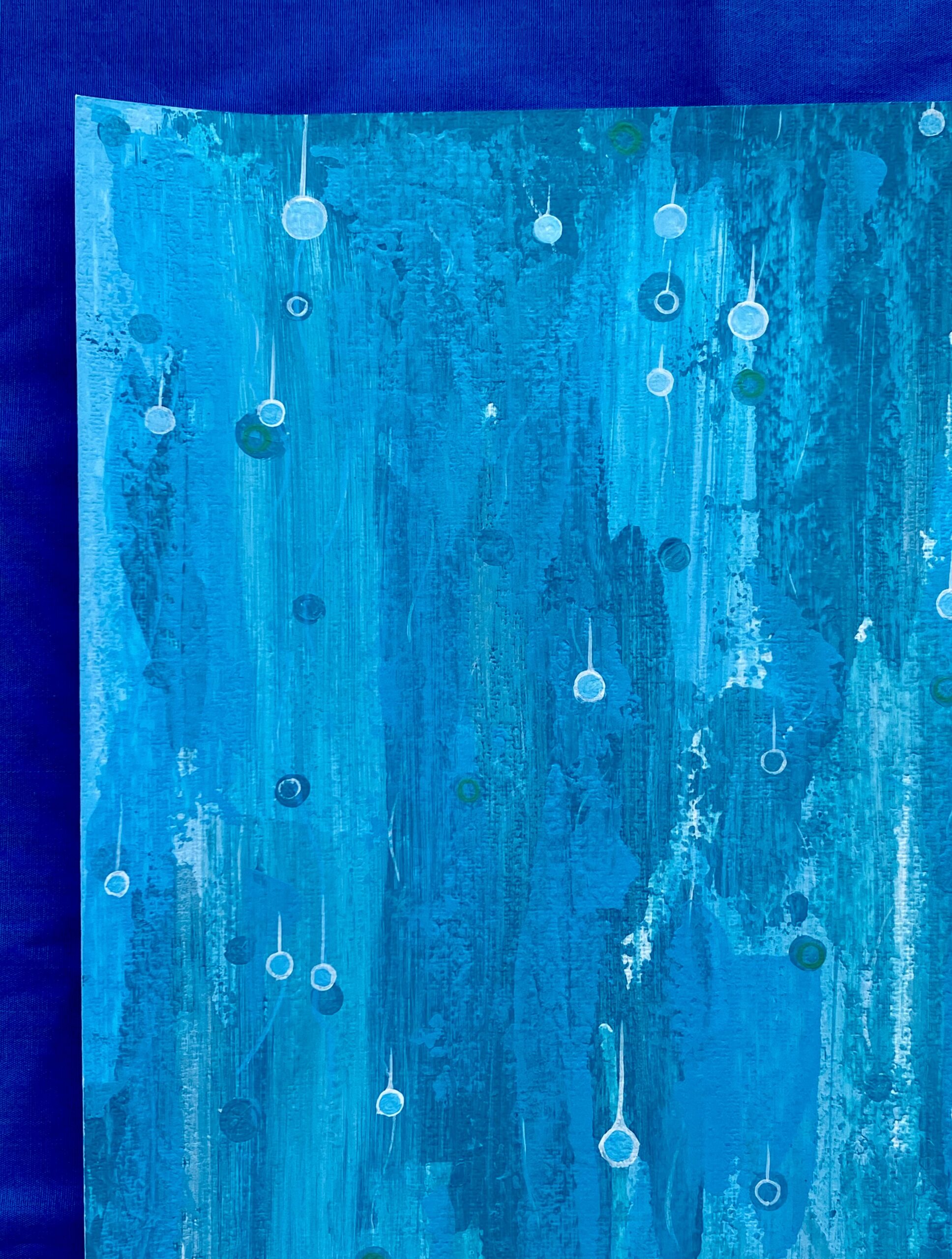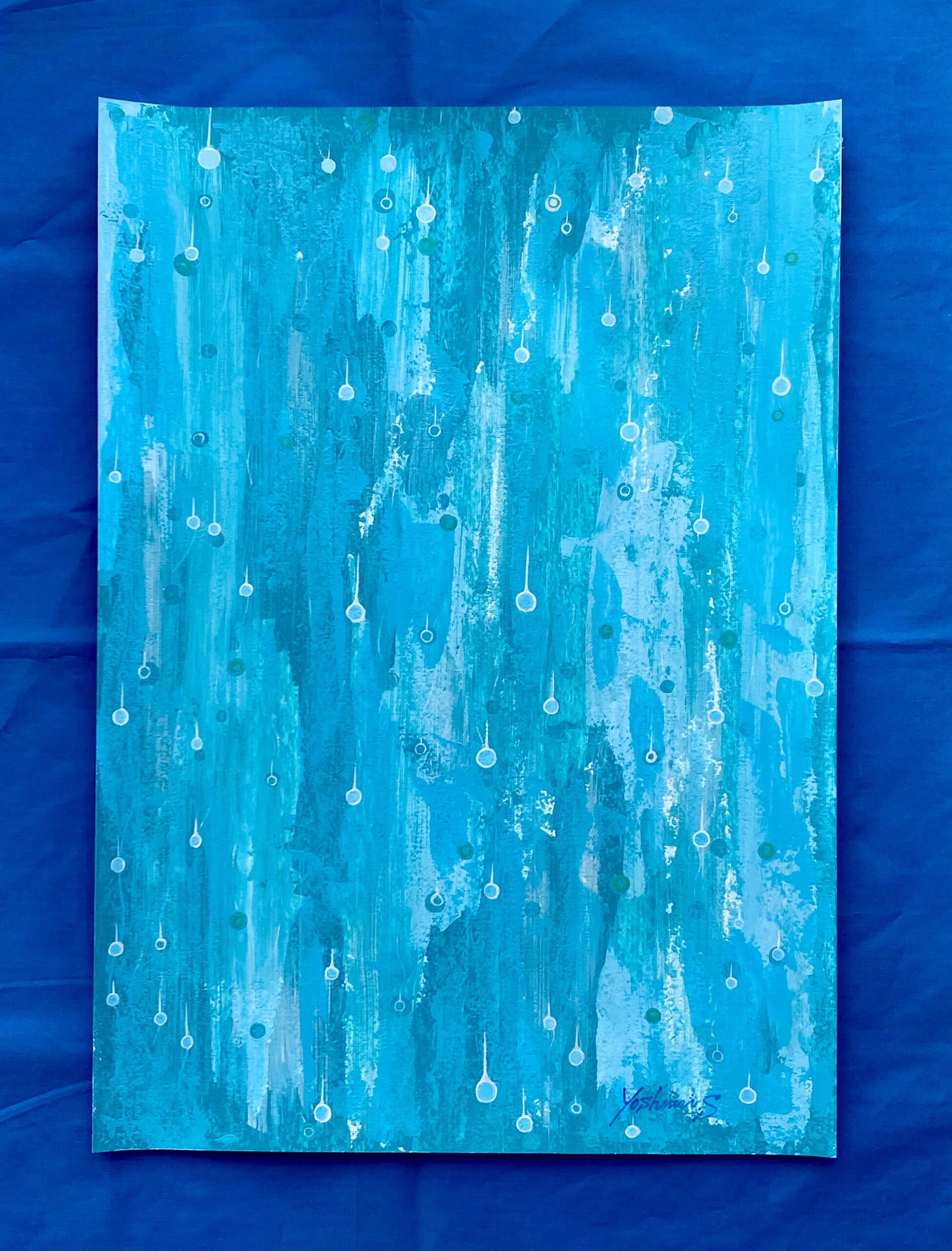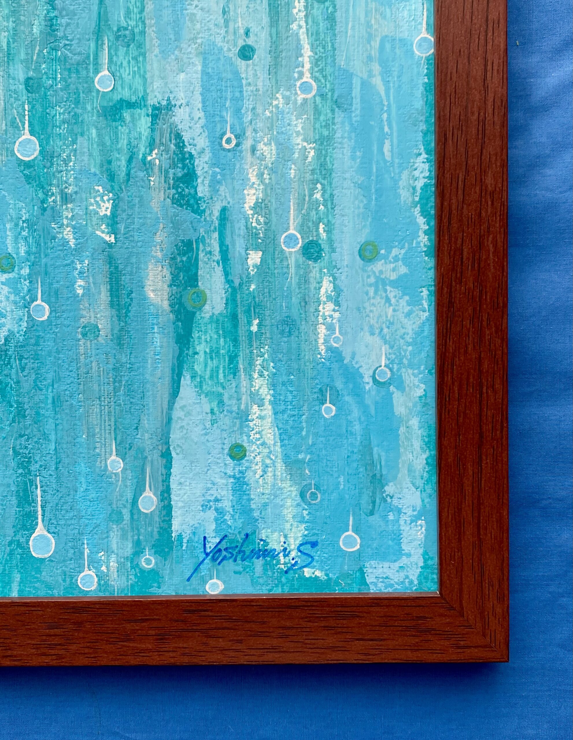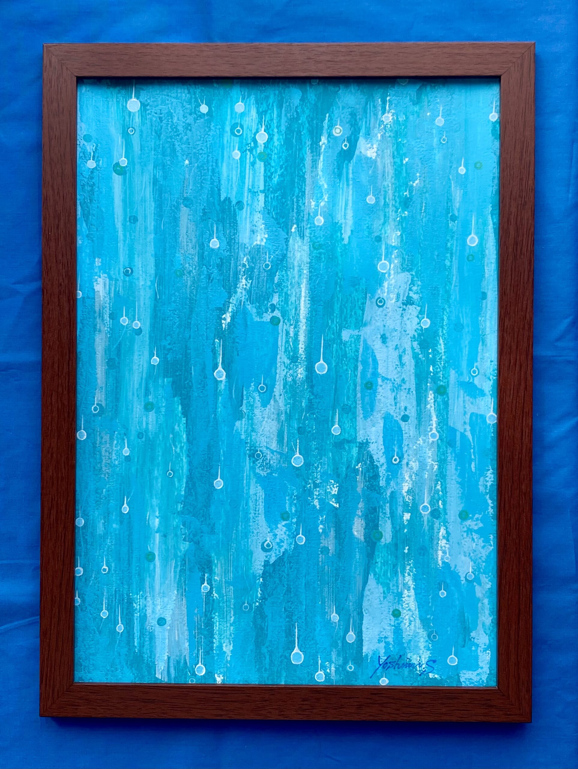 心地良い雨音を表現した作品。キャンバスペーパーに描いています。写真の額縁が付属致します。