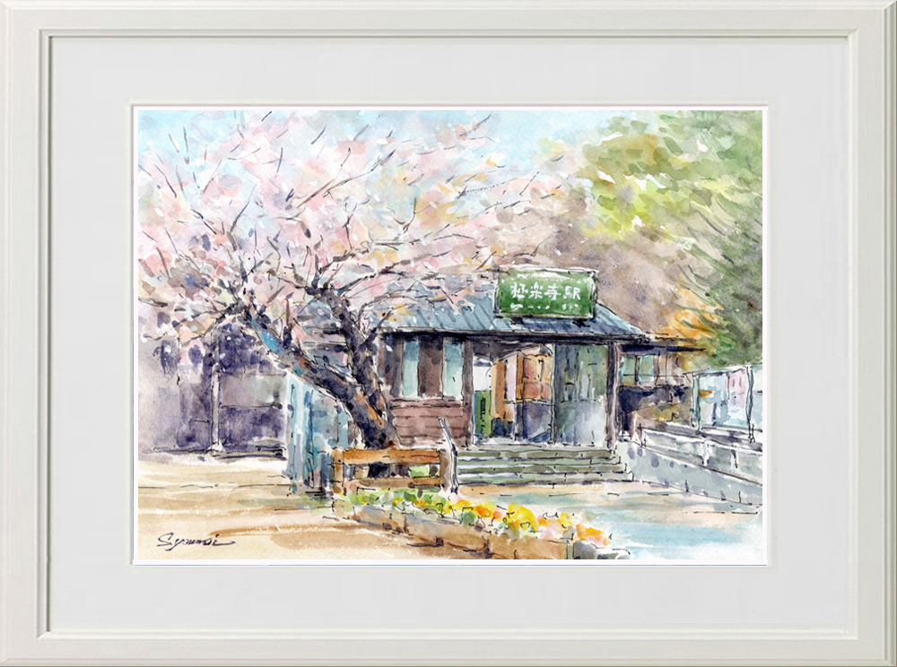 水彩画原画 極楽寺駅前の桜 #726