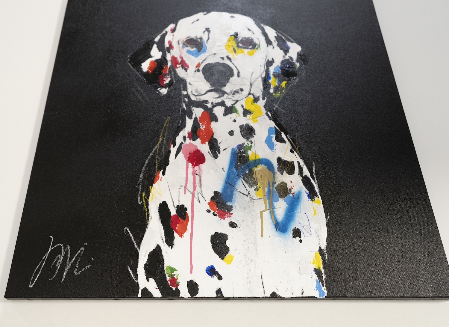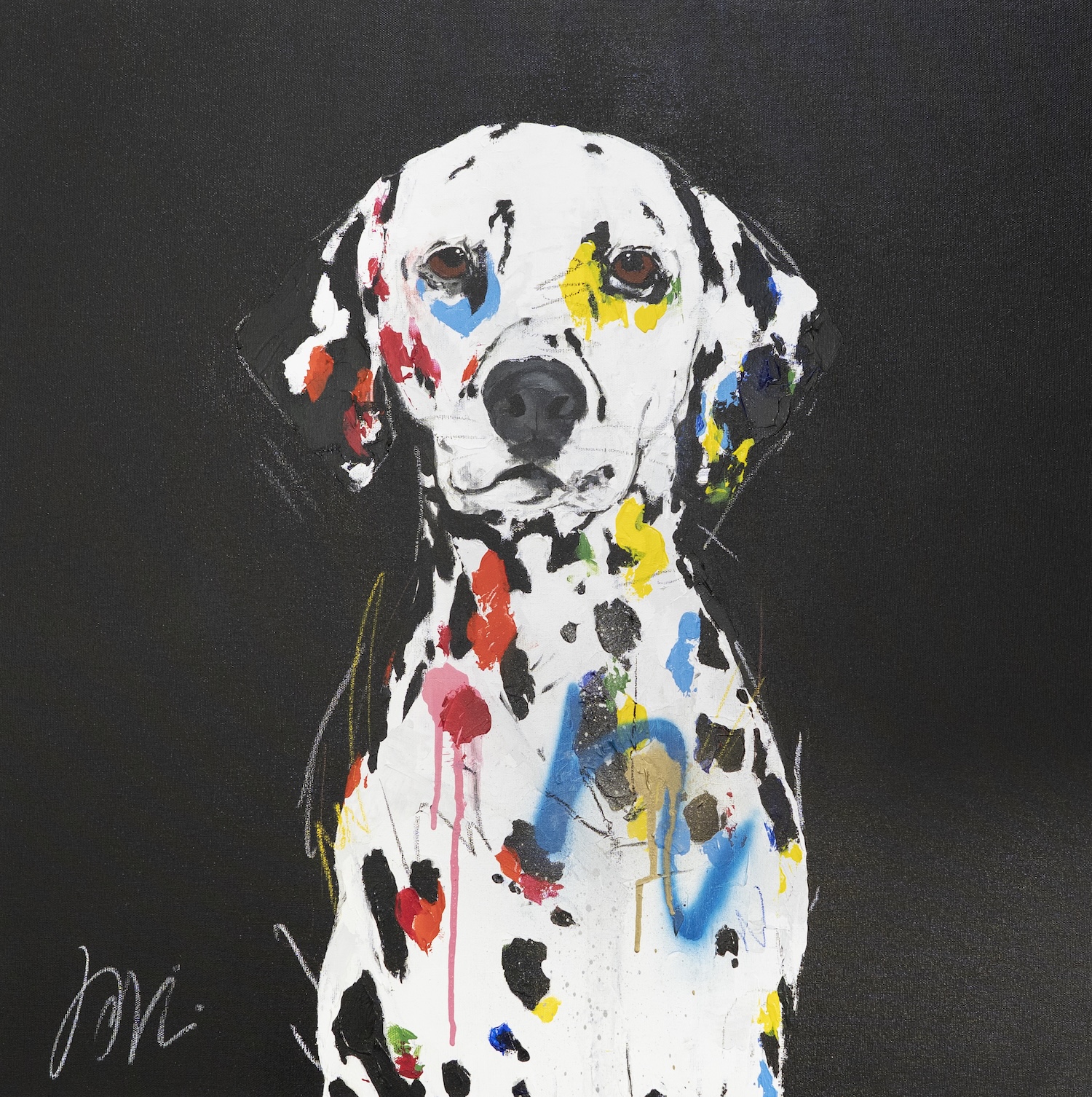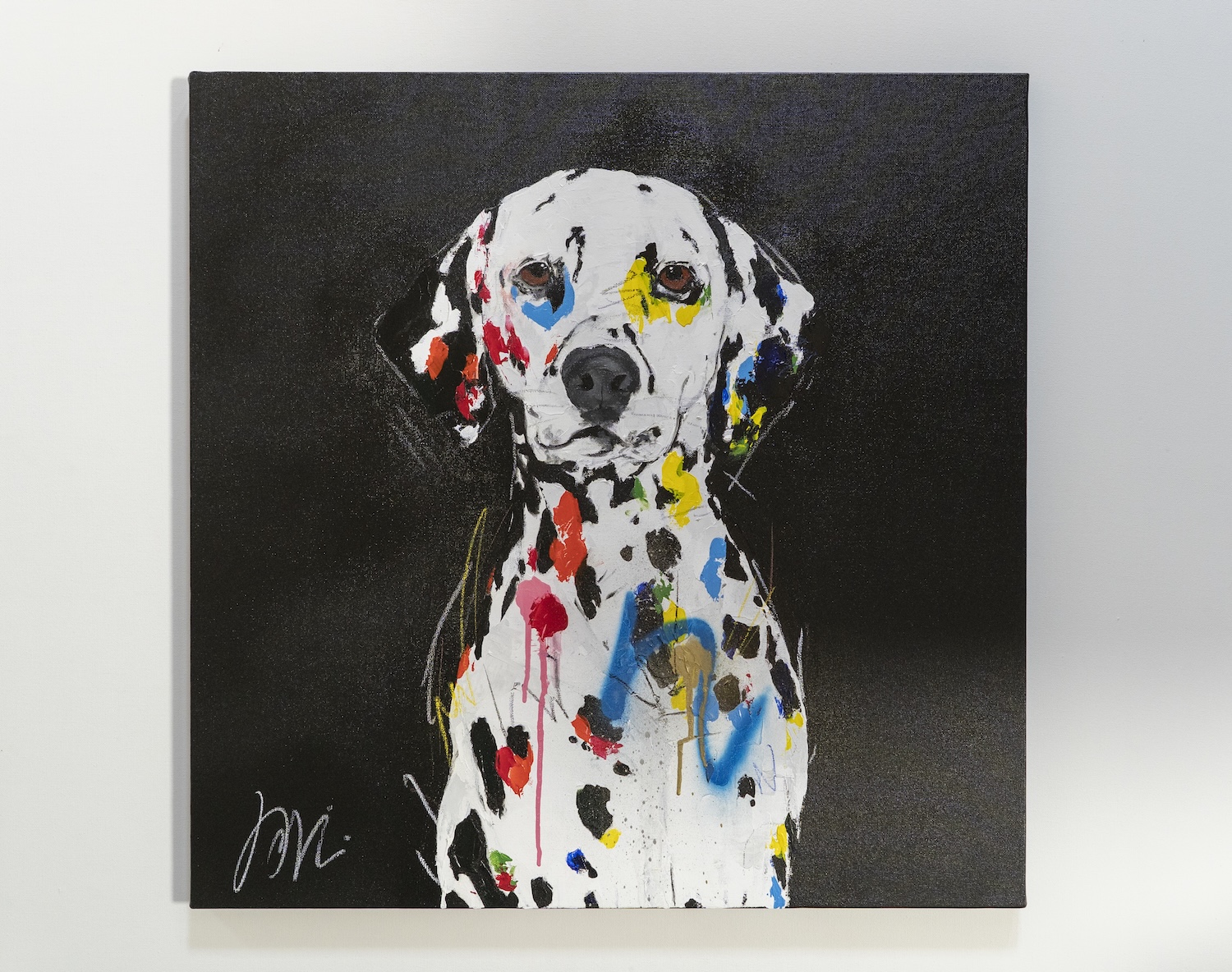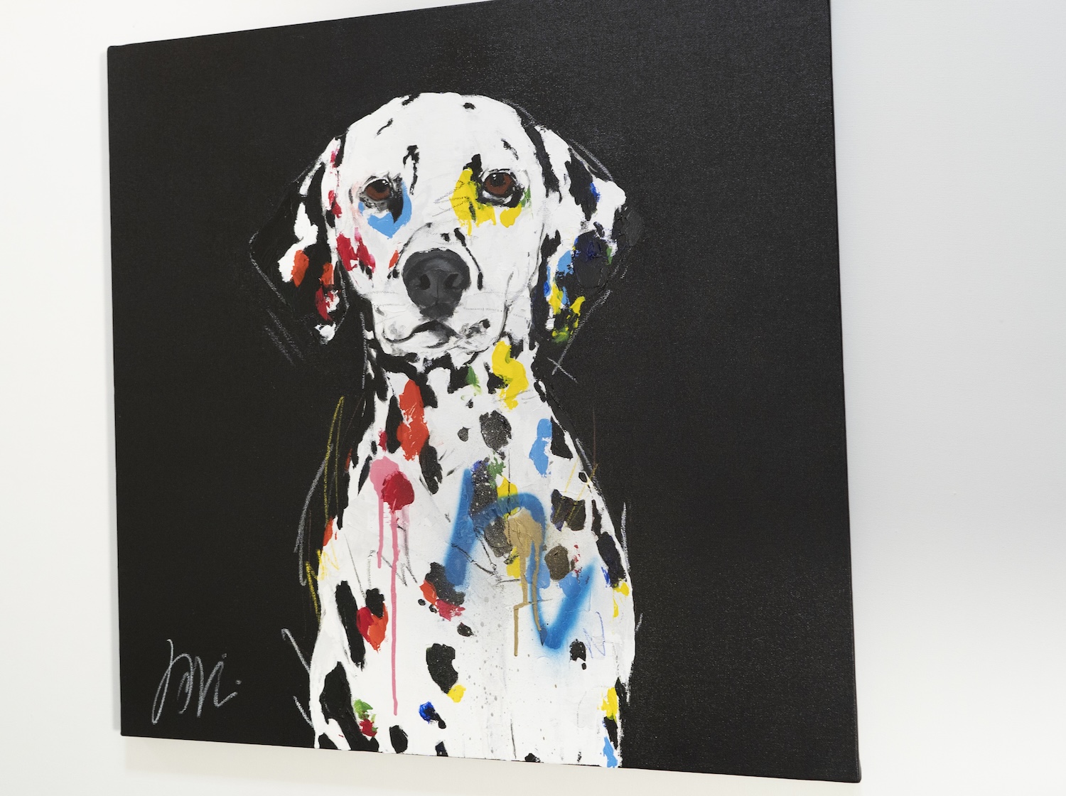 動物シリーズからダルメシアンのスプレーアート作品!本作は652mm正方形キャンバスにダルメシアンをポップに描いており、お洒落にスタイリッシュに飾って頂けます。