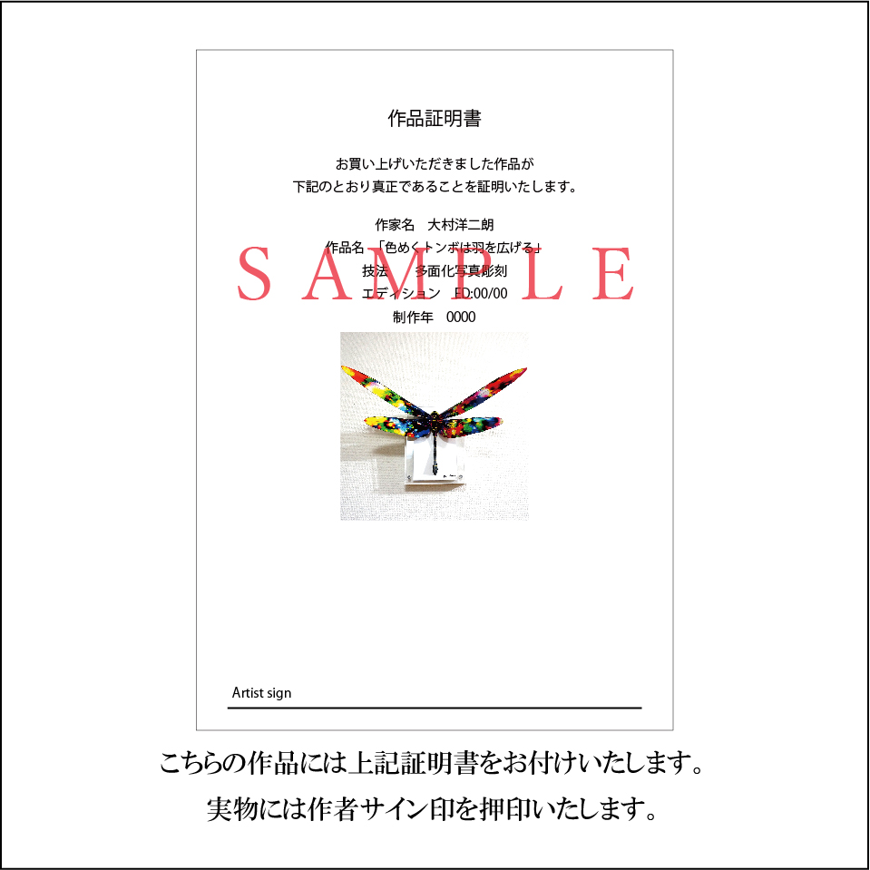 こちらの作品には作品証明書をお付けいたします。