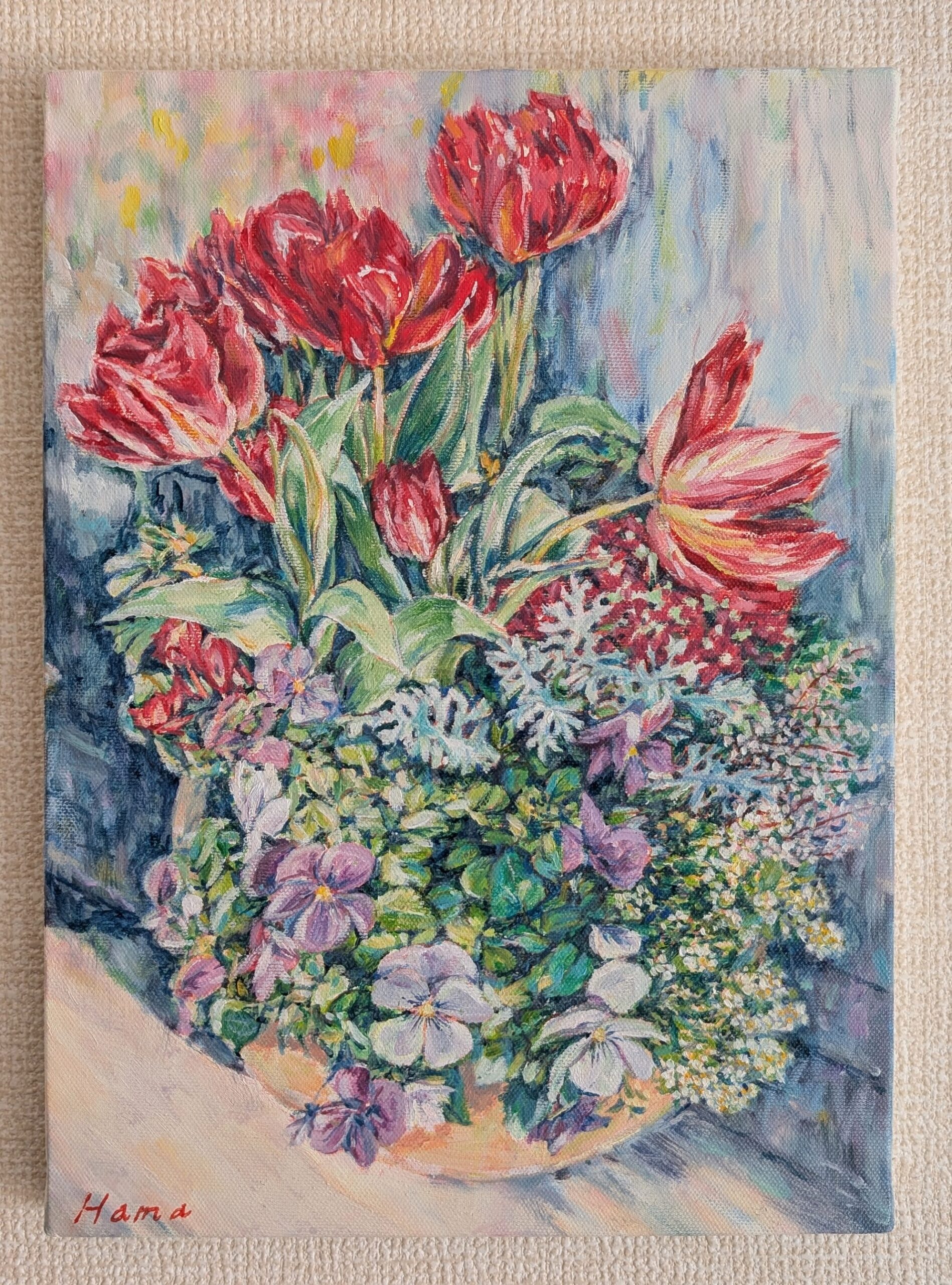 特に春の花たちの華やかさといったら、特別な輝きがあり、一斉に芽吹く生命の息吹を肌で感じます。そんな姿を描きました」