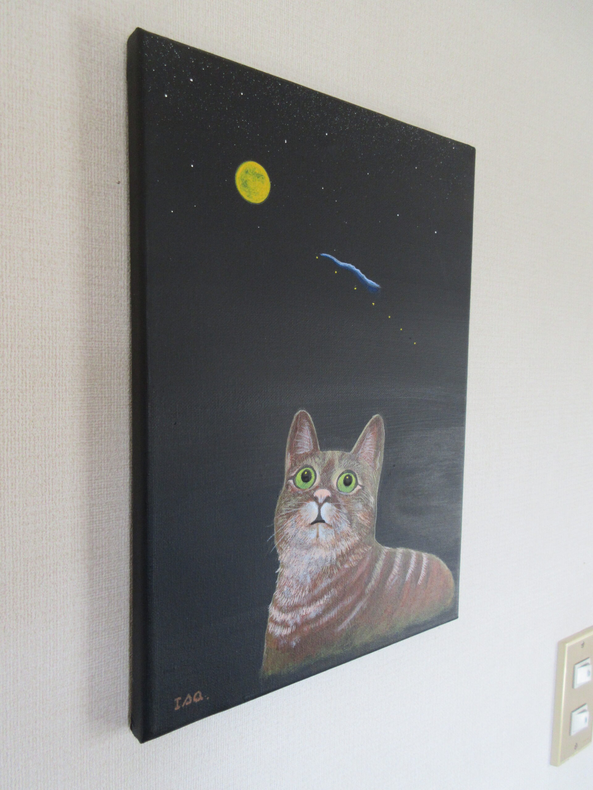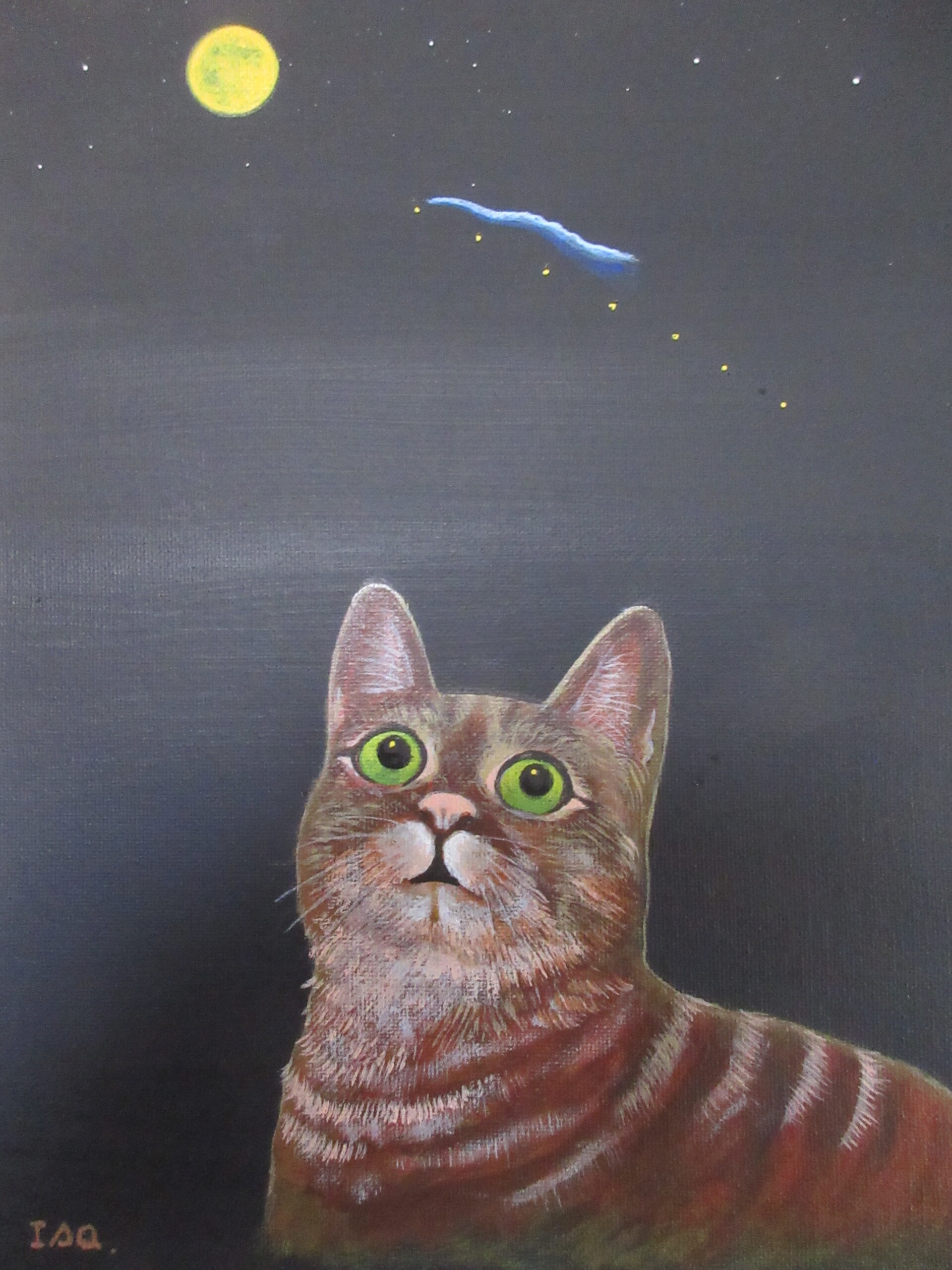 夜空を眺める猫の表情をポイントにしました。