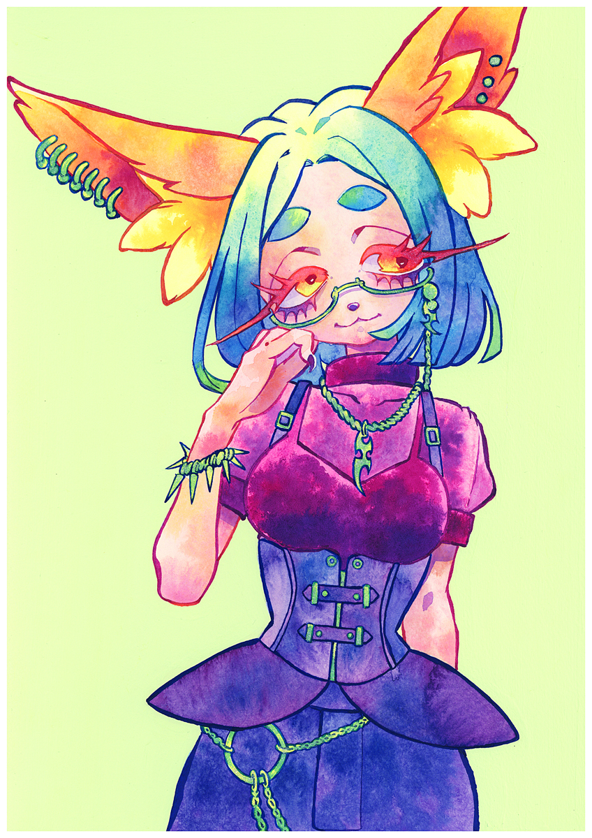 I draw girls who express their likes freely using various art materials.