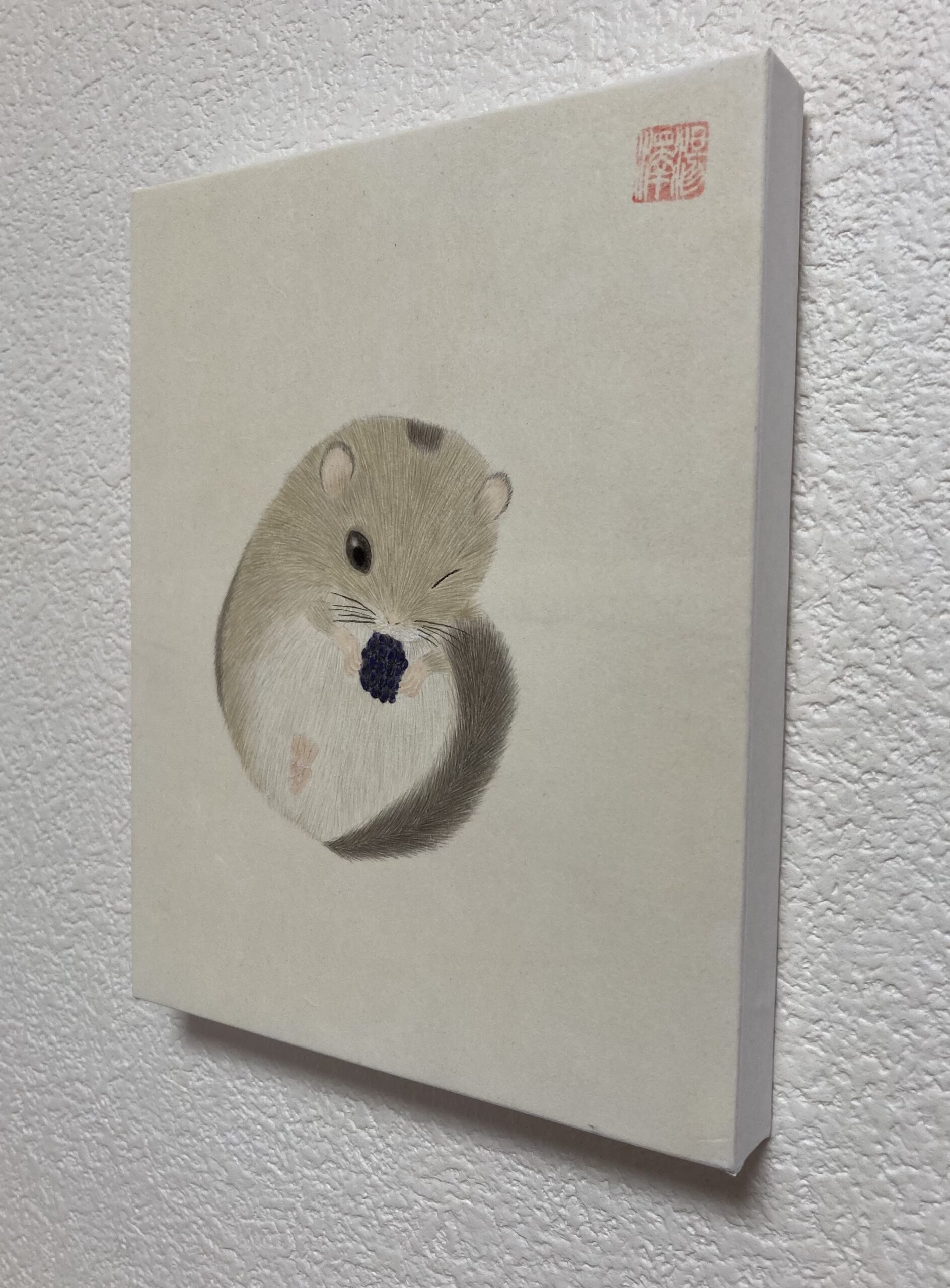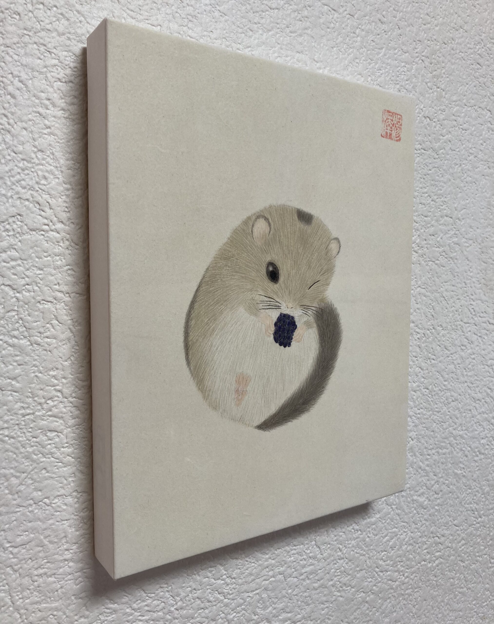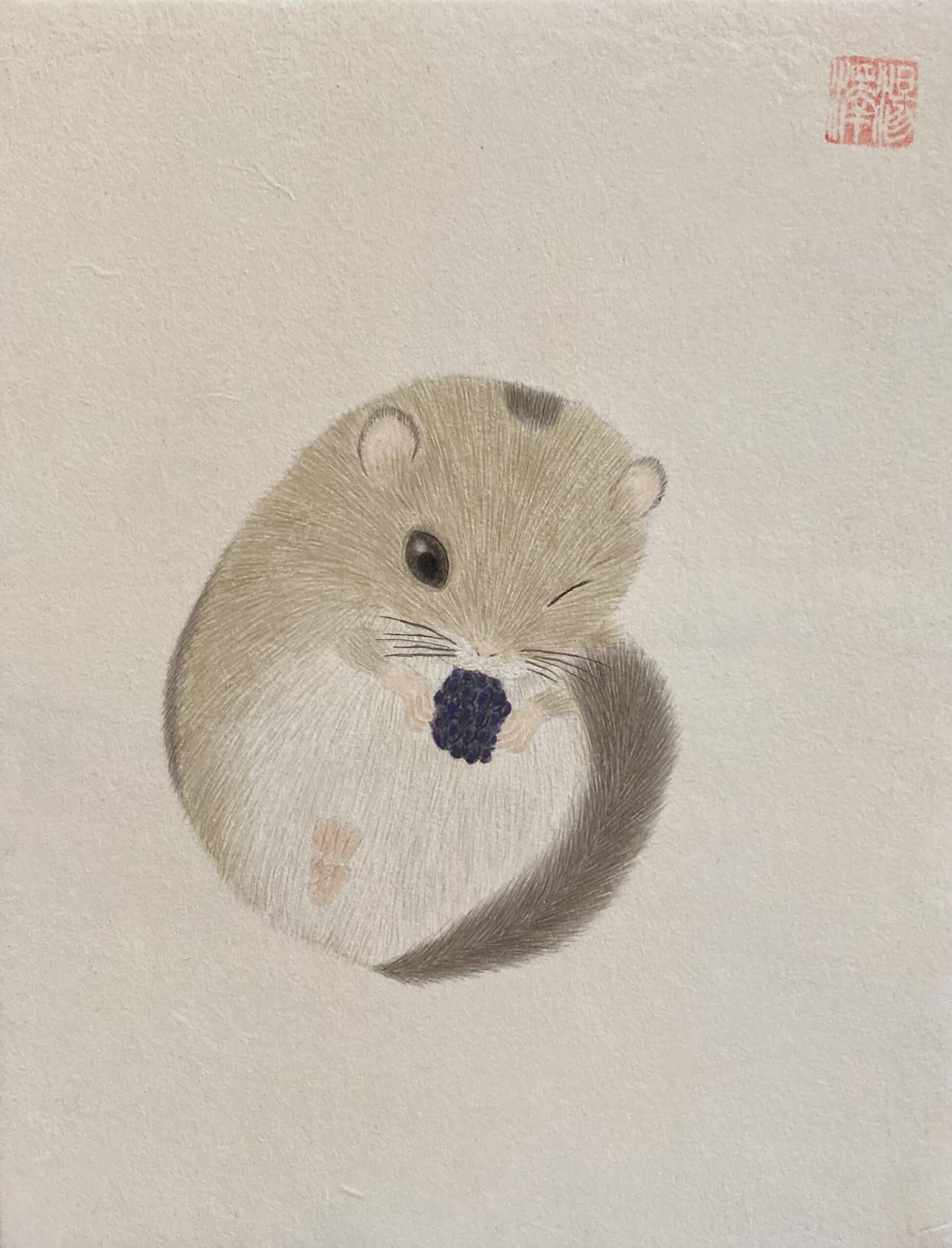 木苺を頬張るヤマネを描きました。毛並みの柔らかさ、丸っとした可愛さを感じて頂ければ嬉しいです。