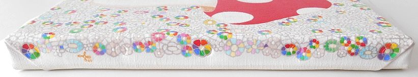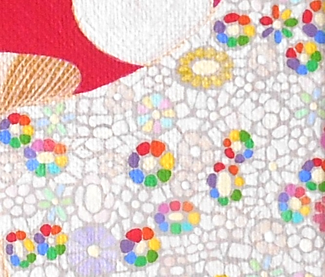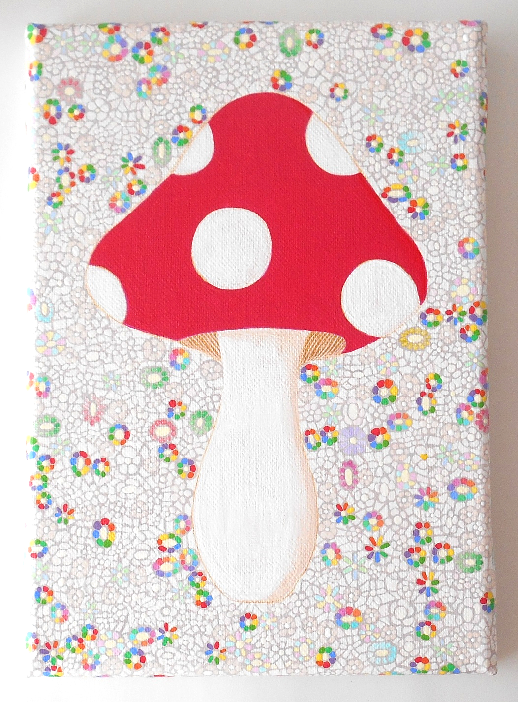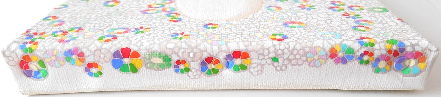 麻キャンバスにアクリル絵の具、保護ニスを塗っています。