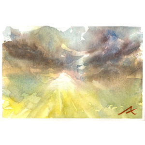 濃霧のなか歩いていた際に感じた、不安と期待が入り混じった感覚を絵に込めたいと思い制作しました。
