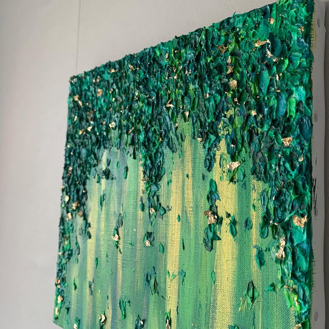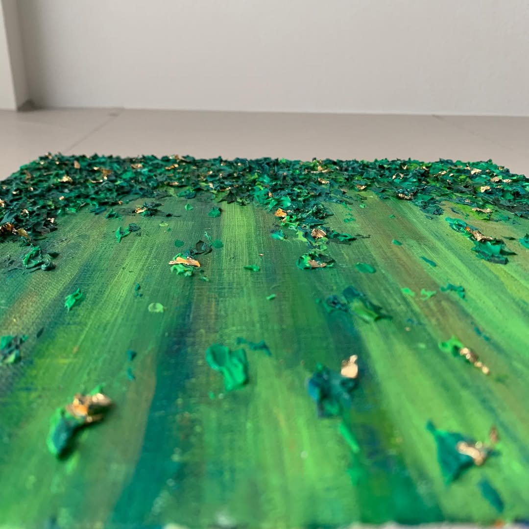生い茂った葉の間から光が差し込み、揺らめく情景を描きました。