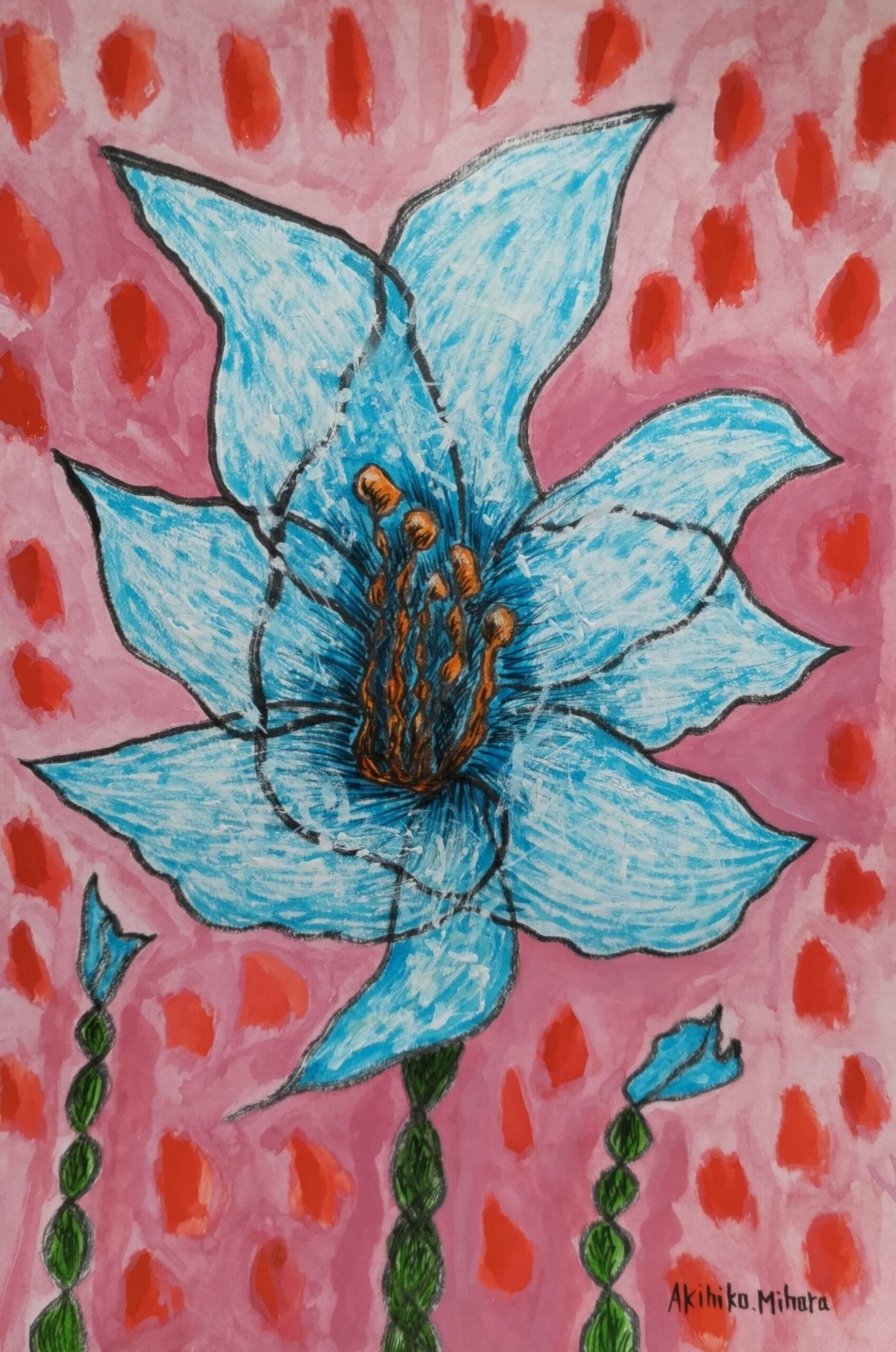 鉛筆、色鉛筆、ペン、筆ペン、ポスターカラー(水彩絵の具)で描きました。