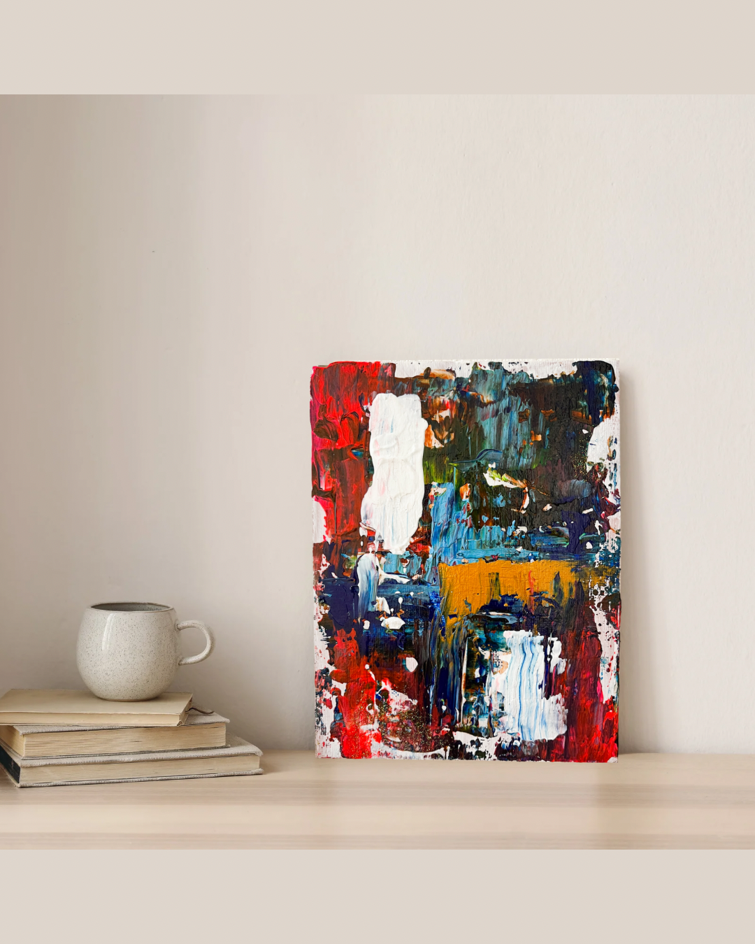 絵の具を重ねてスクレイピングした結果出来上がった色彩です。