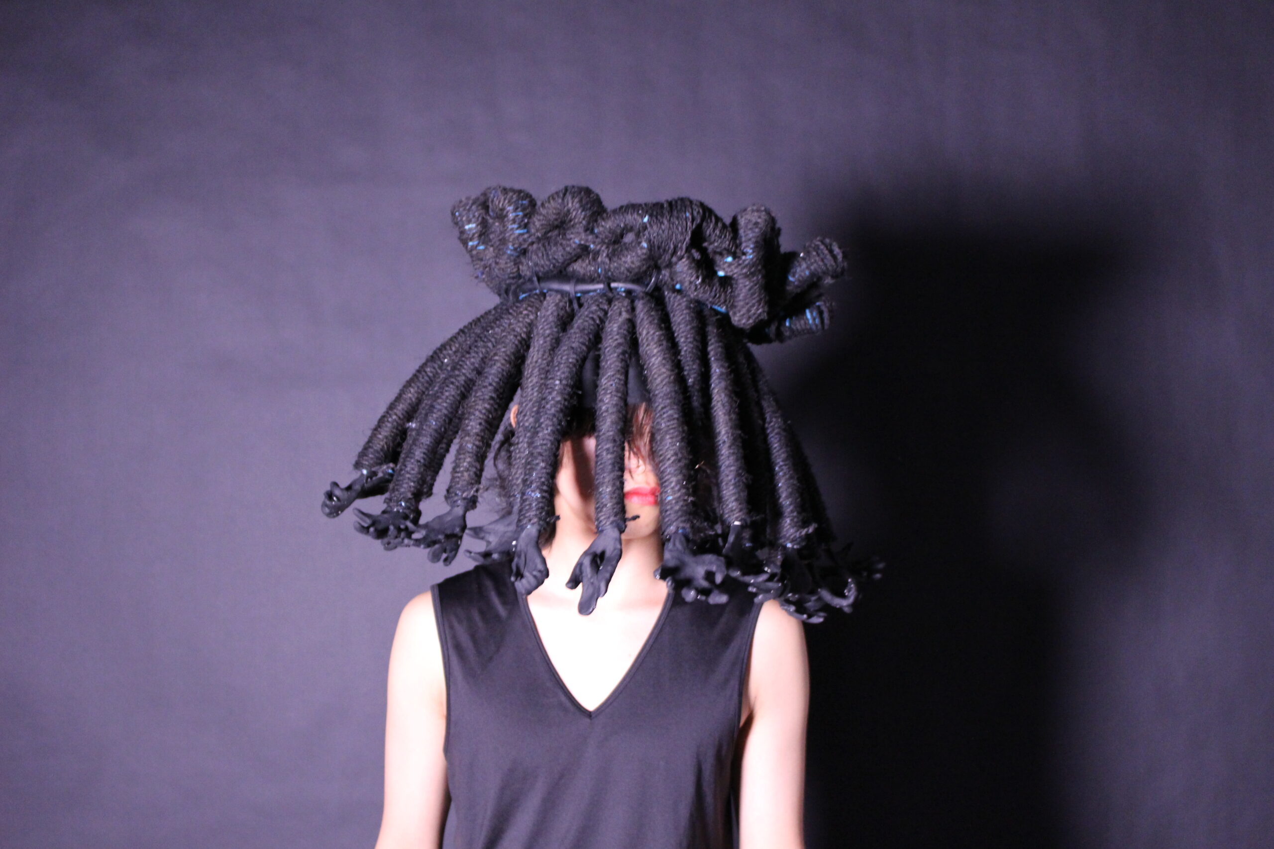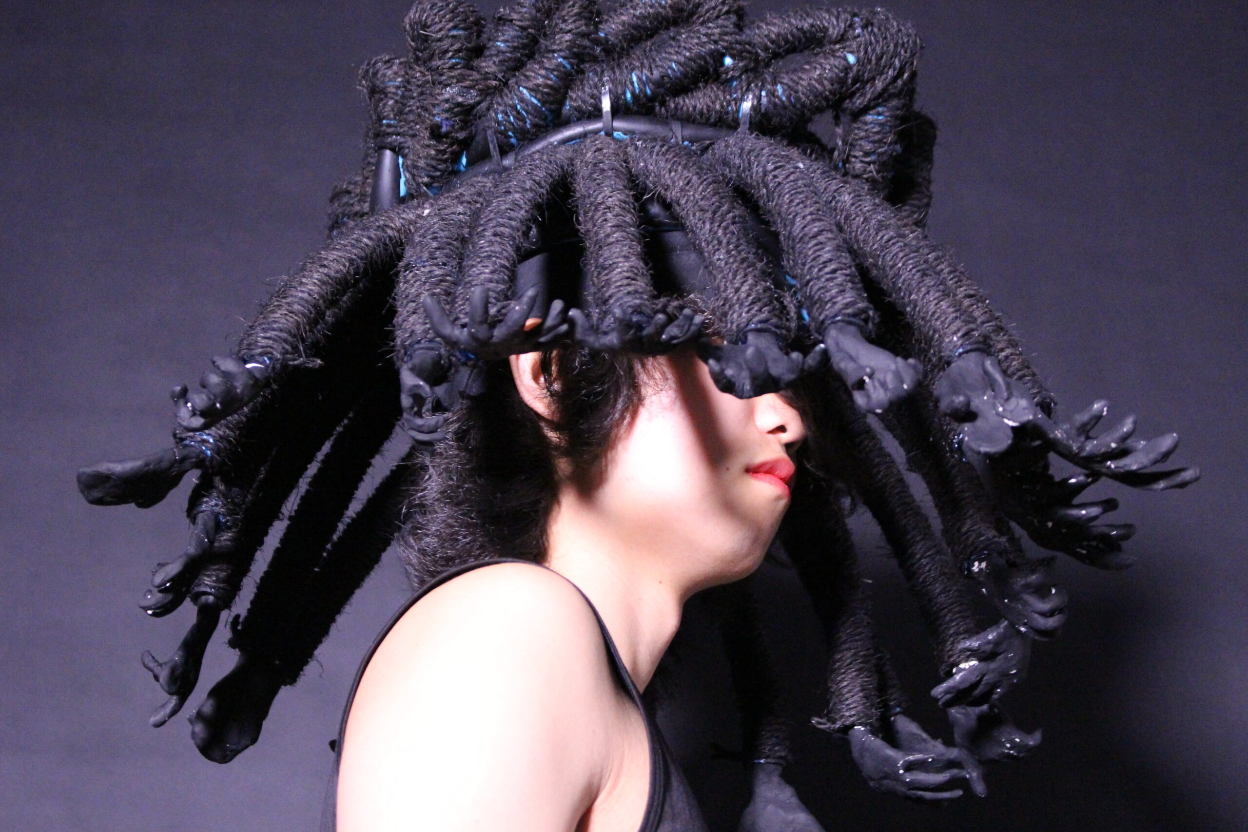 千手観音の千手を頭に持ってくることで新しい観音様の姿を表現できるのではないかと考え制作しました。全体が黒なのは、悟りを開く以前の姿のためです。六百頭手と名付けたのは一本の手で25人救済することができるという考えのもと全体に24本の手があるからです。
