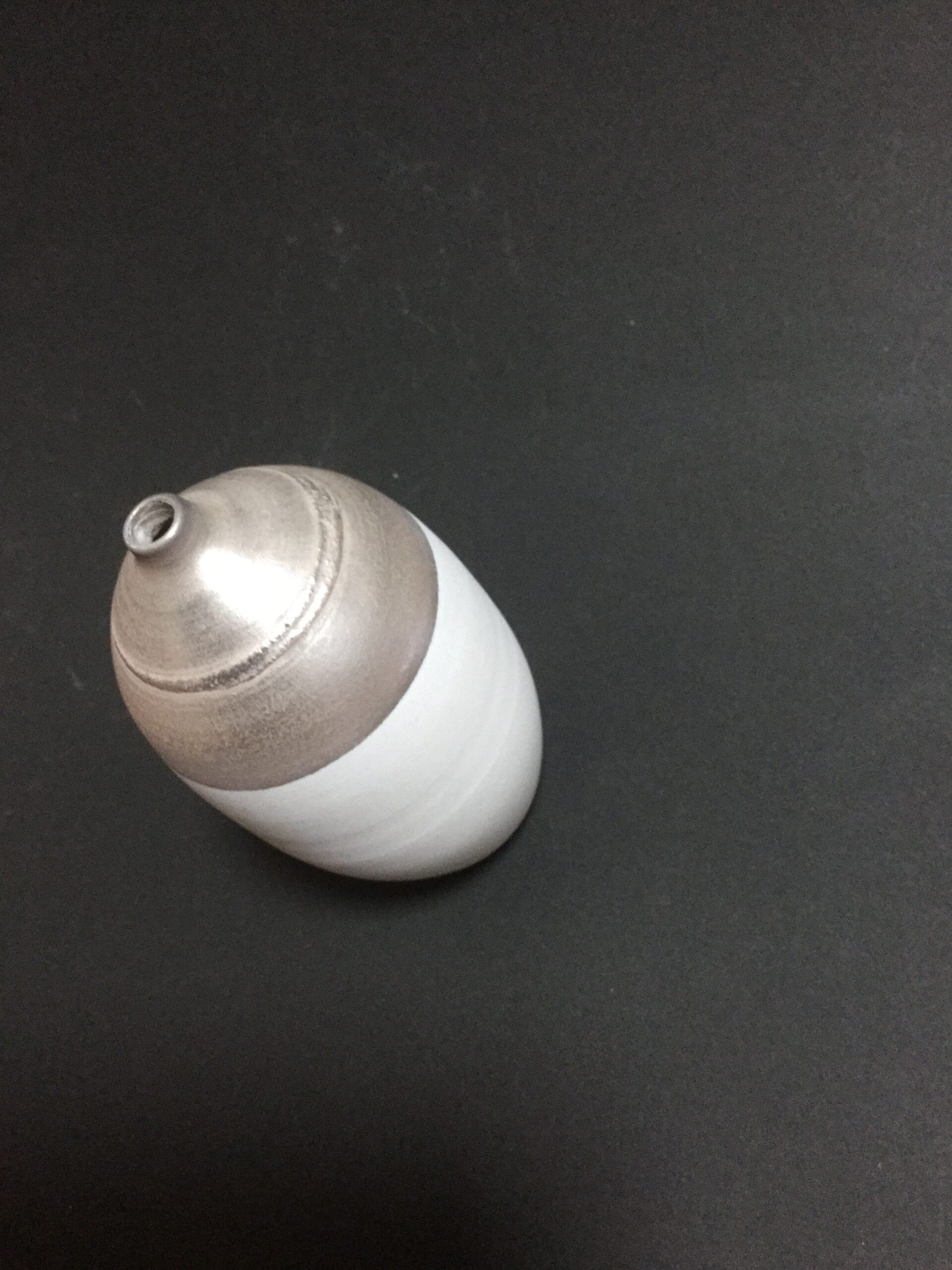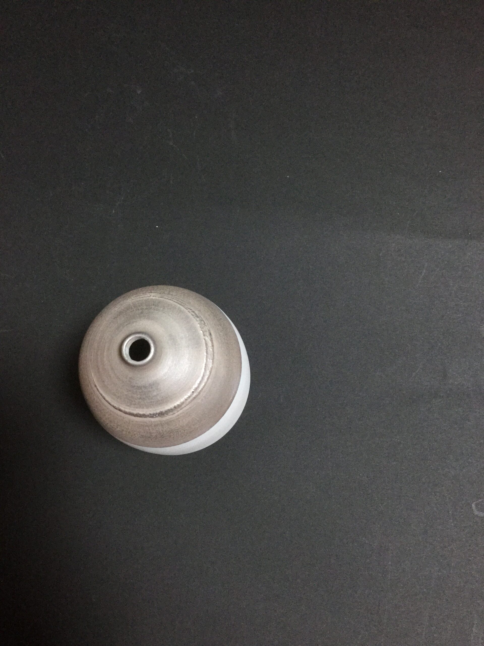 銀彩の施された一輪挿しです。 上から見ると三日月の形が浮かんでいます。 銀彩ですので、日にちが経つごとに 様子が変わっていきます。 ※元の姿に戻す際はシルバー磨き等で戻ります。