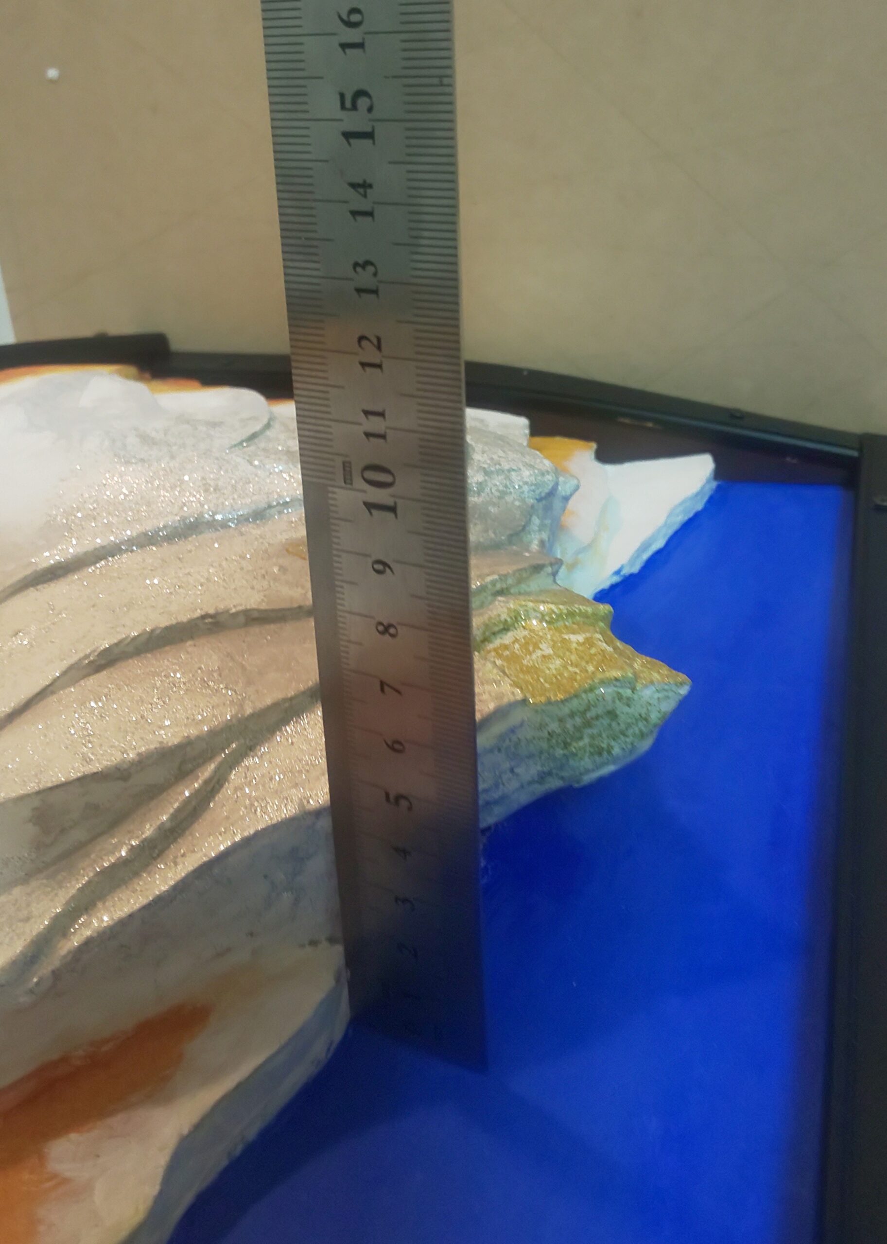 耐久性に優れた樹脂粘土を材料に整形研磨し、硬化と光沢の表面加工剤等で装飾した、未来3D粘土アートの立体絵画。