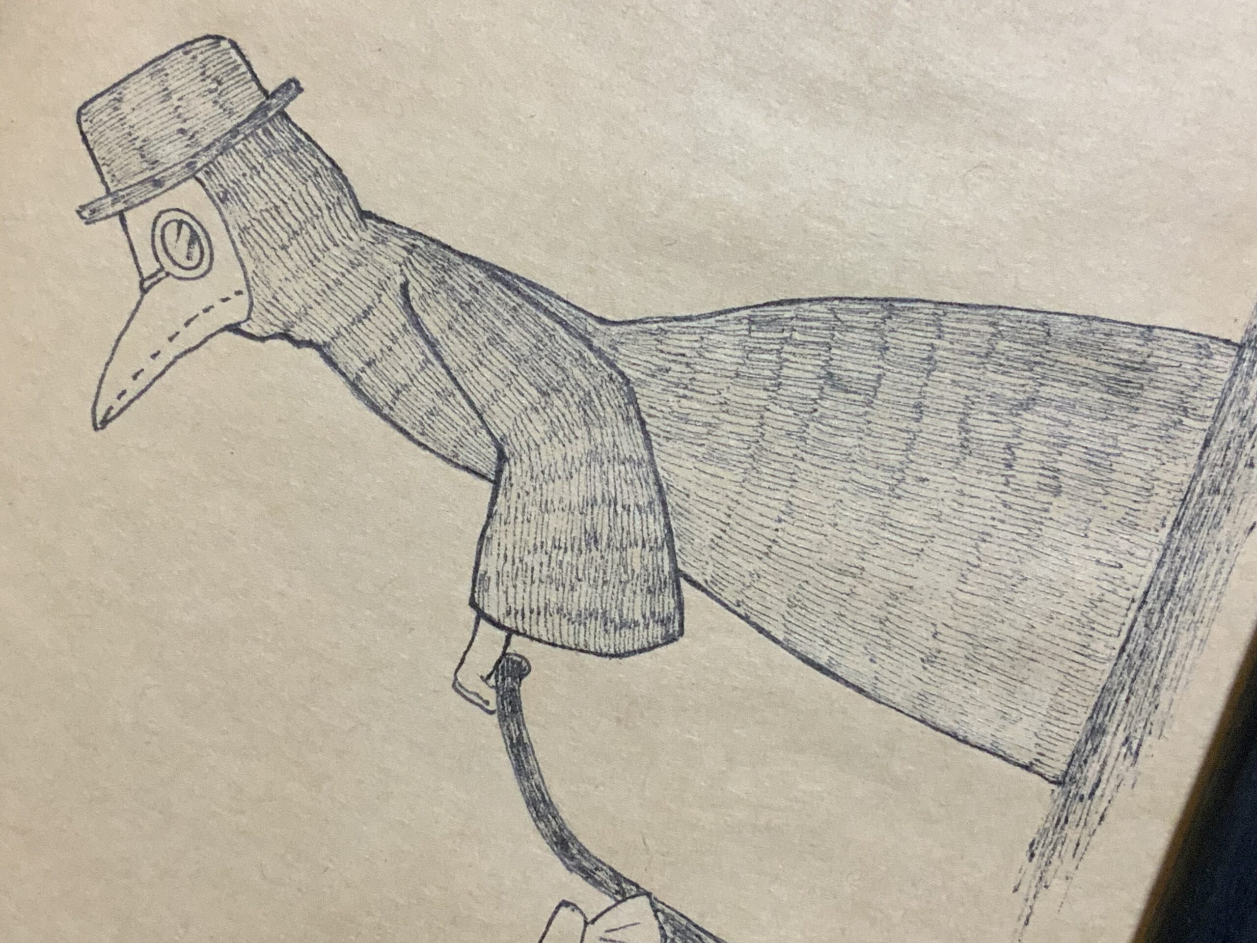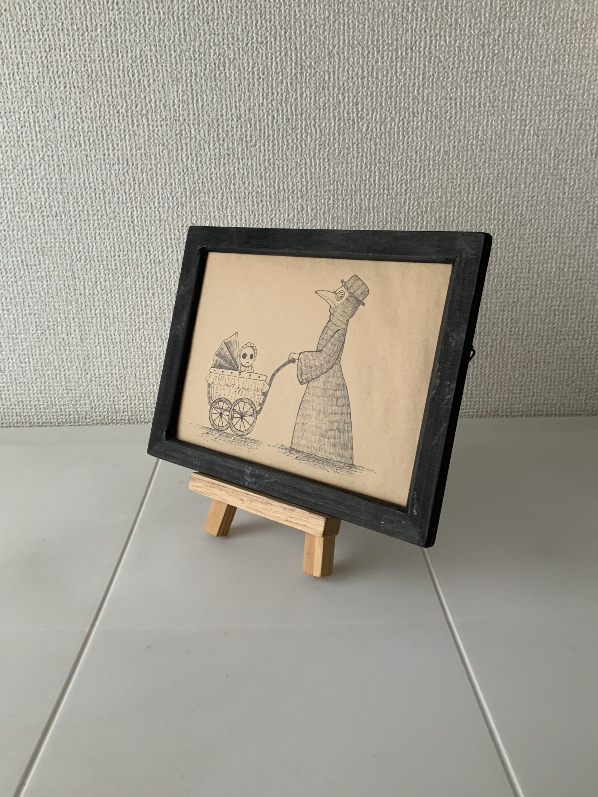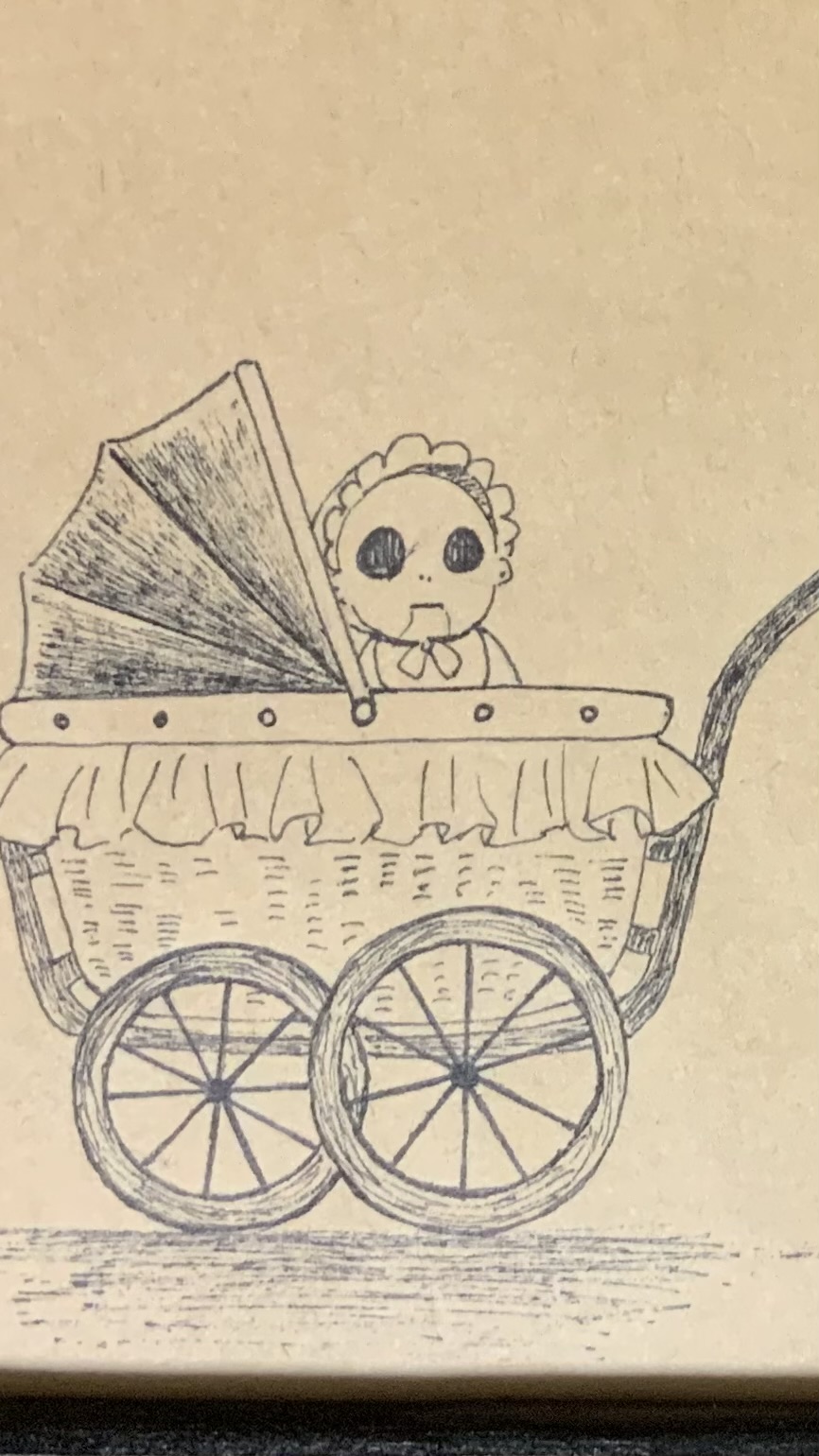 【ペストマスクの乳母車】モノクロ・ゴシックペン画