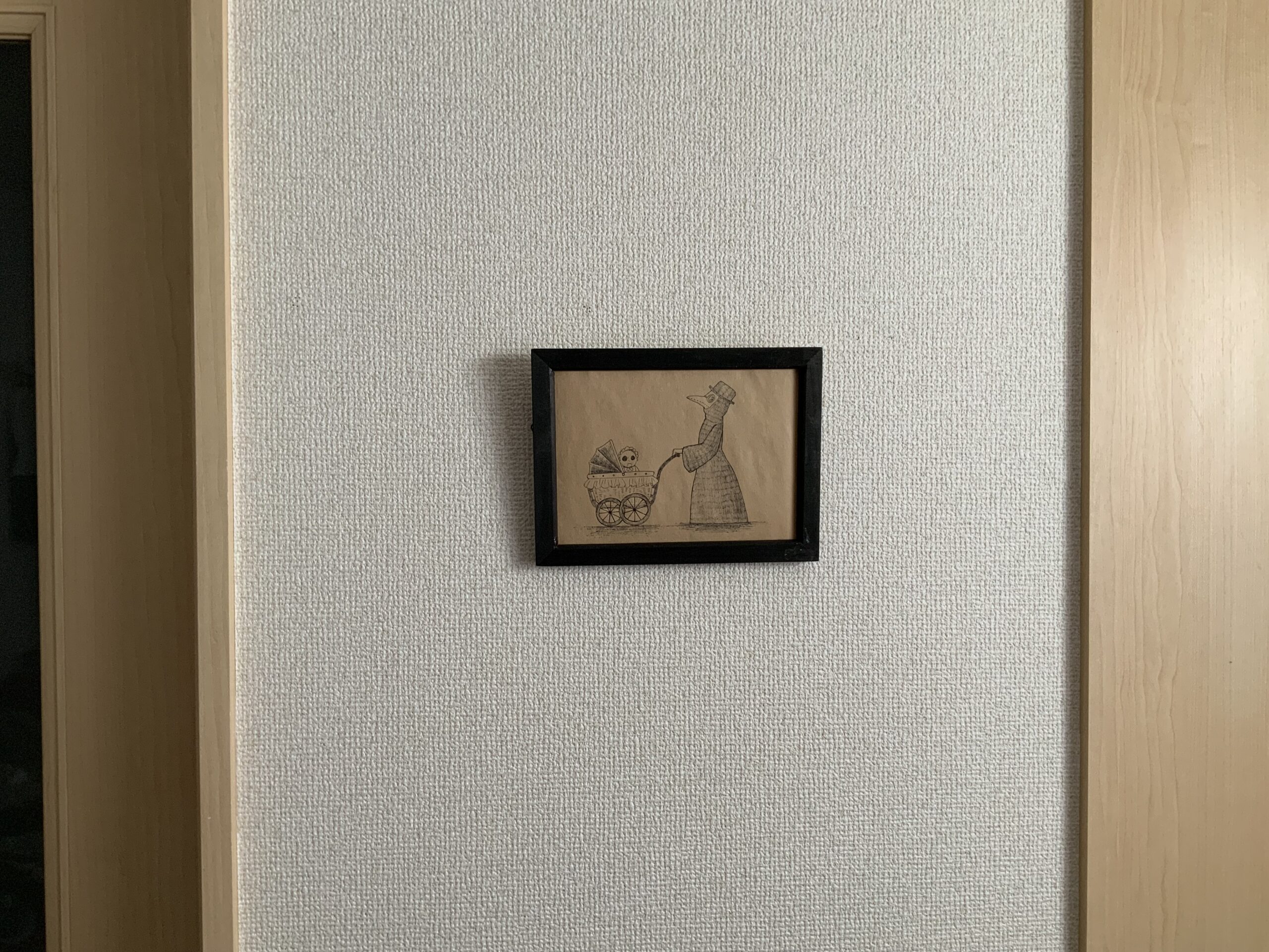壁にかけることで、日常の中にひとつ「異物」を紛れ込ませるような作品です。