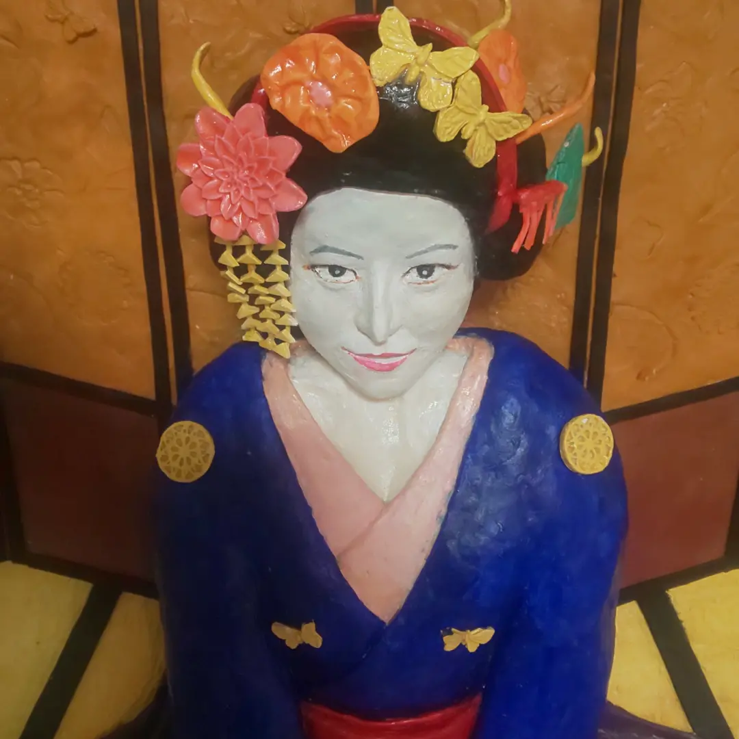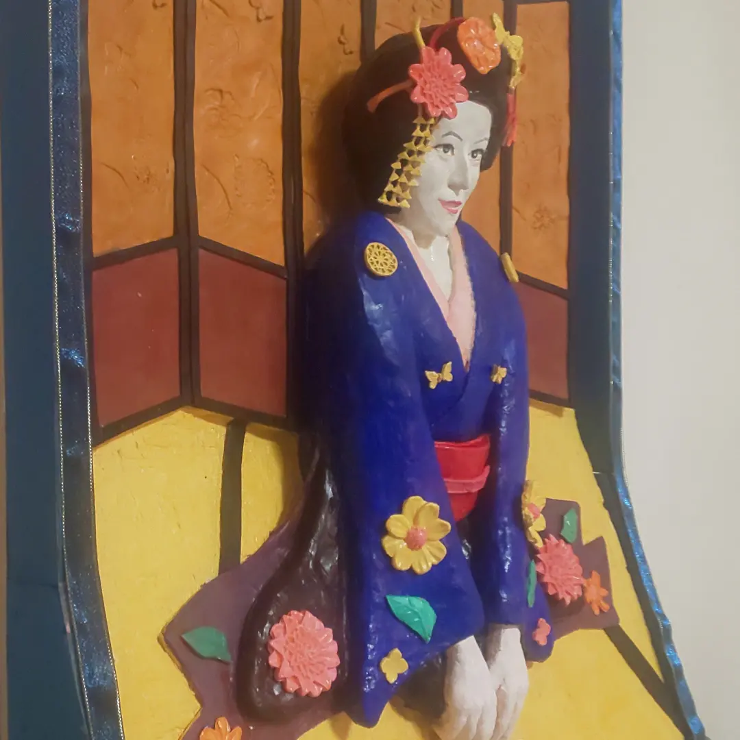 作品は「お越しやす」と頭を垂れる舞子の立体絵画です。