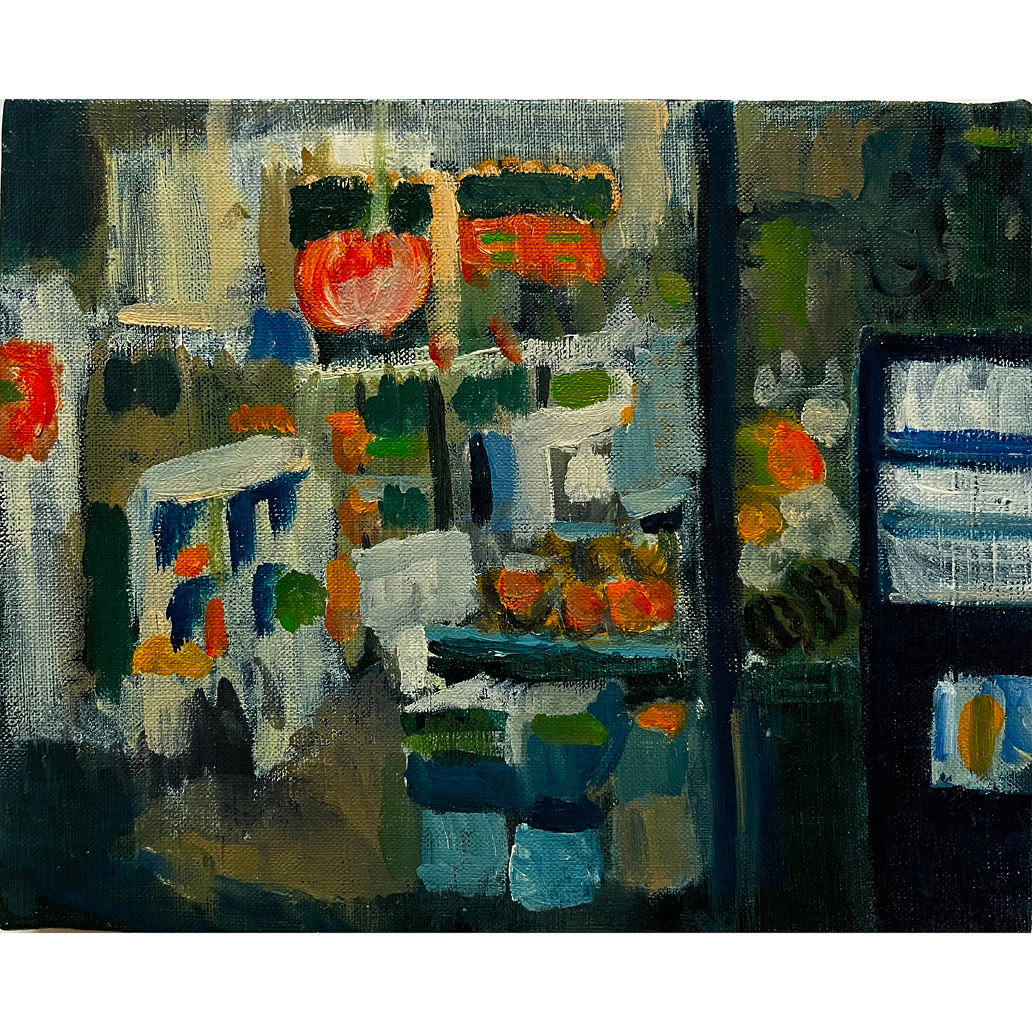 原画「夕方の八百屋さんGreengrocer in the evening」F3・油彩画