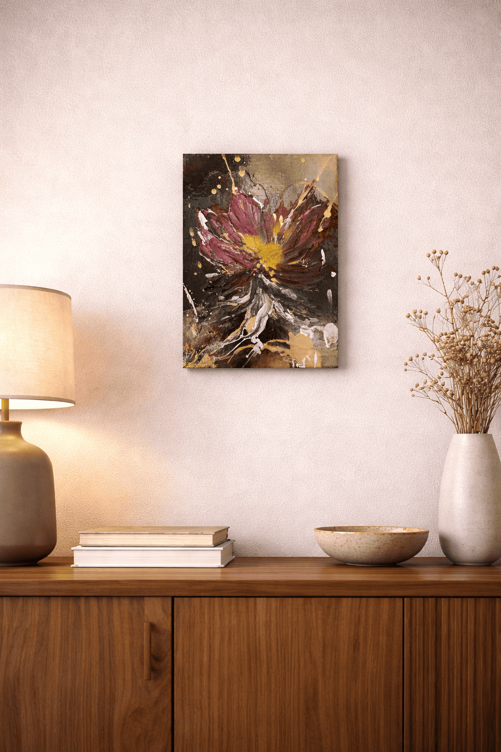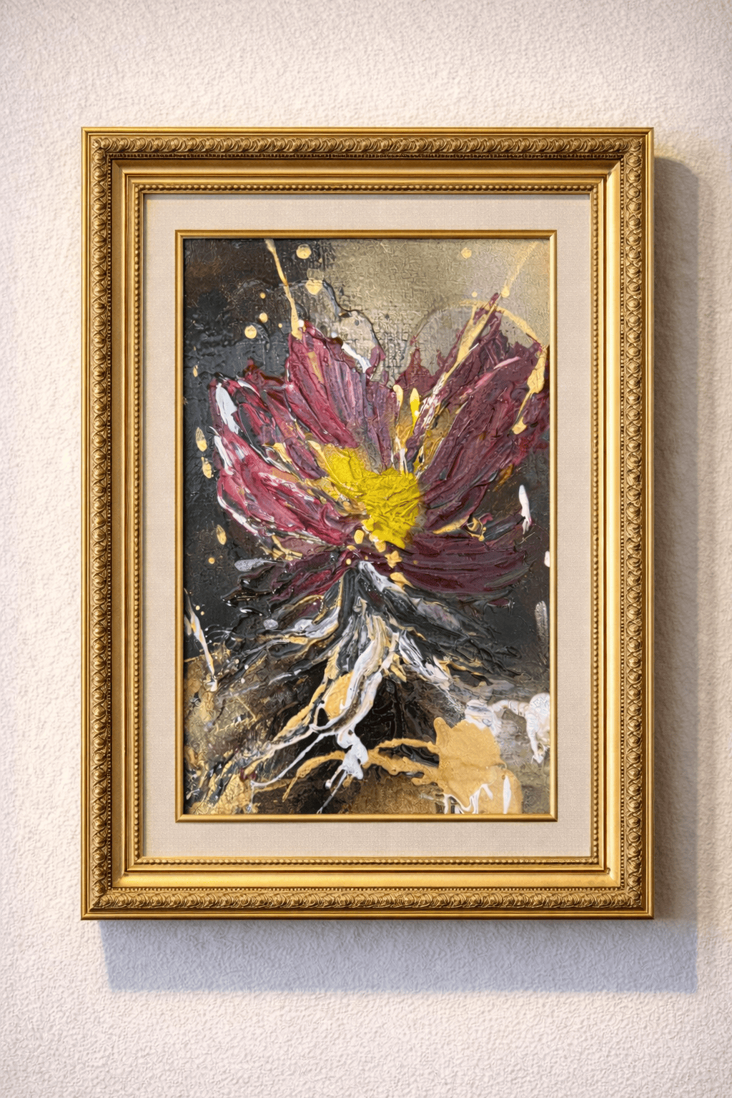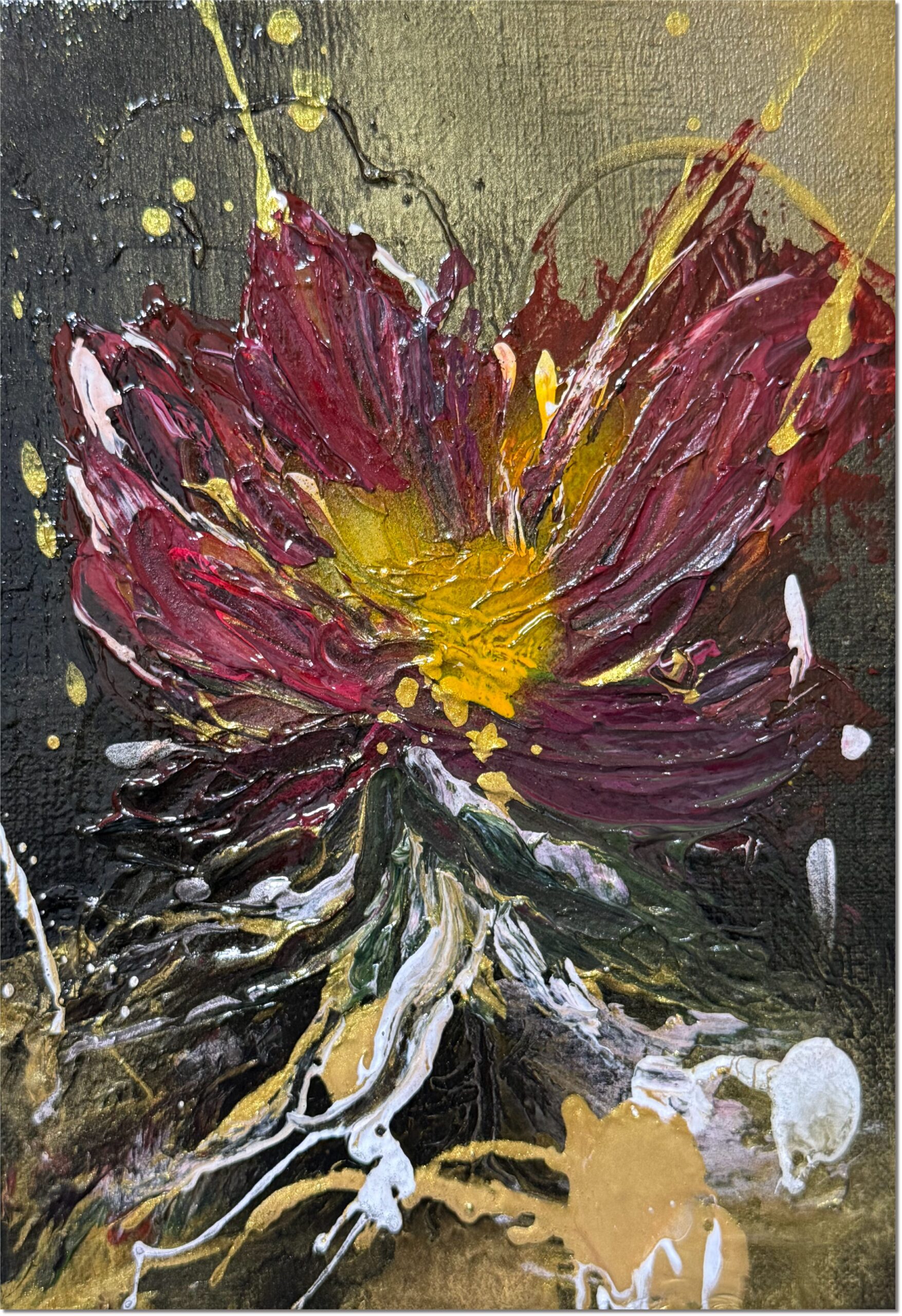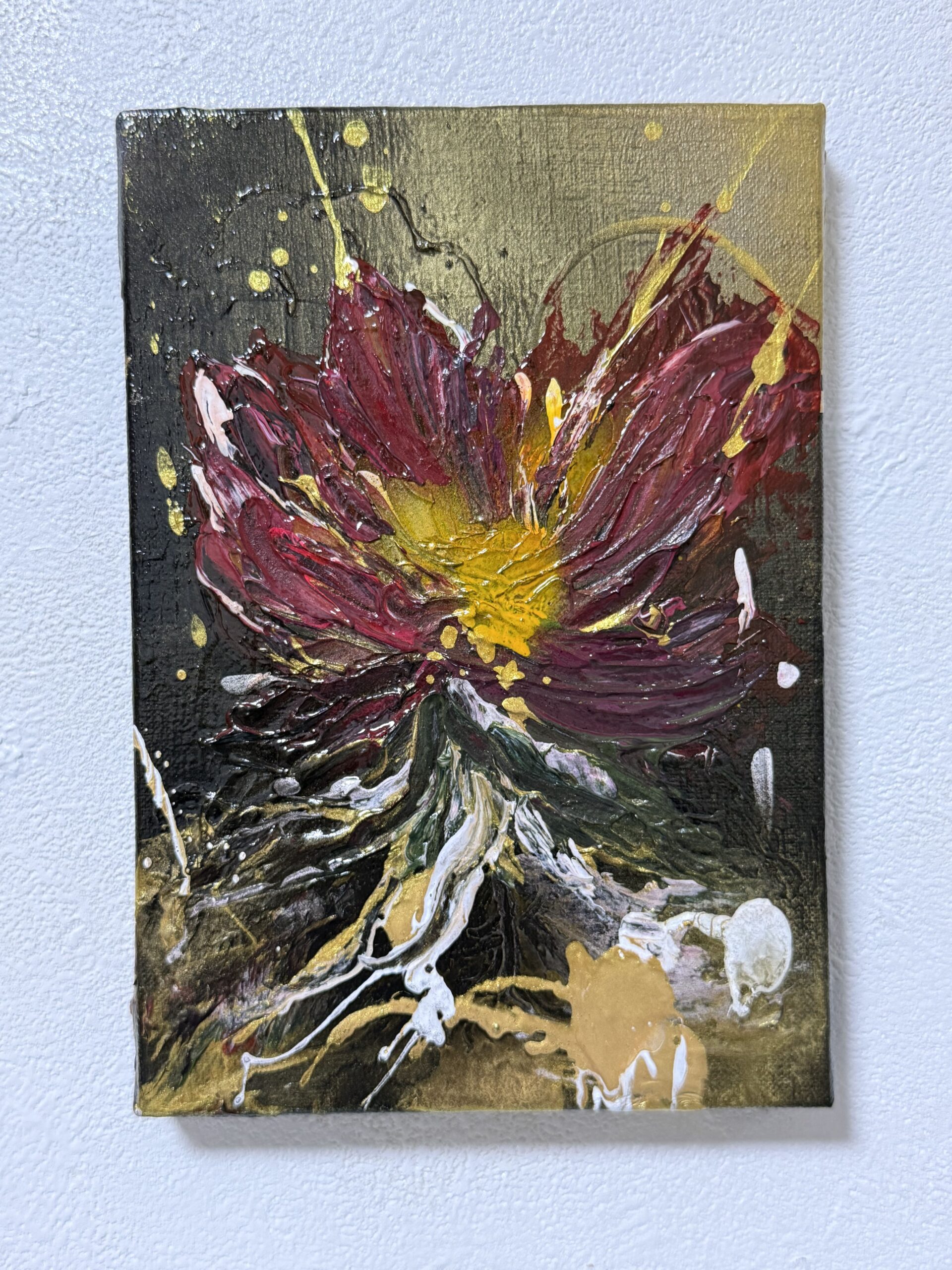 キャンバスに花を描いた作品です。