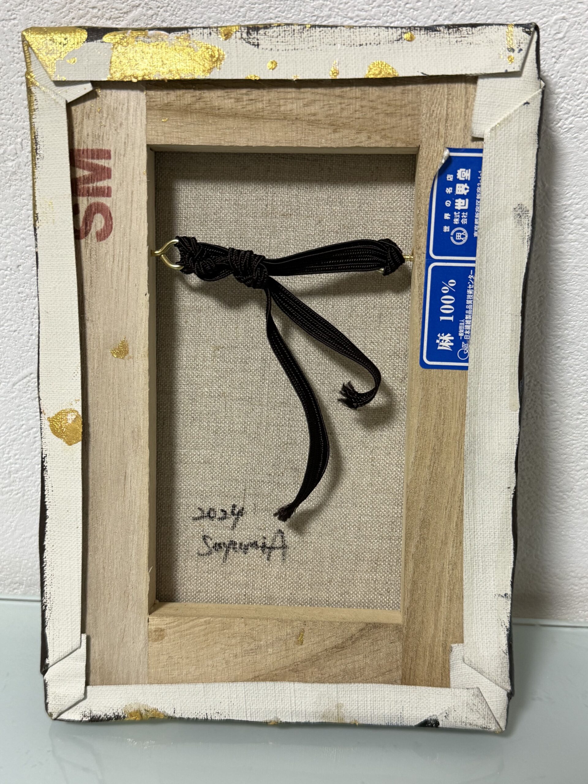 *額はありませんが、キャンバス裏に額縁金具と額縁紐が固定してあります。引掛釘などがあればそのまま掛けて飾っていただけます。