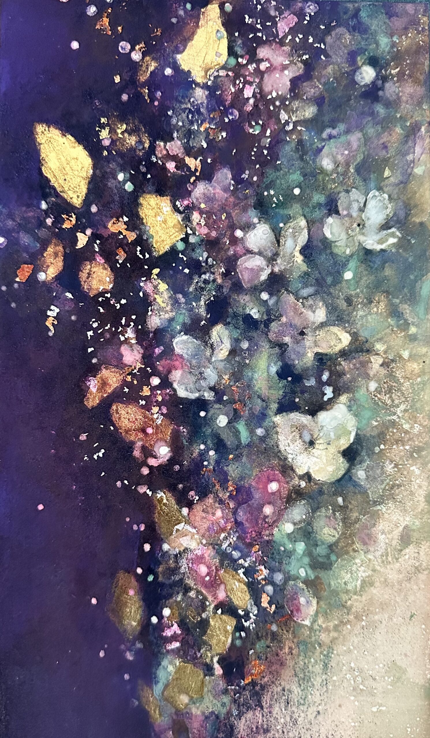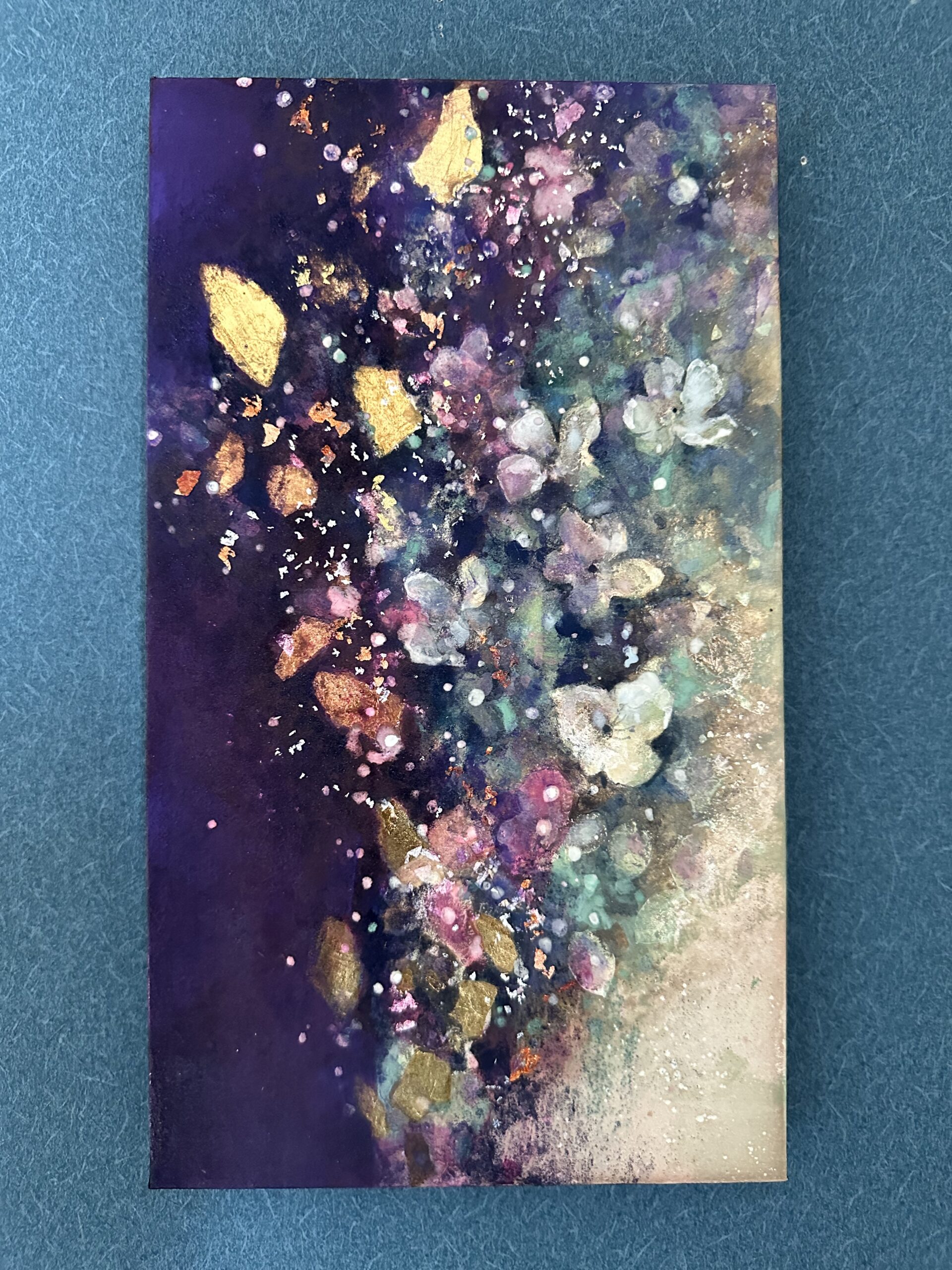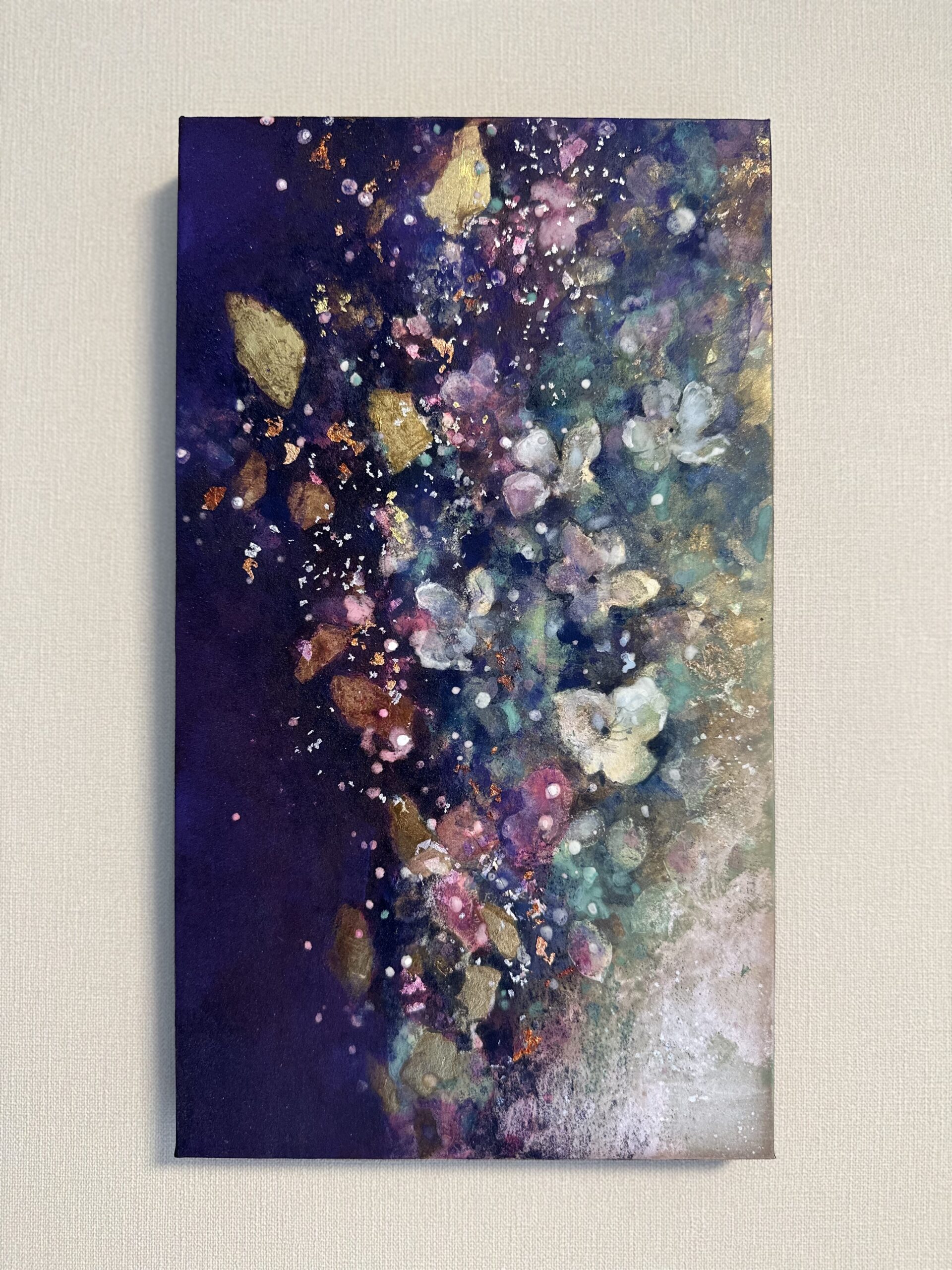 子どもの頃に畦道で摘んだ草花の色、鏡のような静かな海の色、名残惜しい夕日の色…。岩絵具の美しい色の粒子を使うことで、いろいろな色を表現できそうな気がして、日本画制作を始めました。