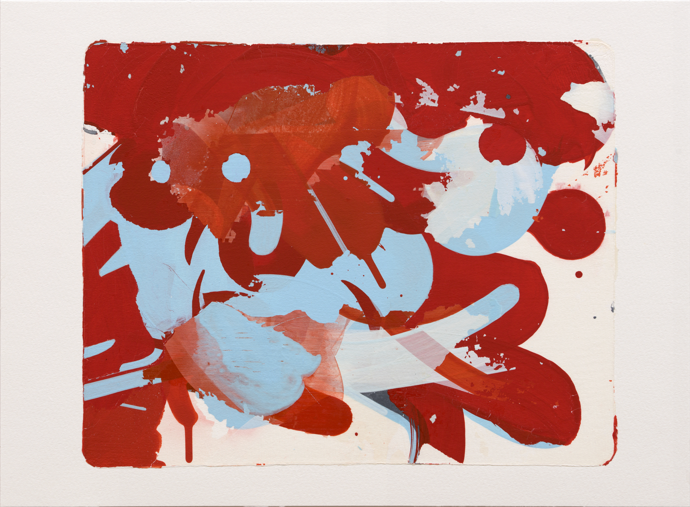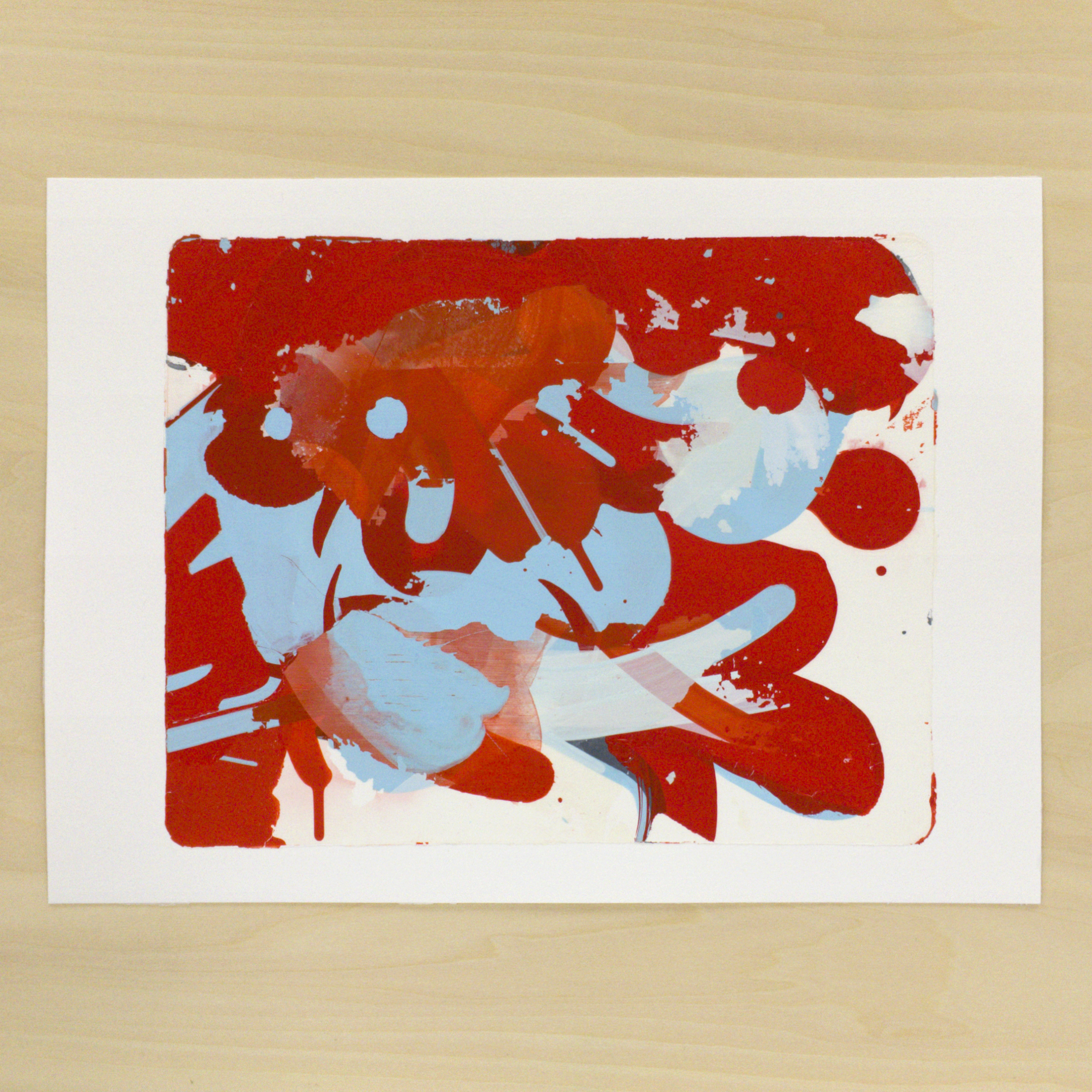 水彩紙(300 g/m2)にモノタイプ。版画の一種ですが、限定数が1枚の作品です。